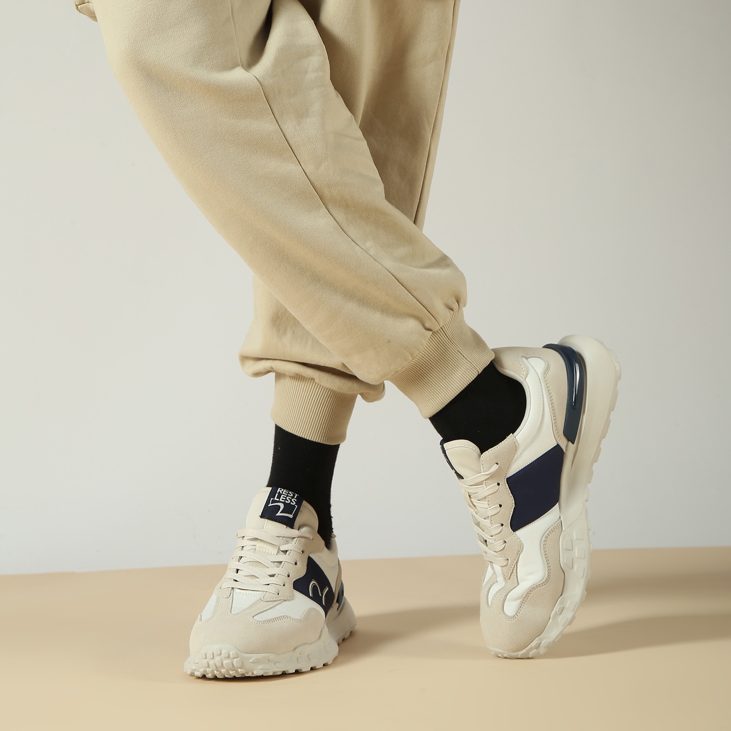A pair of men casual sneaker made of suede leather and mesh upper that has cushioned footbed and textured outsole for a perfect day out