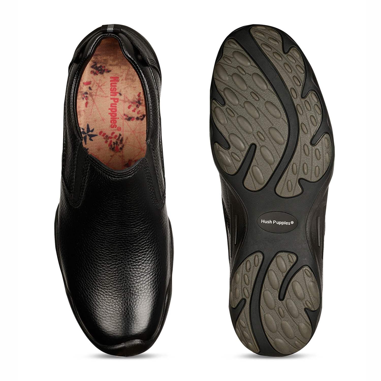Step into refined comfort with these black textured shoes from hush puppies. crafted from high-quality full grain leather with a pu sole, they offer durability and style. the slip-on design ensures easy wear, perfect for casual outings or everyday wear. whether you're running errands or meeting friends, these shoes will elevate your look with their sophisticated texture and timeless design.