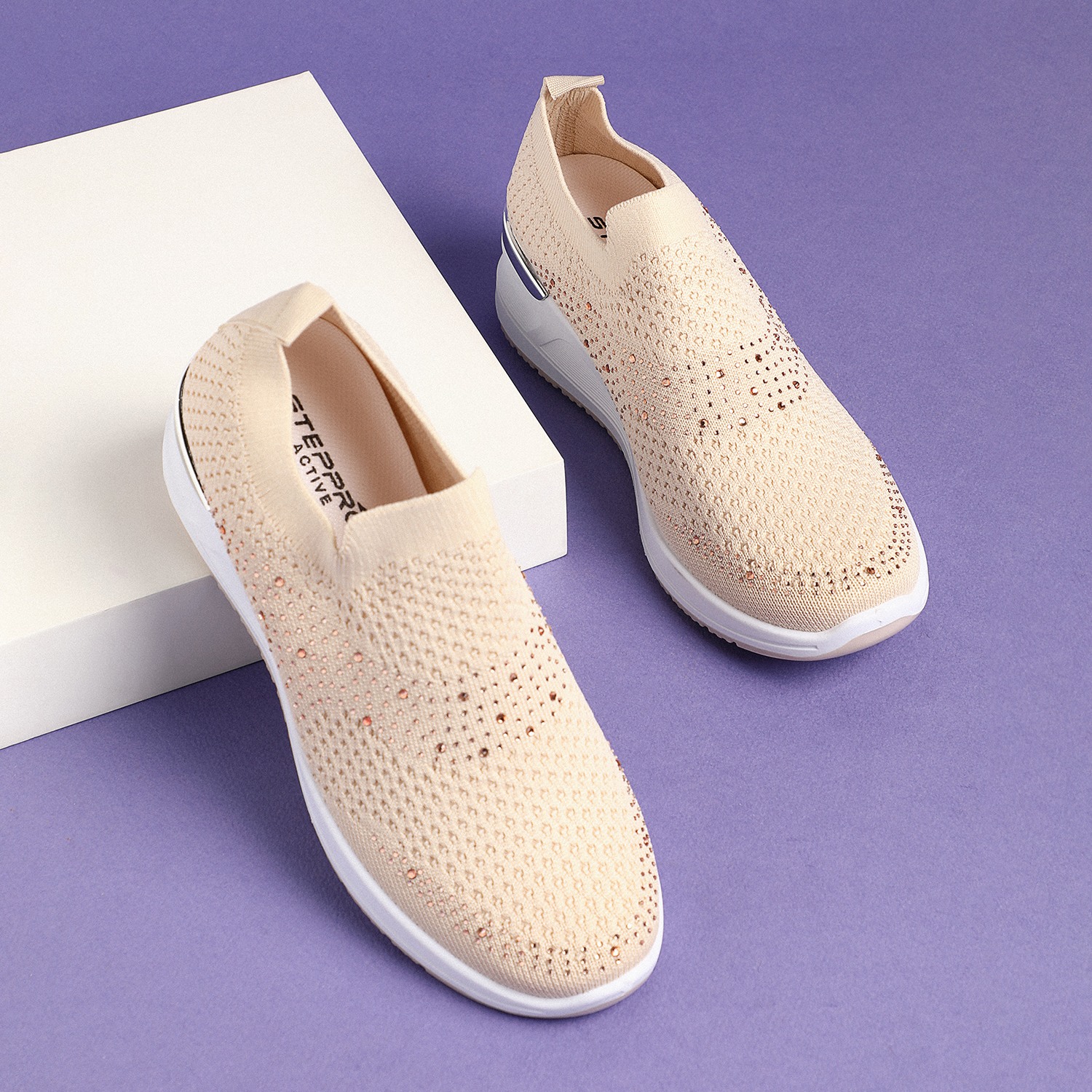 Embrace subtle glamour and athletic comfort with these versatile Glitter Dust Beige Active Slip-Ons. Their neutral beige tone and gentle sparkle make them an ideal choice for adding a stylish and comfortable touch to any casual or athleisure outfit, ensuring both dazzling appeal and effortless wear.