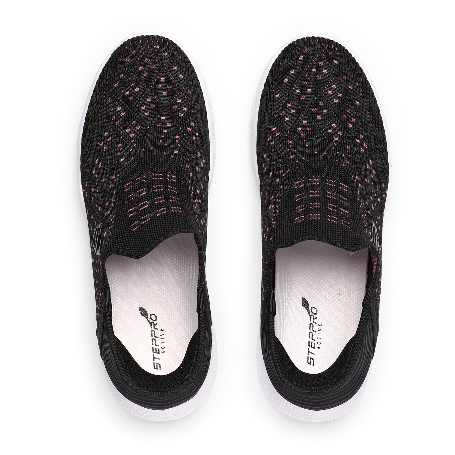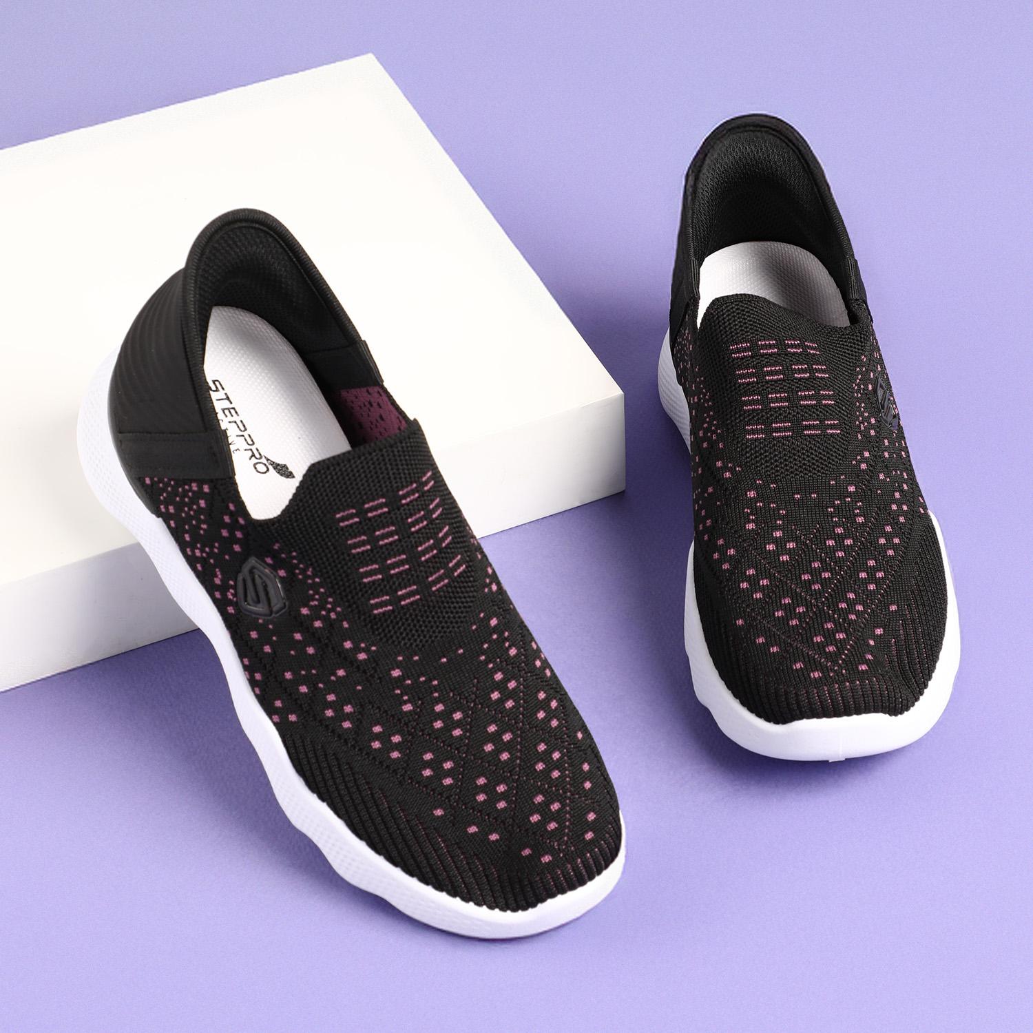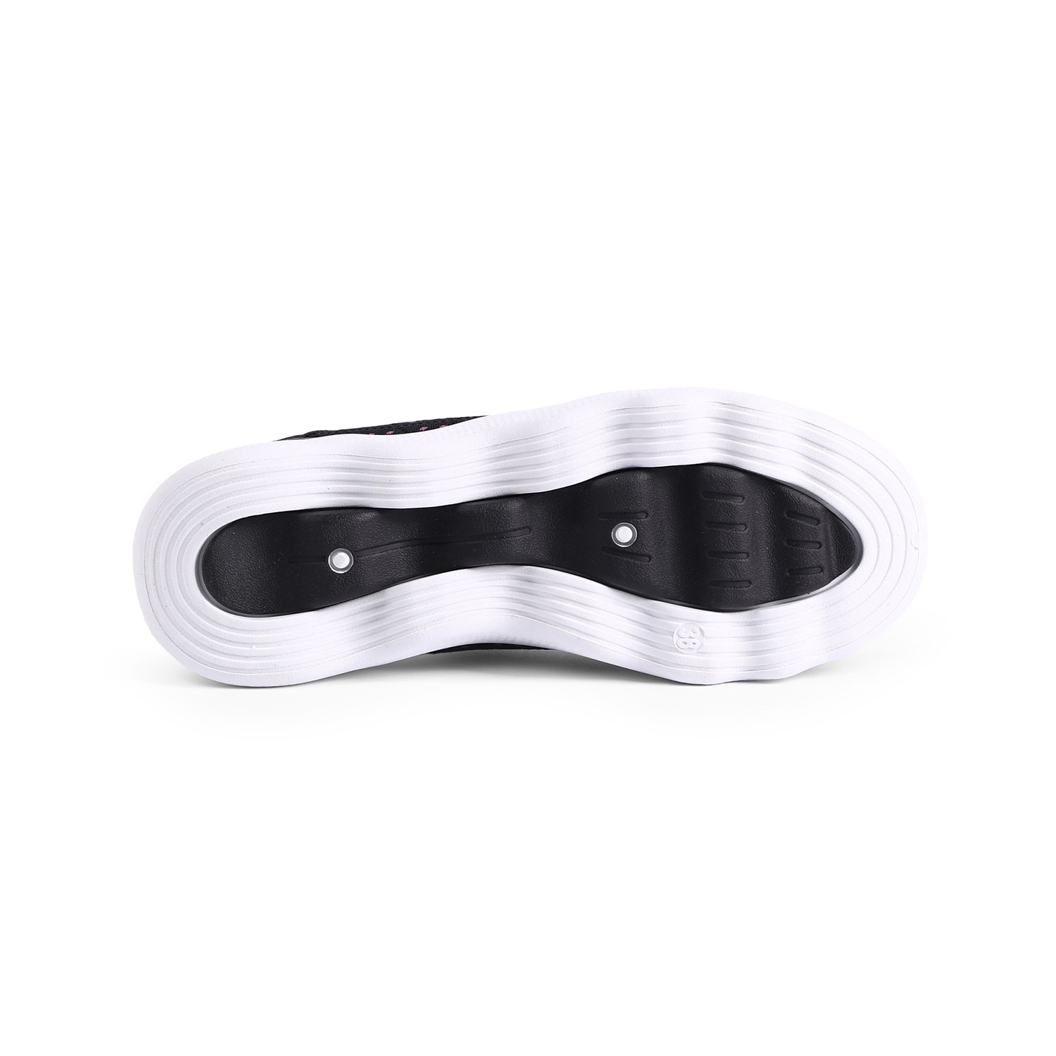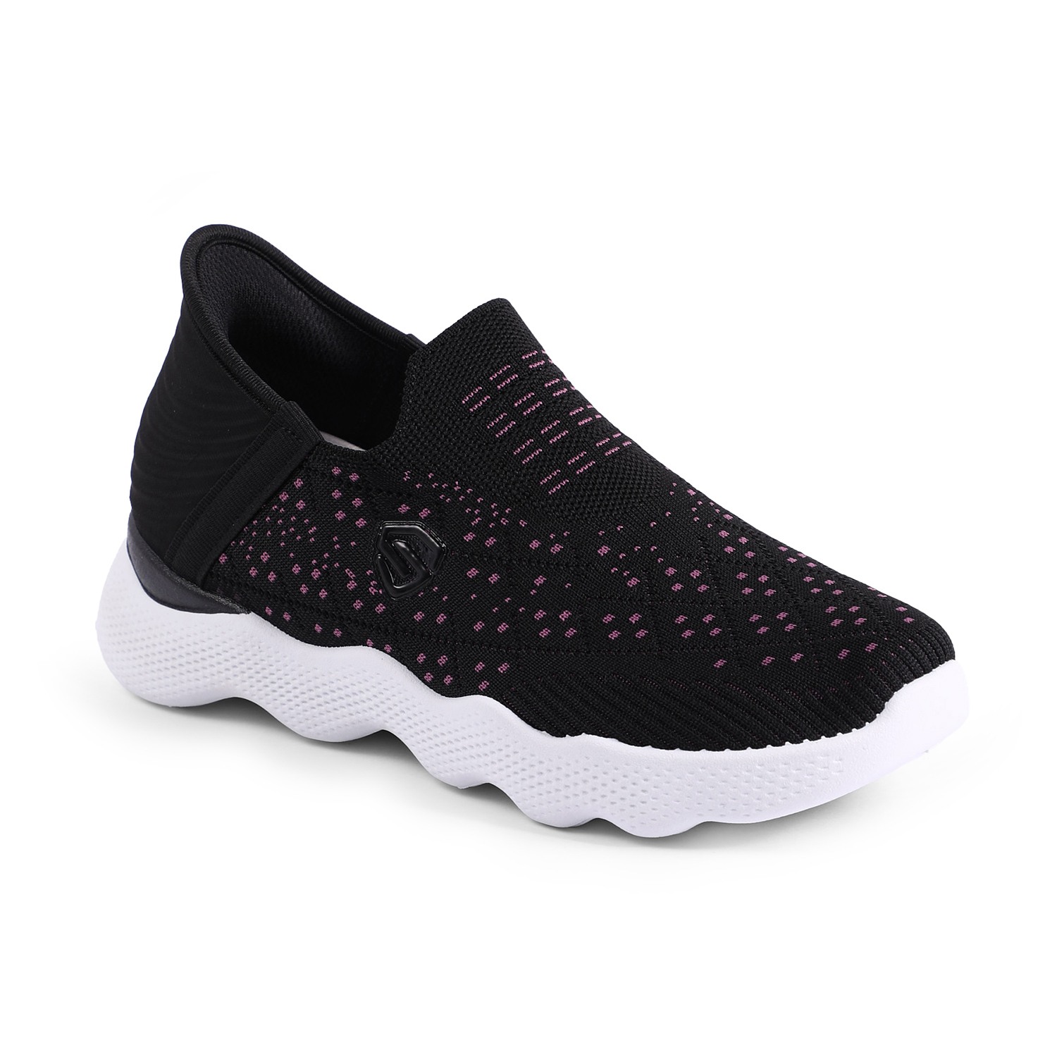 Step out in vibrant comfort with our Black Rose Knit Go-Walkers. These chic women's slip-on sneakers feature a breathable black knit upper, subtly infused with small, scattered pink square-shaped accents for a unique 'rose' effect. The thick, sculpted white sole boasts a distinctive wavy texture, providing exceptional cushioning and a dynamic athletic look. Perfect for daily strolls, light activities, or adding a stylish and supremely comfortable pop of color to your casual ensemble