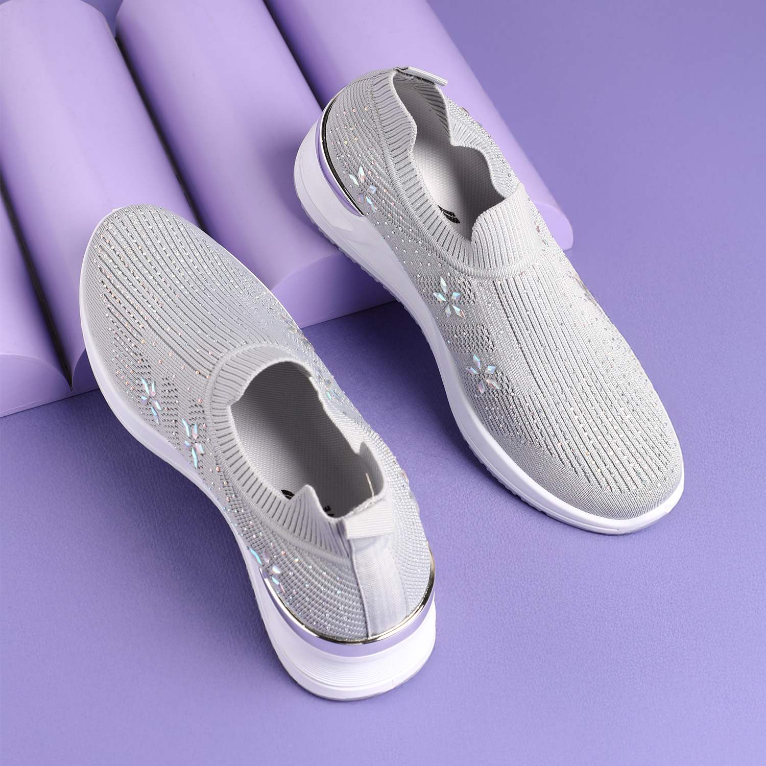 A perfect blend of decorative artistry and undeniable comfort, these Grey Embellished Knit Slip-Ons are a smart addition to your footwear collection. The easy slip-on style and supportive, sculpted sole offer lasting allure and undeniable practicality, making them perfect for extended wear with a beautifully chic and feminine edge.