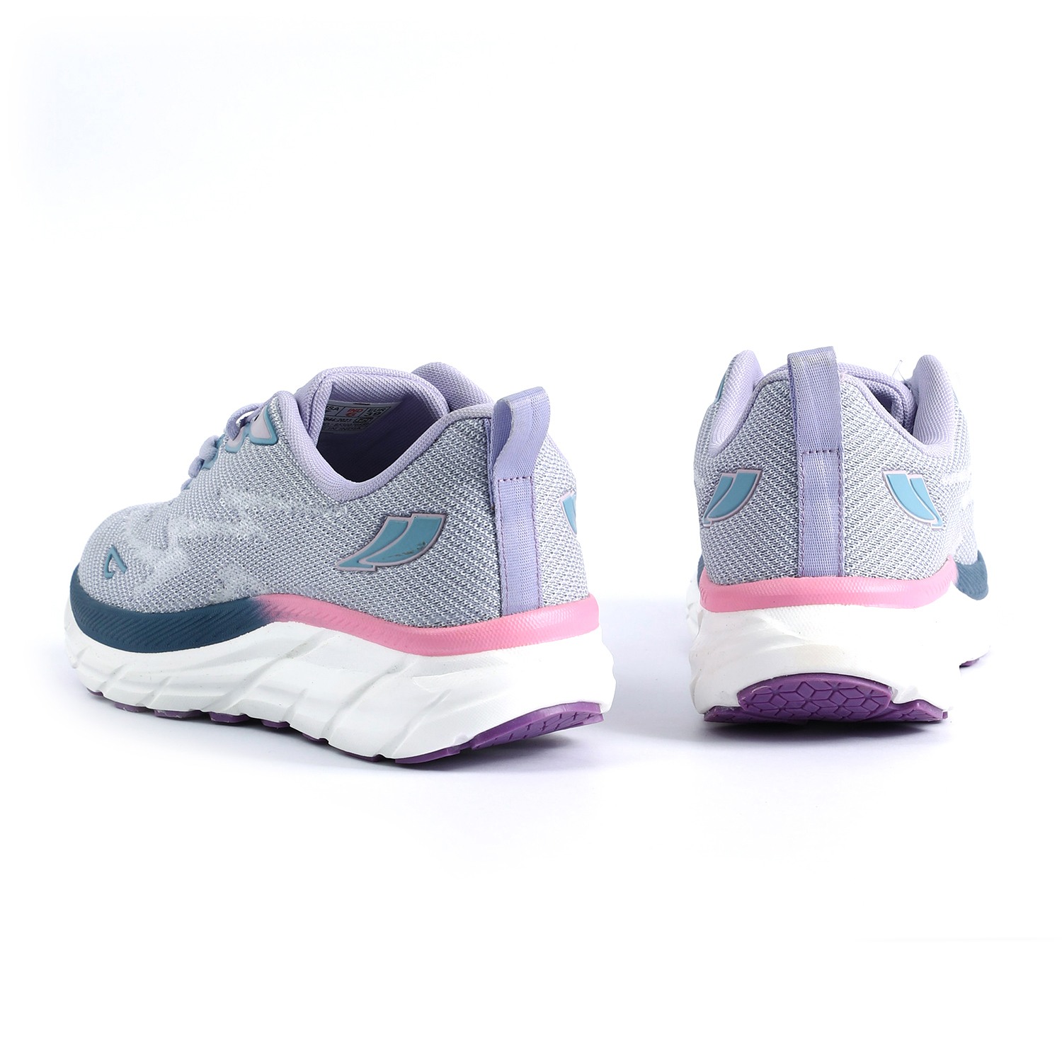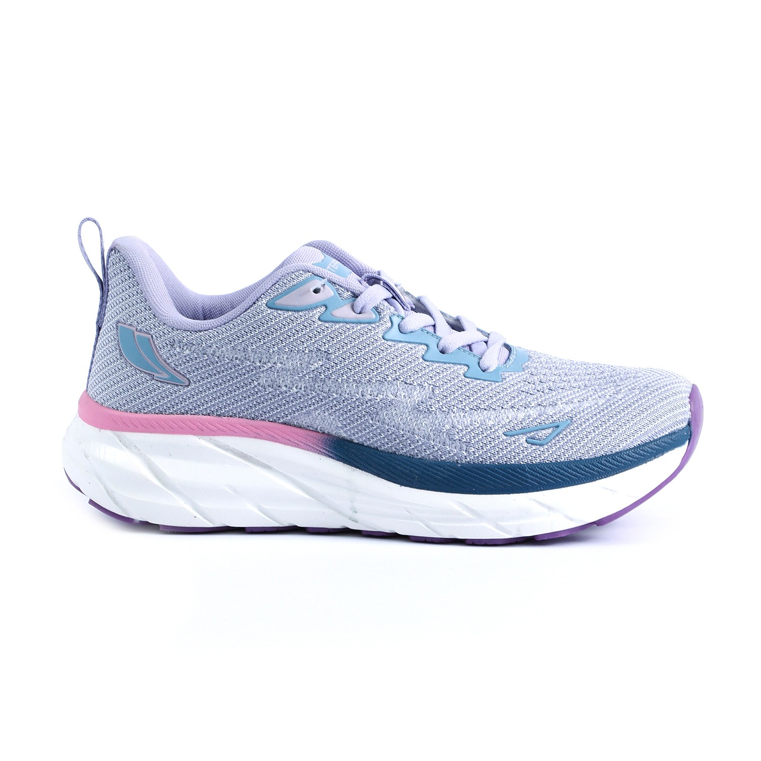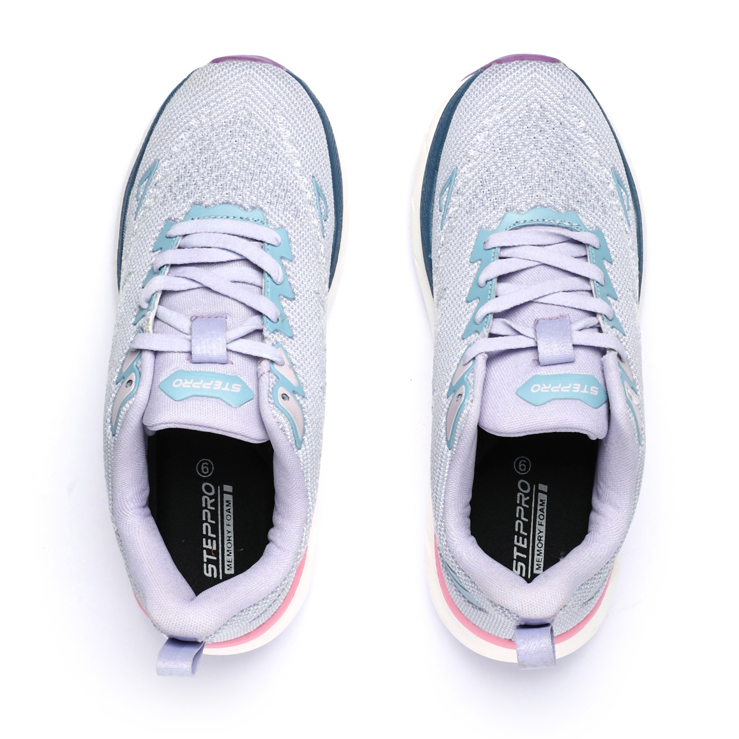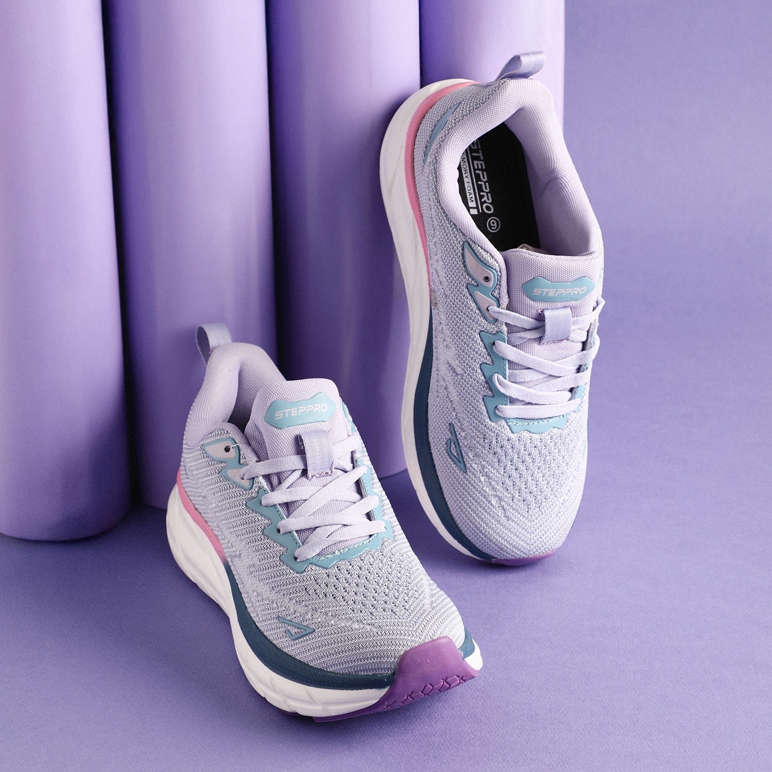 Step into vibrant comfort with our Lilac Fusion Walking Shoes. These women's lace-up sneakers feature a breathable knit upper in a soothing light purple or lavender hue, providing both structure and flexibility. The chunky, sculpted white sole showcases a dynamic 'fusion' of colors, with stylish pink and dark blue/teal accents, and a contrasting purple outsole for enhanced grip. With 'STEPPRO' branding on the tongue, these shoes are designed to offer exceptional cushioning and support, making them perfect for active lifestyles, workouts, or adding a modern athletic touch to your casual ensemble