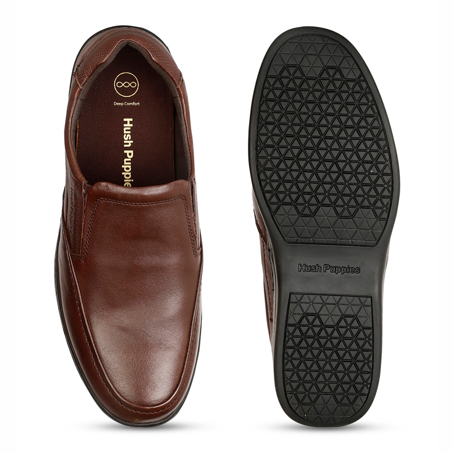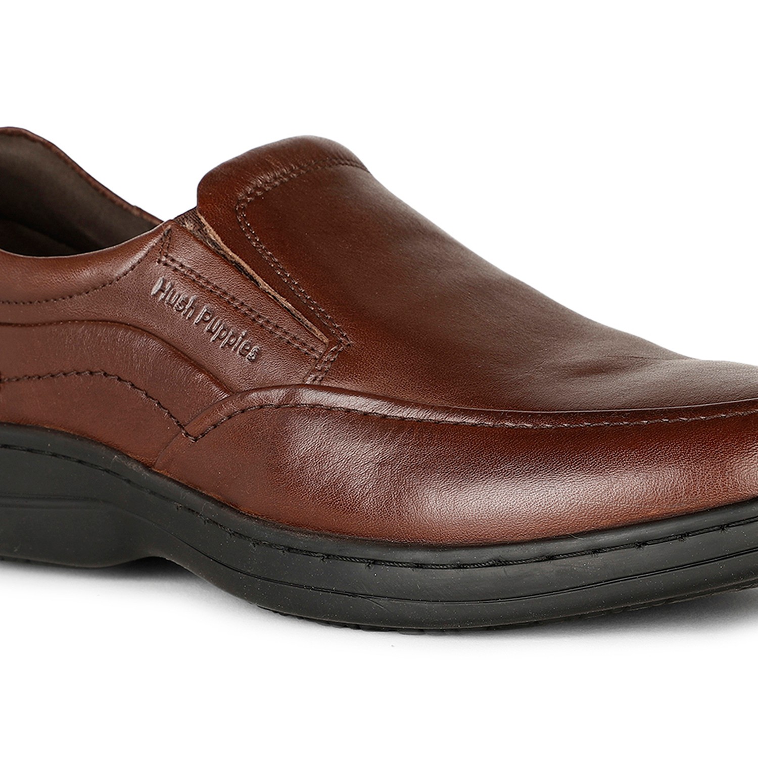 Indulge in sophistication with these brown formal slip-on shoes from hush puppies. crafted from premium crust leather with a textured finish, they exude timeless elegance. the tpr sole ensures durability and comfort, making them perfect for all-day wear. whether for formal occasions or casual outings, these slip-on shoes elevate your style effortlessly.