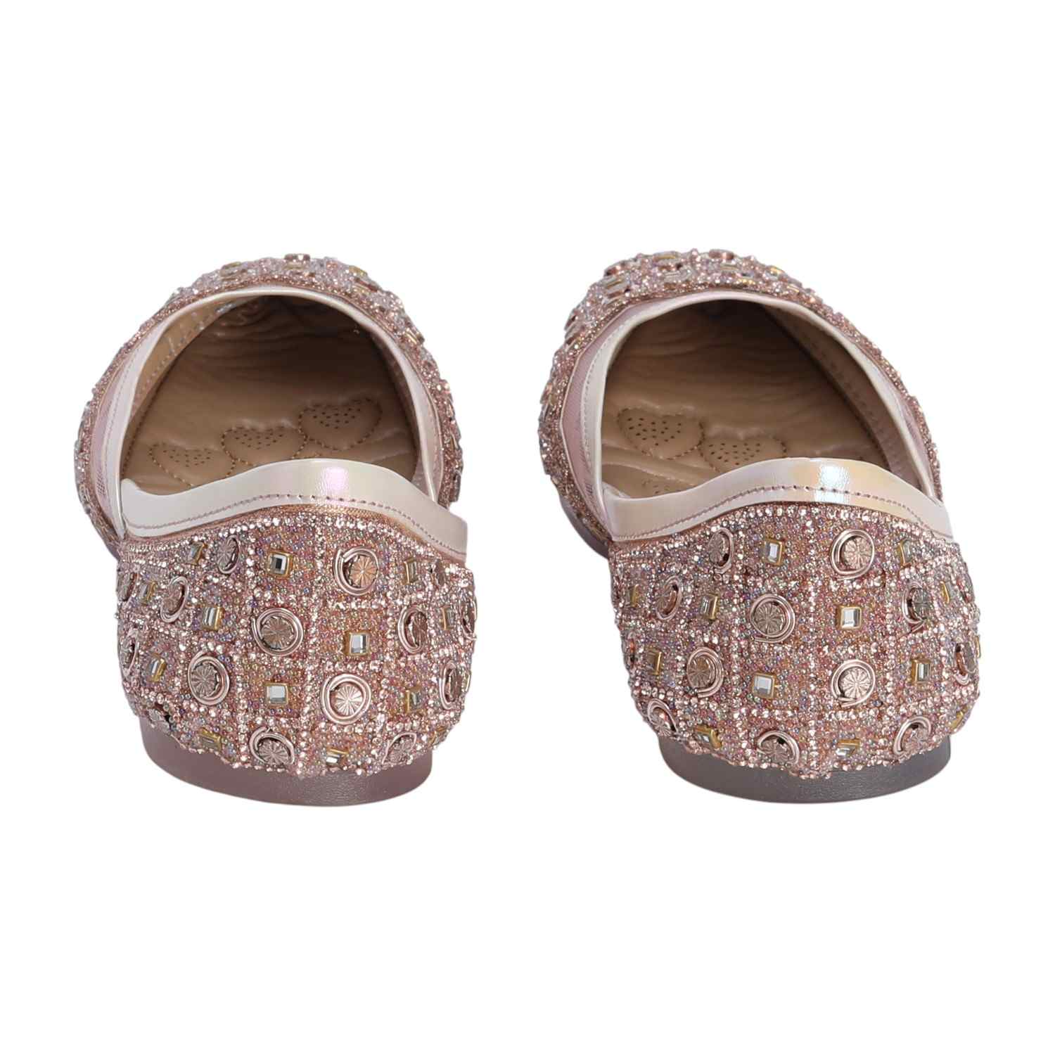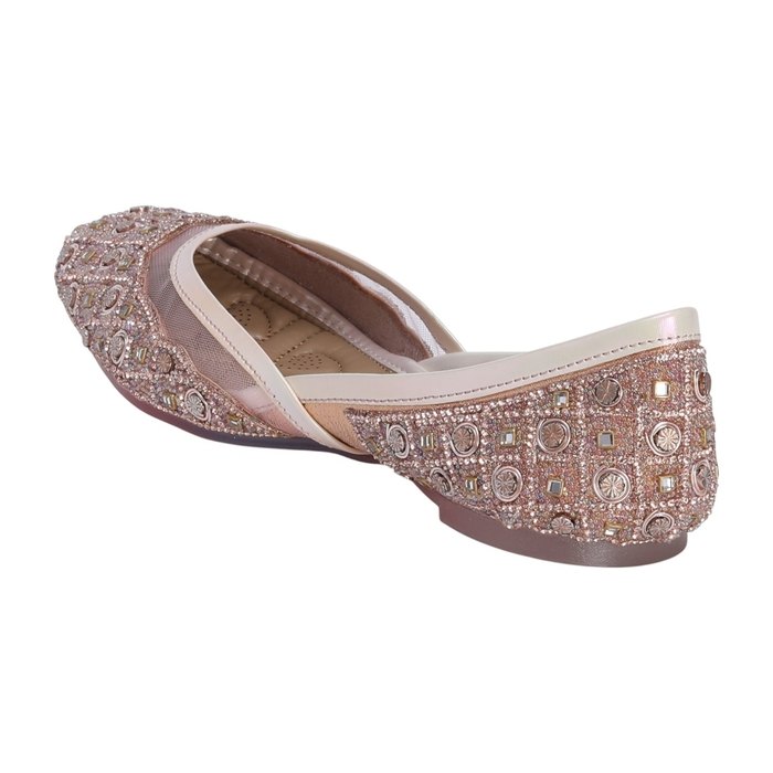 Step into elegance with these handcrafted mojaris, embellished with shimmering rose gold-toned stones.