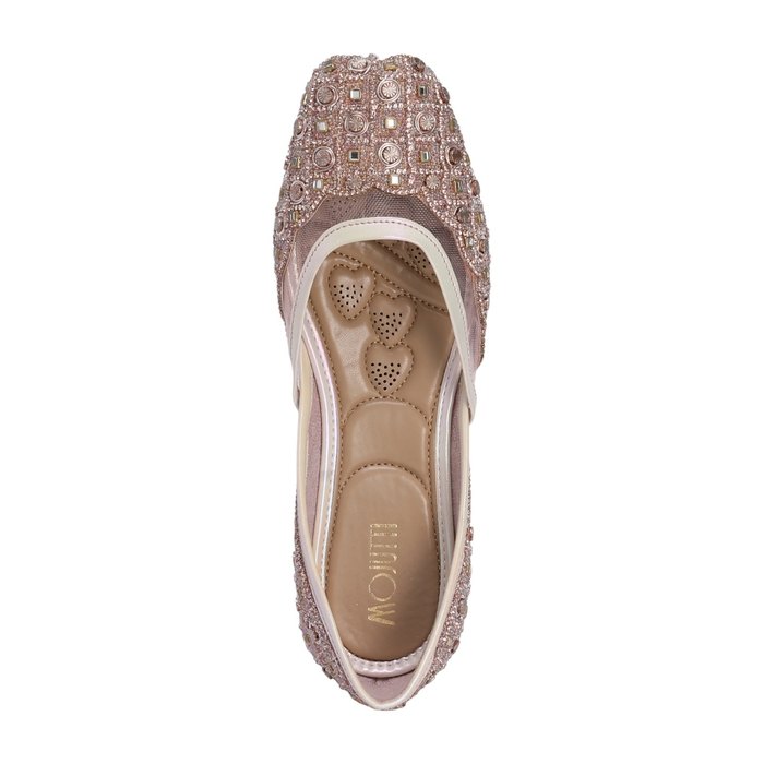 Delicate hand embroidery and a cushioned footbed deliver both opulence and comfort.