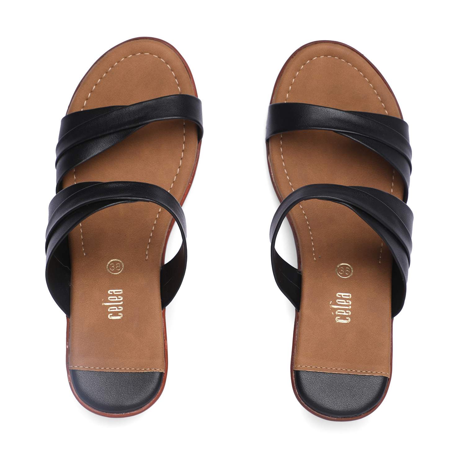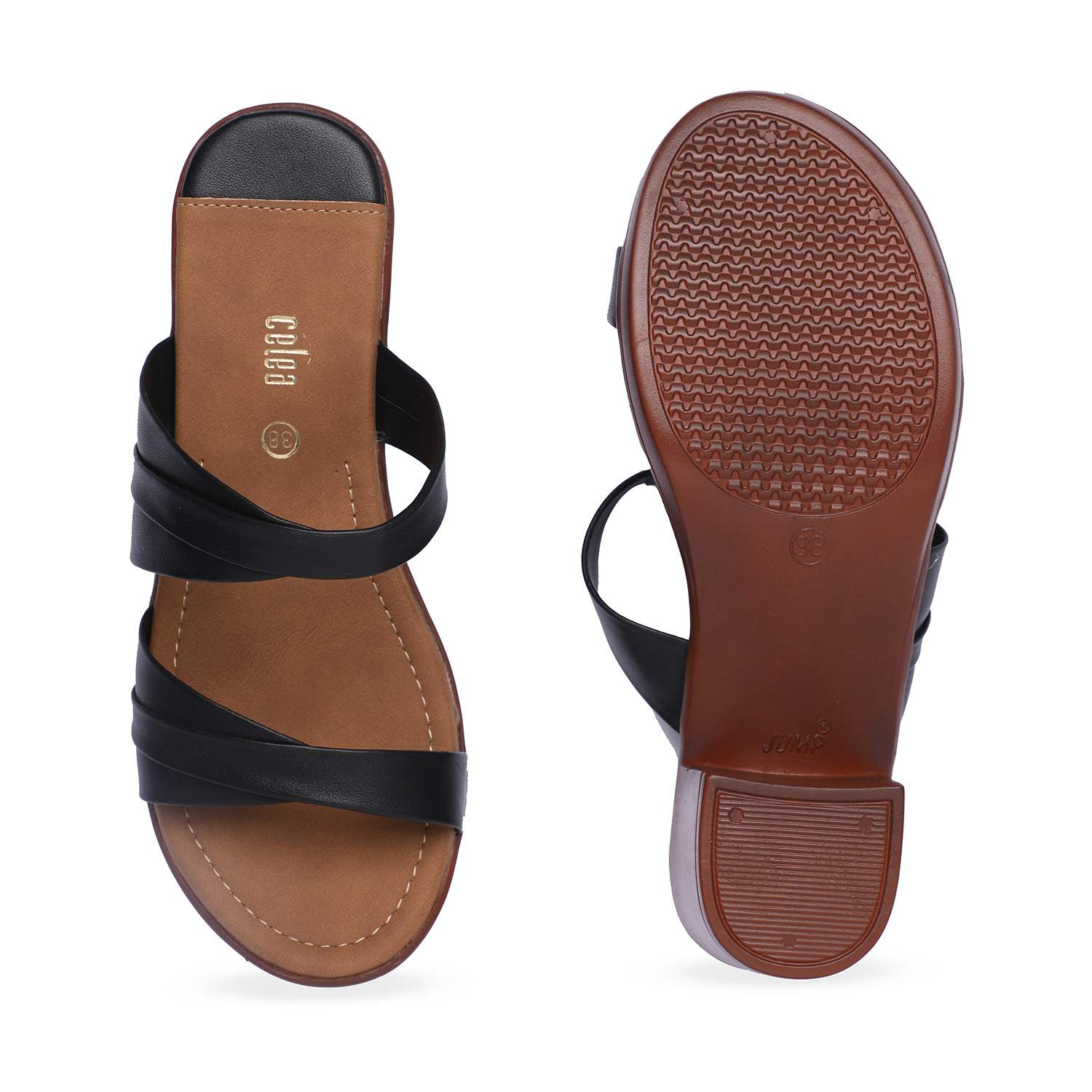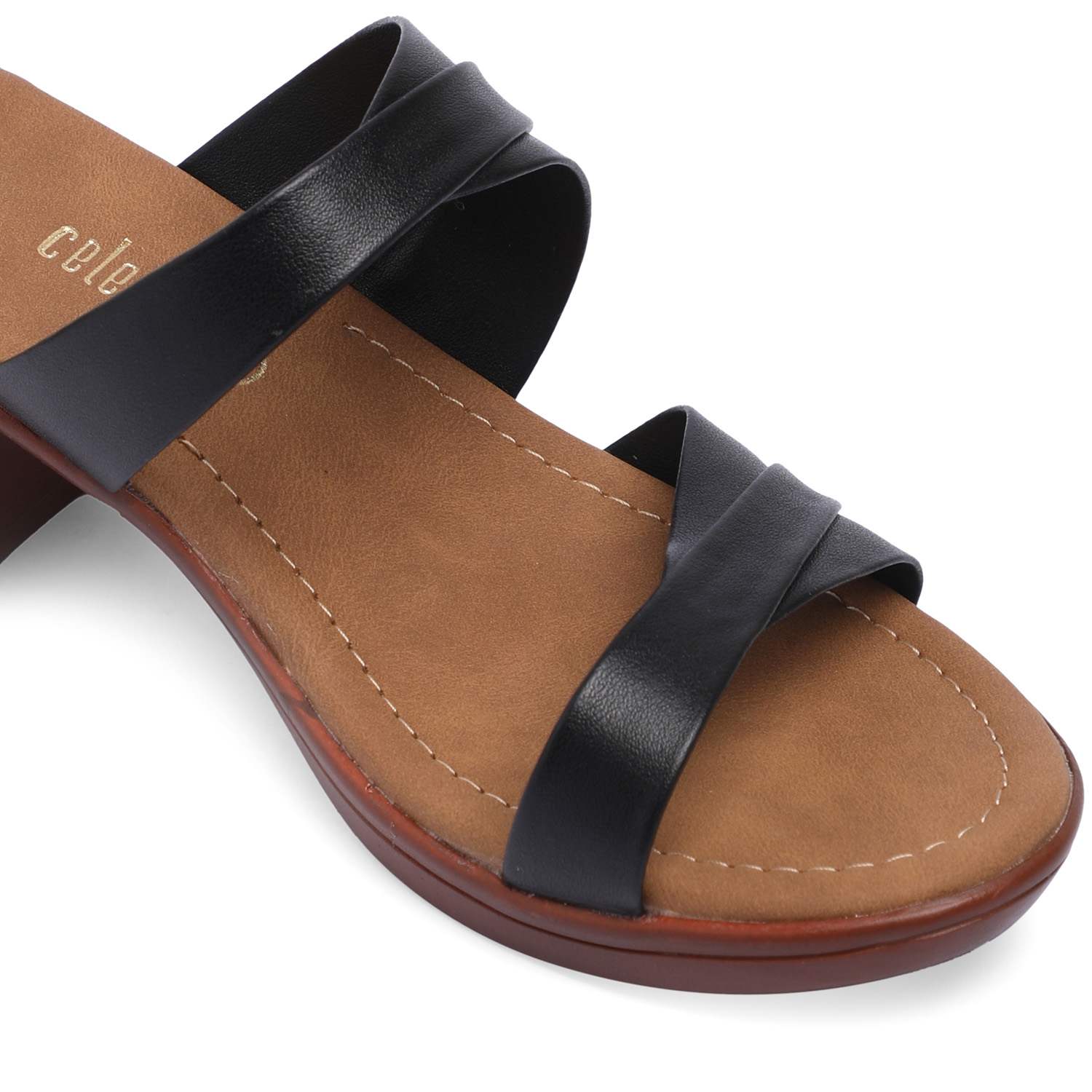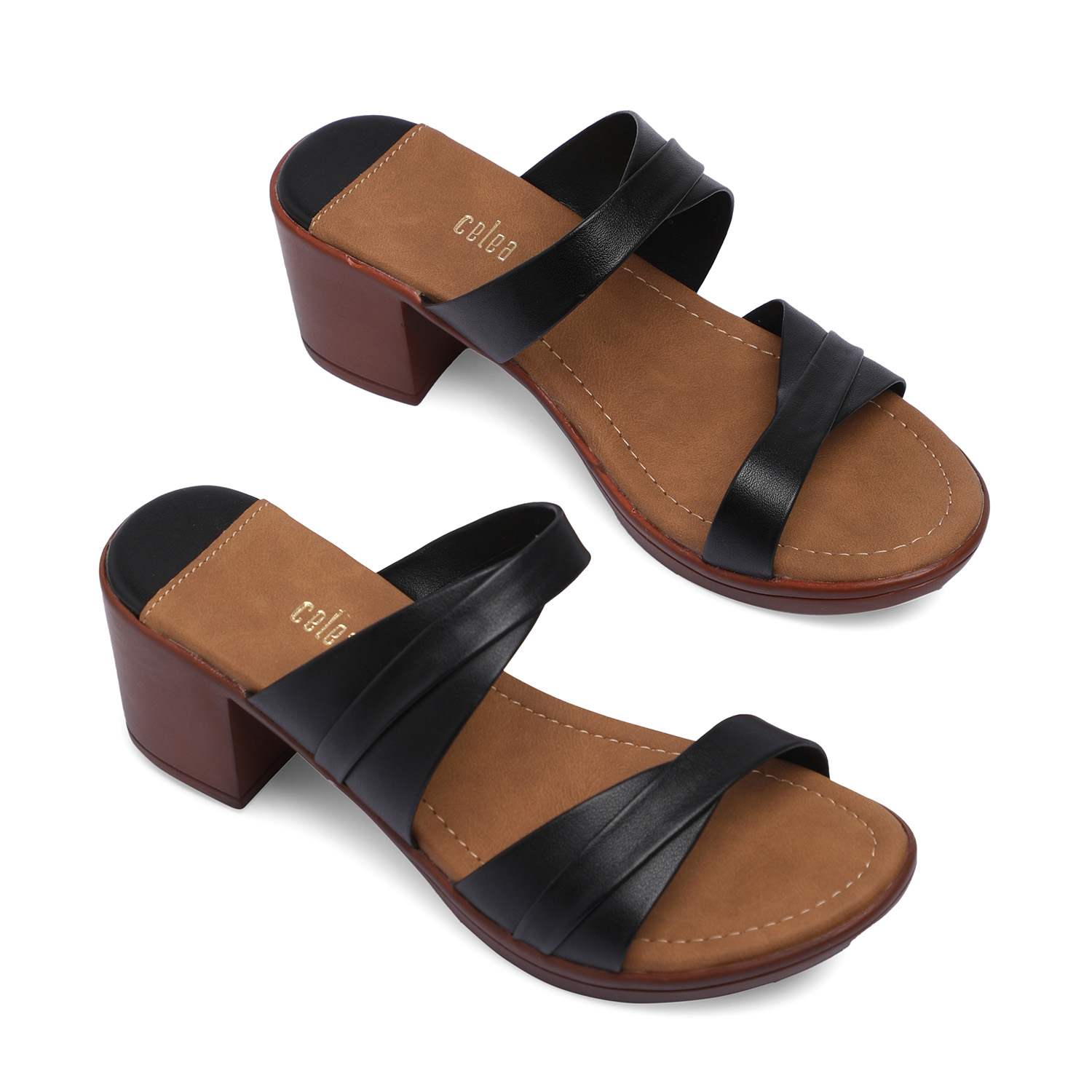 Step up your style with these chic black block heel sandals, perfect for casual and semi-formal occasions. Featuring a comfortable cushioned footbed, stylish crisscross straps, and a sturdy block heel, these sandals provide both elegance and all-day comfort. The sleek black straps contrast beautifully with the brown insole
