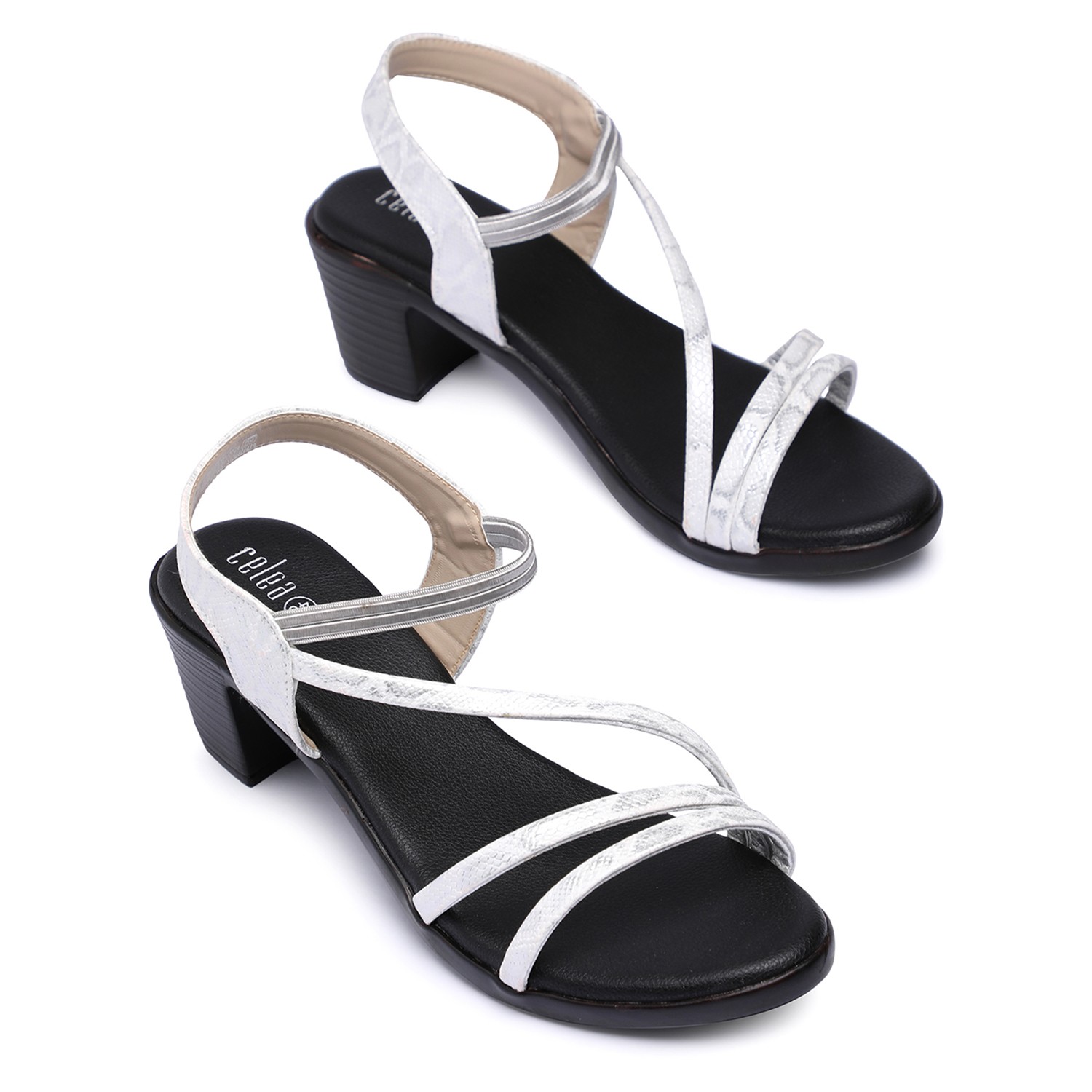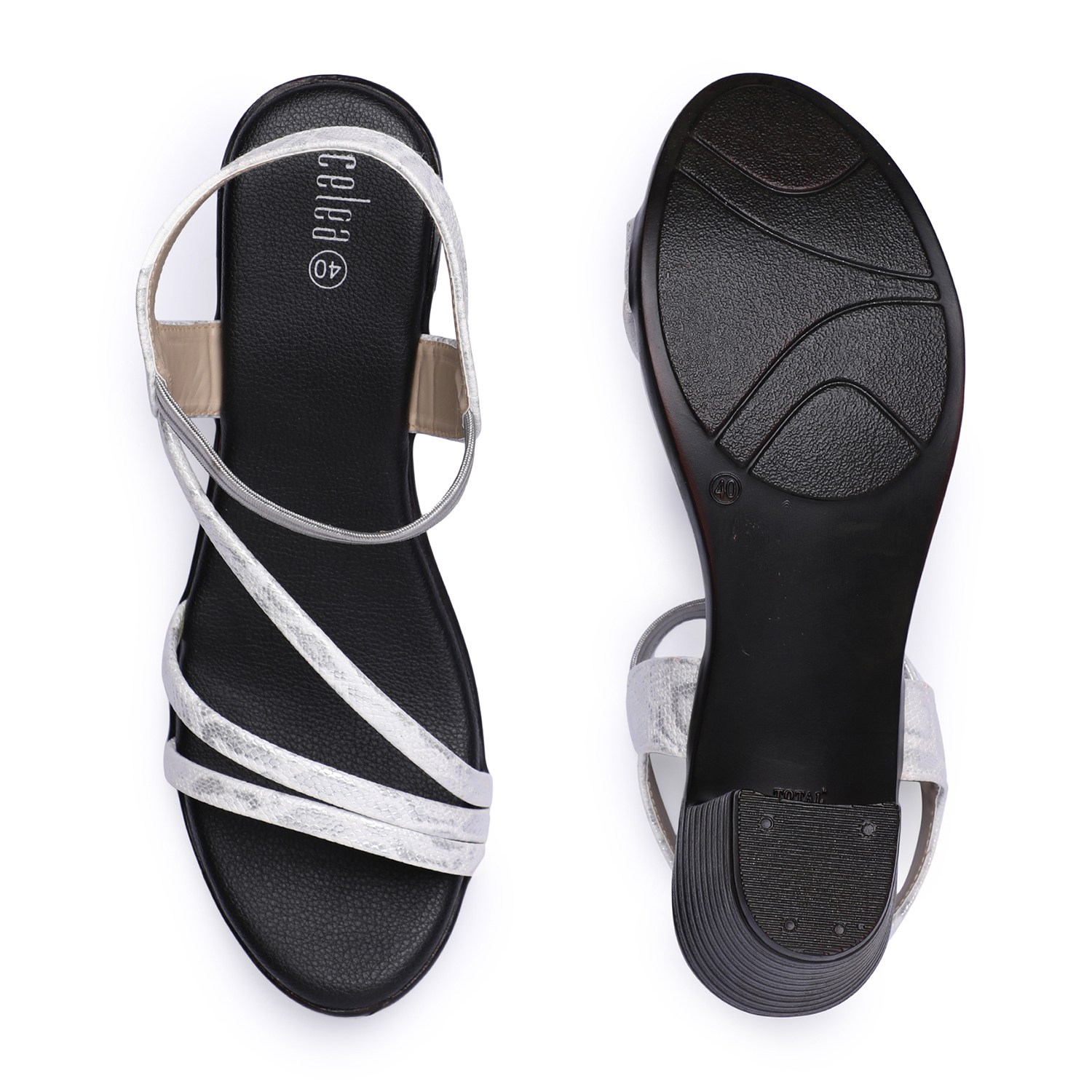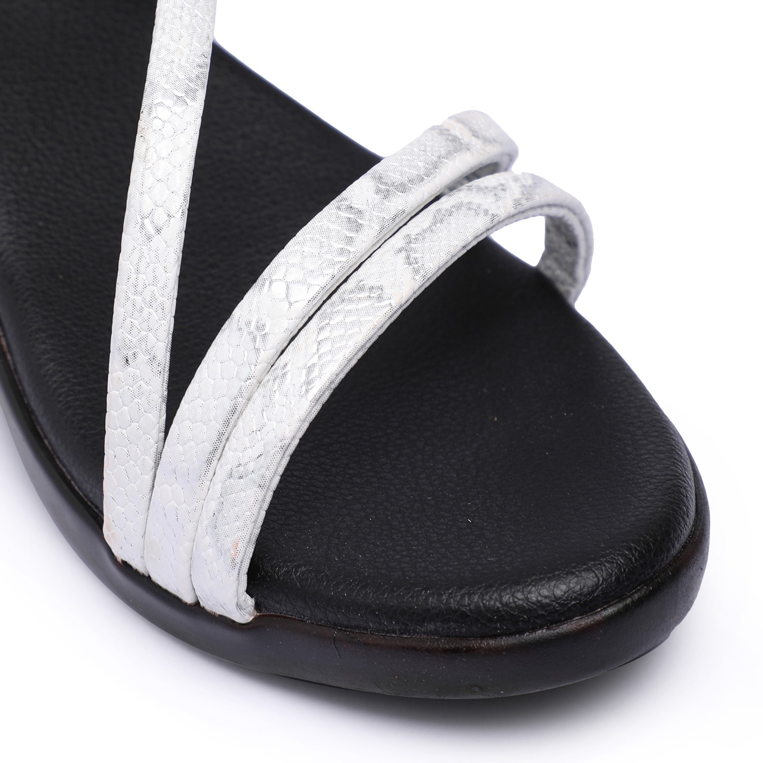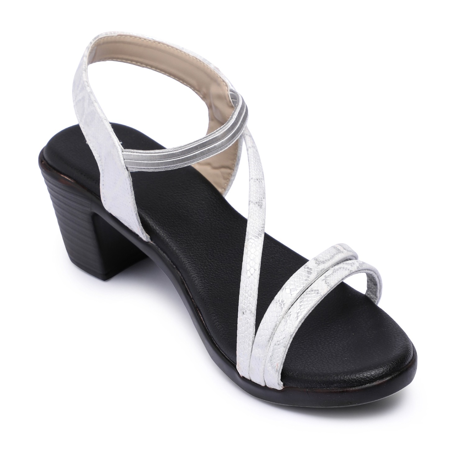 Step into effortless style and comfort with these chic Cris cross classy silver strap sandals. Designed for all-day wear, the cushioned insole and sturdy block heel provide both support and elegance. The sleek straps with fine shining add a touch of glamour.