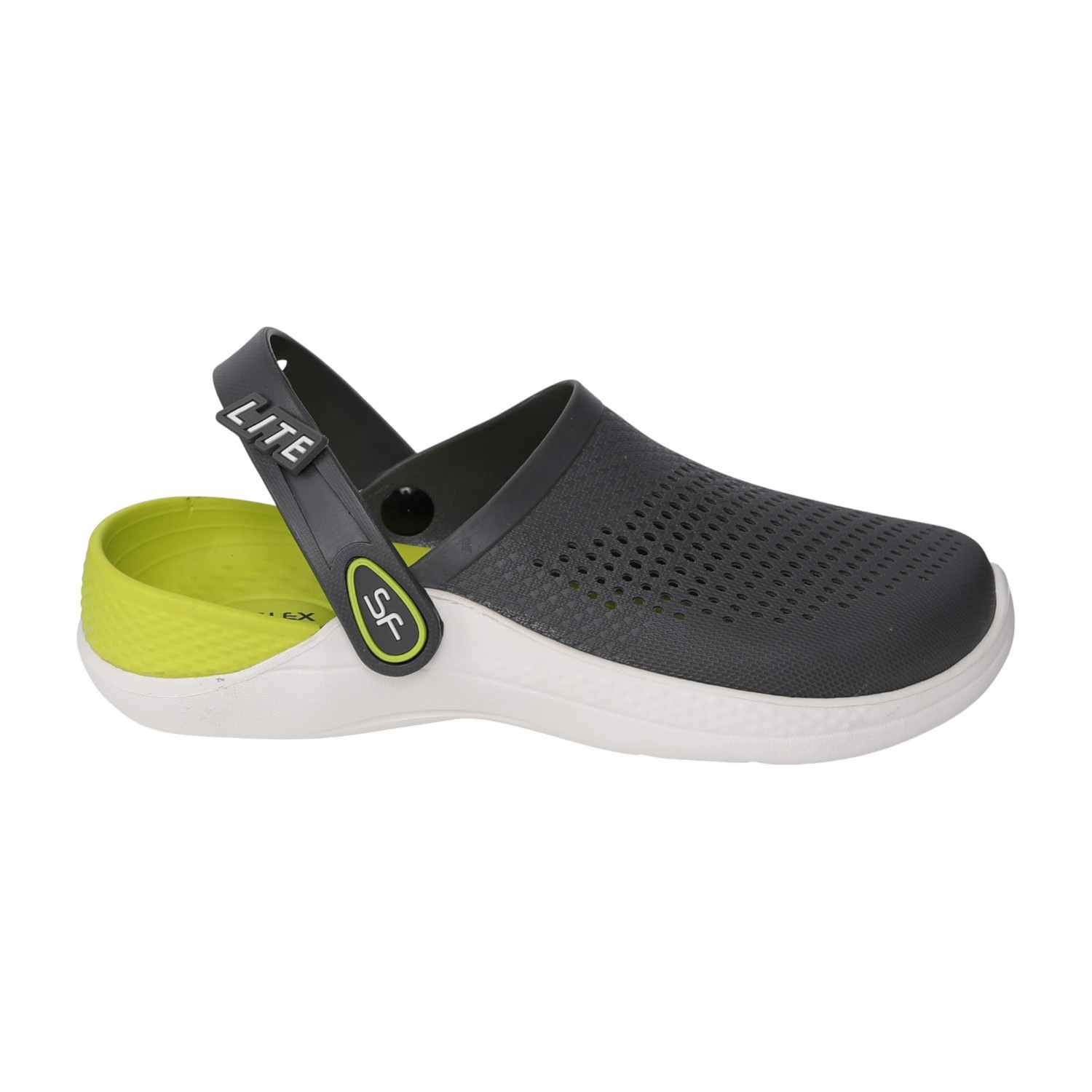 The Volt Velocity Clog pairs a cool dark grey/charcoal upper with an electric lime green interior and a crisp white sole for a sharp, athletic aesthetic. Built to be exceptionally lightweight and fully ventilated, these clogs maximize comfort and airflow. The convertible strap allows you to secure the fit for movement or flip it forward for effortless slip-on convenience, making it the perfect dynamic leisure shoe.