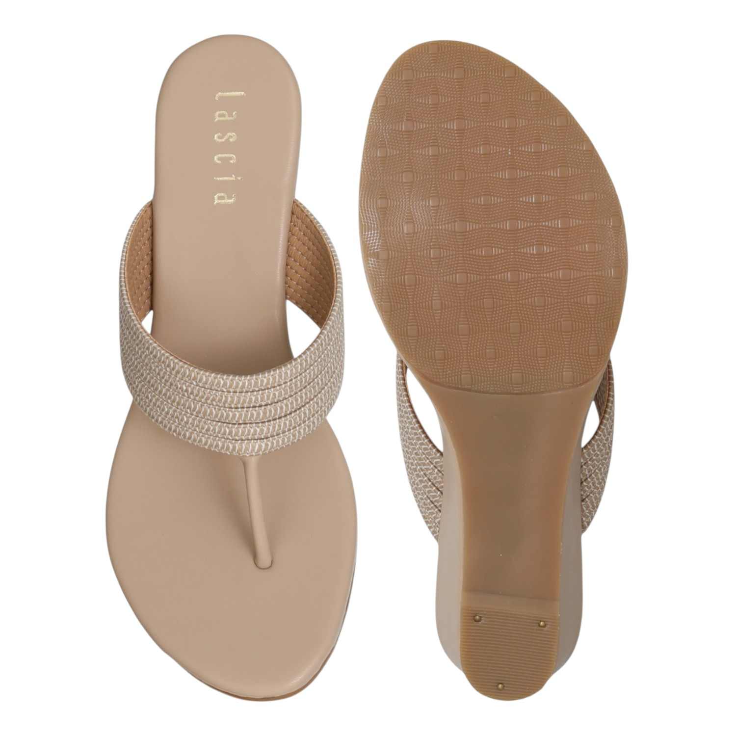 Slip into simplicity and style with the Beige Bliss Comfort Heels. Designed in a soft, neutral beige tone, these wedges offer effortless elegance with every step. The multi-strap upper adds a subtle textured touch, while the cushioned footbed ensures all-day comfort. With a lightweight wedge heel, these sandals are ideal for everyday wear—from casual outings to relaxed weekend plans.