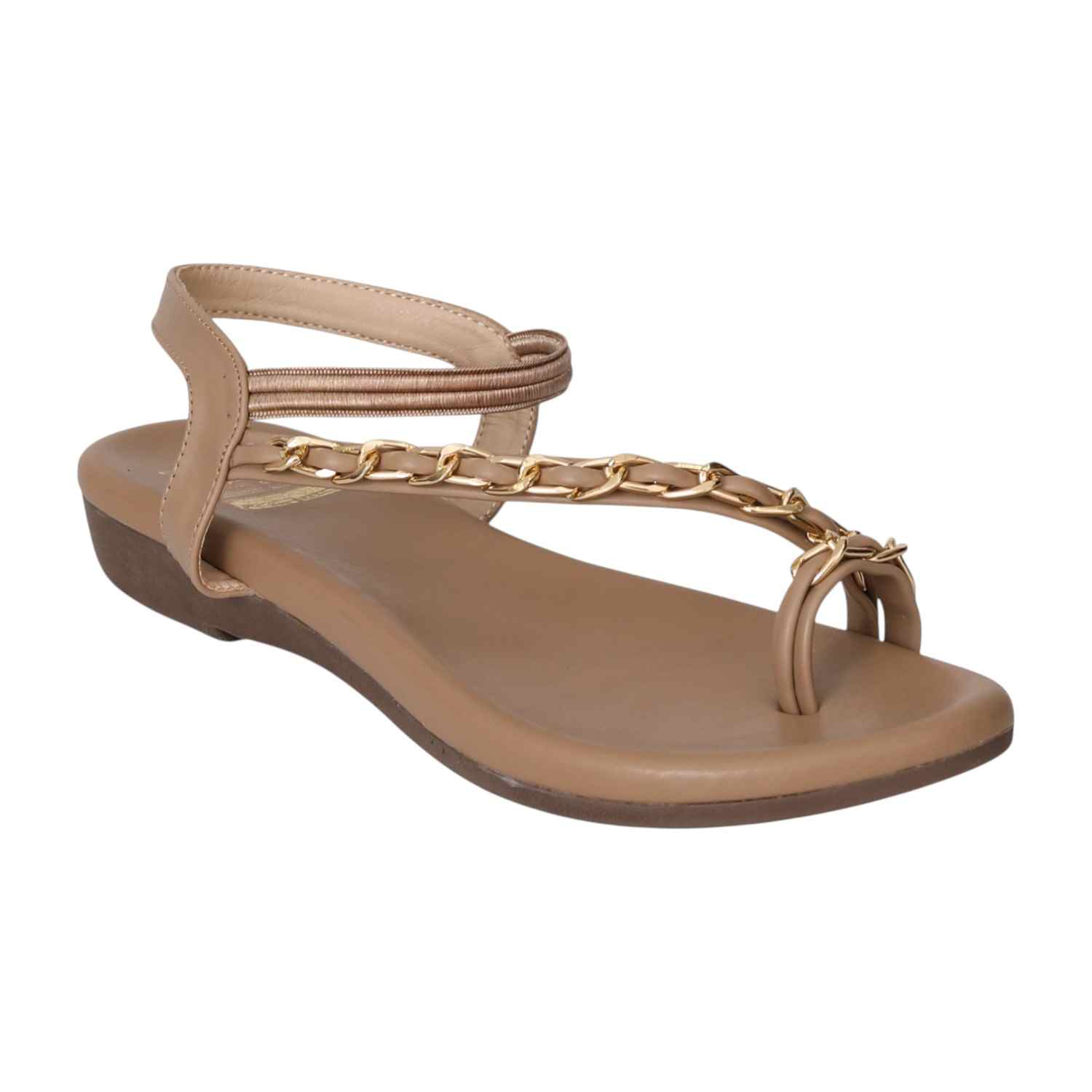 Step into elegance with the Beige Chain-Link Toe Flats. Featuring a sleek toe-ring design and a gold chain detail along the strap, these flats offer a modern twist on classic style. The cushioned sole provides all-day comfort, while the back strap ensures a secure fit. Perfect for both casual and dressy occasions.