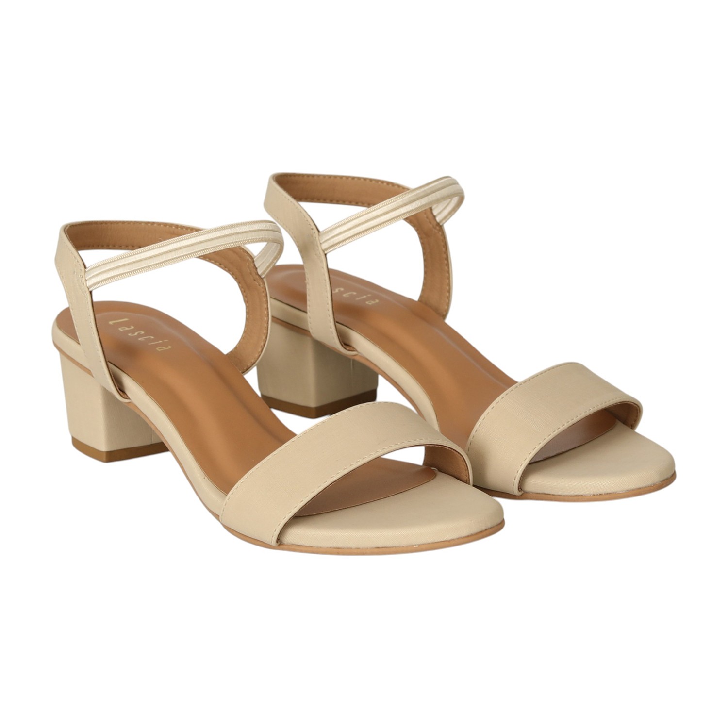 Glow with grace in the Beige Glow Block Sandals, crafted in a subtle shimmer tone that adds just the right hint of glam. The chic ankle strap and mid-block heel offer a stable, flattering lift — perfect for celebrations, work days, or a stylish evening out.