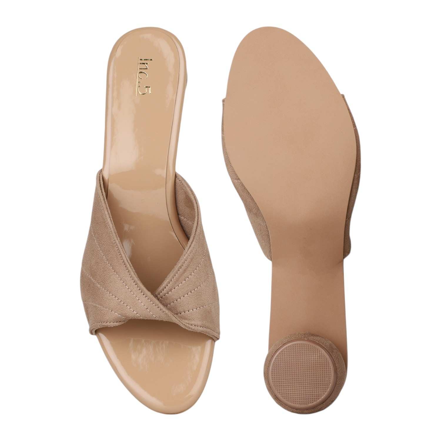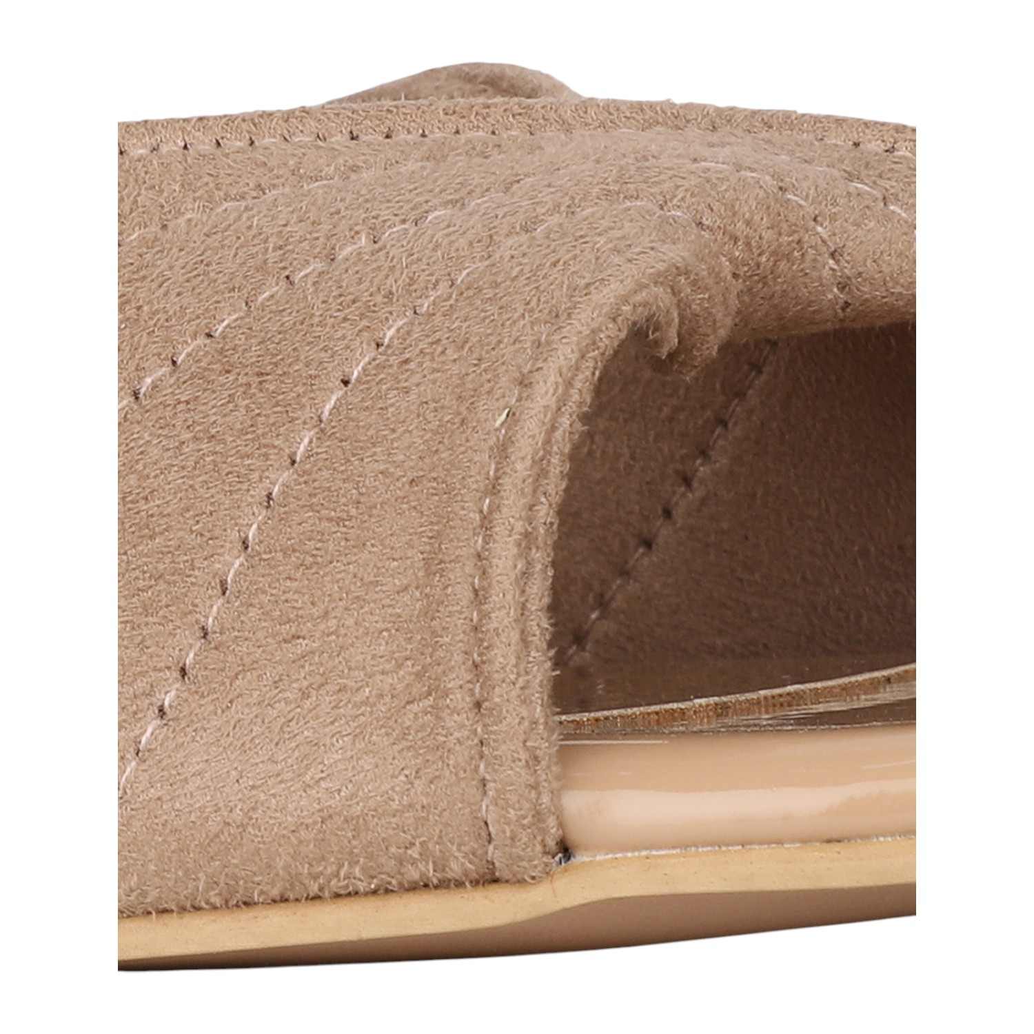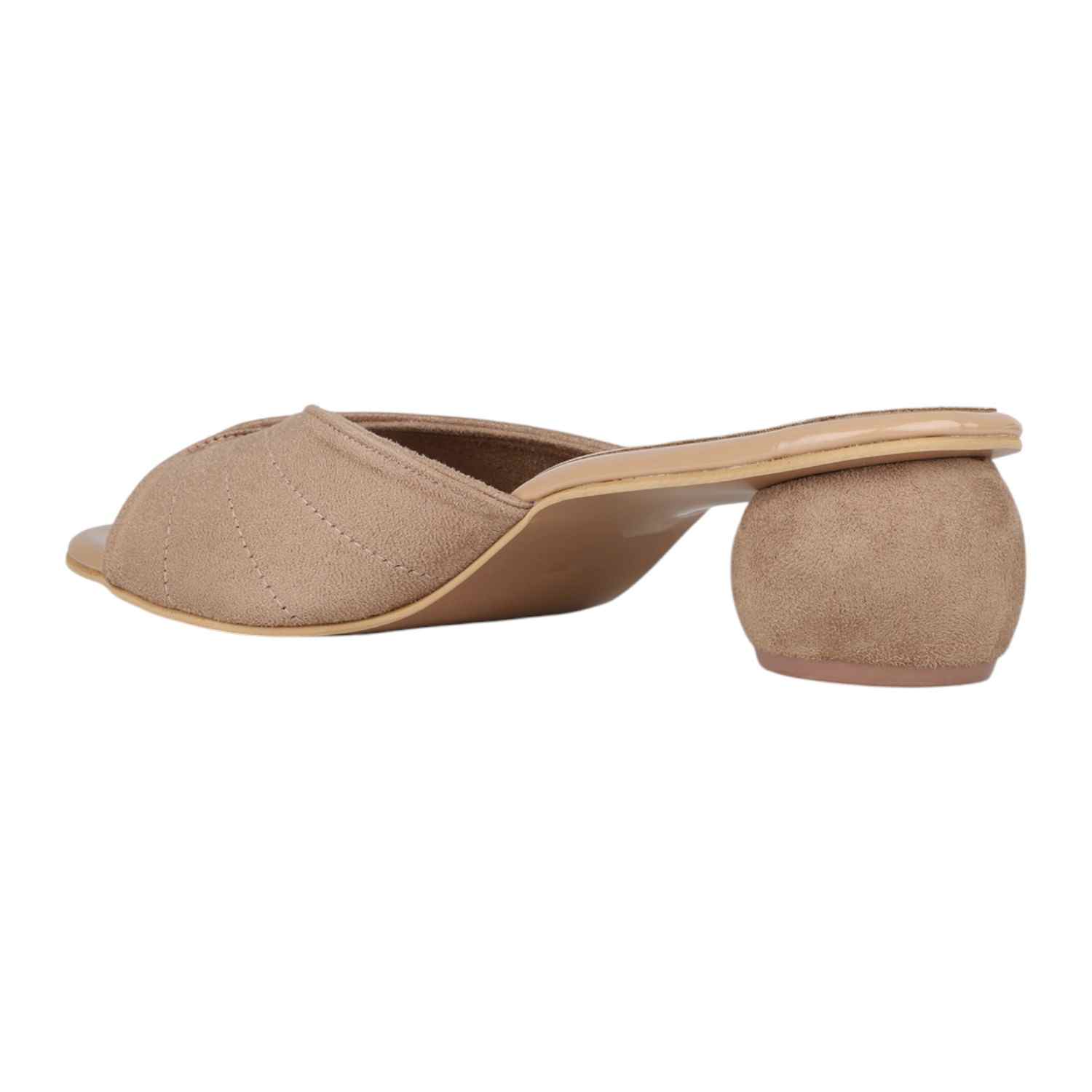 Step out in unique elegance with these beige slides, featuring a wide strap adorned with a sophisticated quilted or ribbed pattern. The distinctive sculptural spherical heel adds a modern, artistic touch, while the comfortable slip-on design makes them a chic choice for any occasion