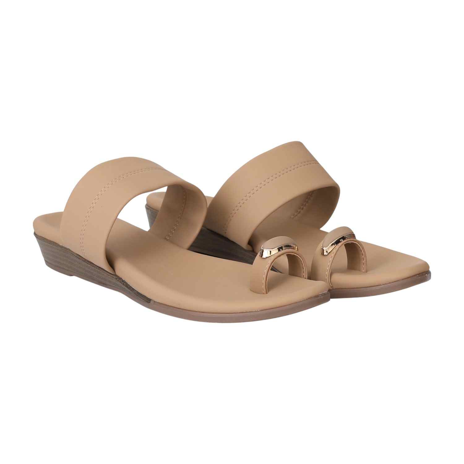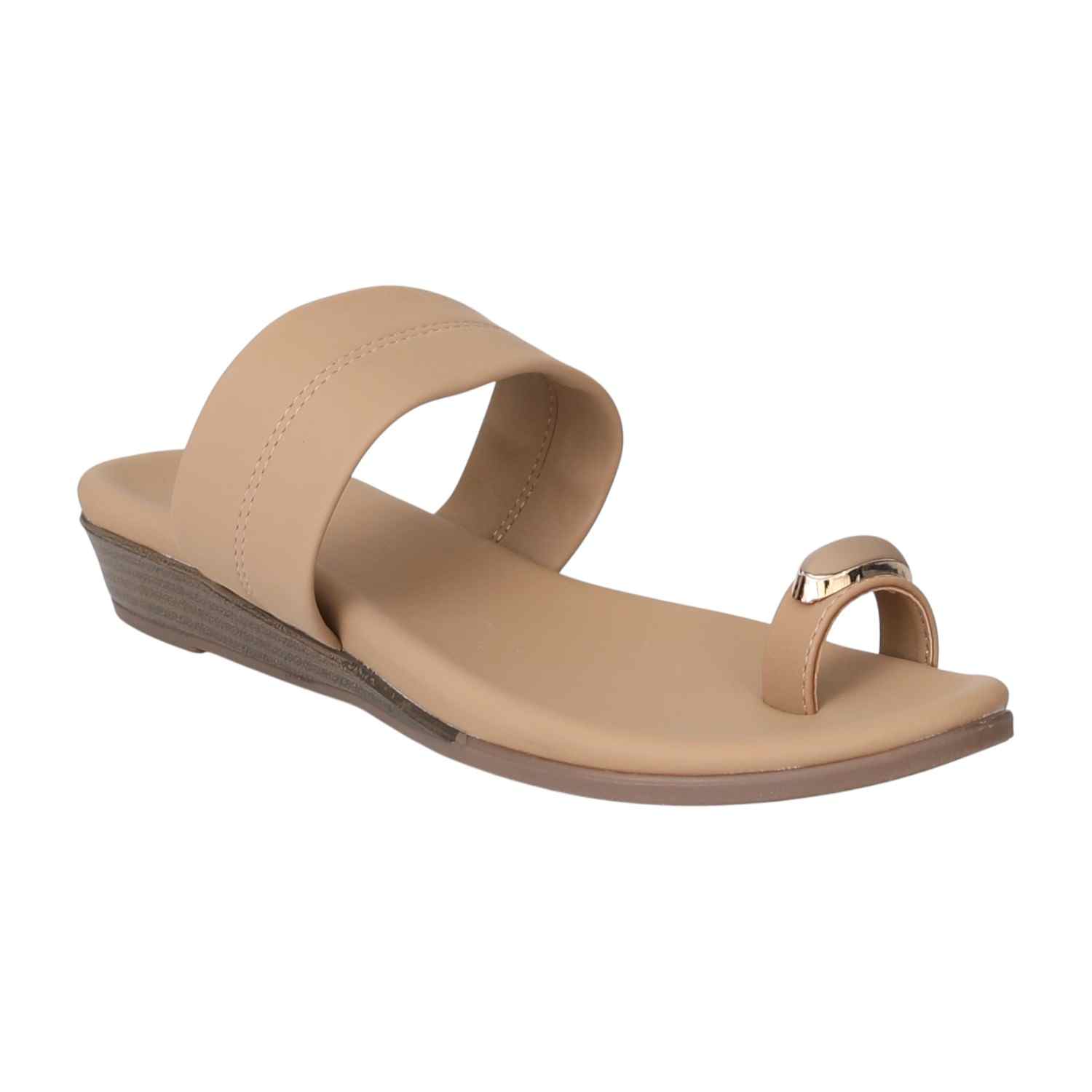 Glide with trendsetting style in TrendGlide Sandals, designed with a sleek leather finish, a toe-ring featuring a metallic detail, and a comfortable dual-strap layout. Ideal for day-to-night wear or social events, they provide a padded insole and wedge height, ensuring ease with a modern, eye-catching appeal.