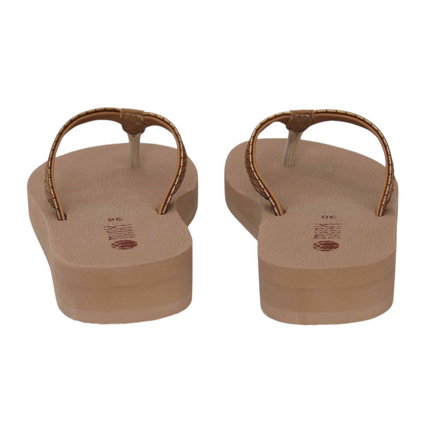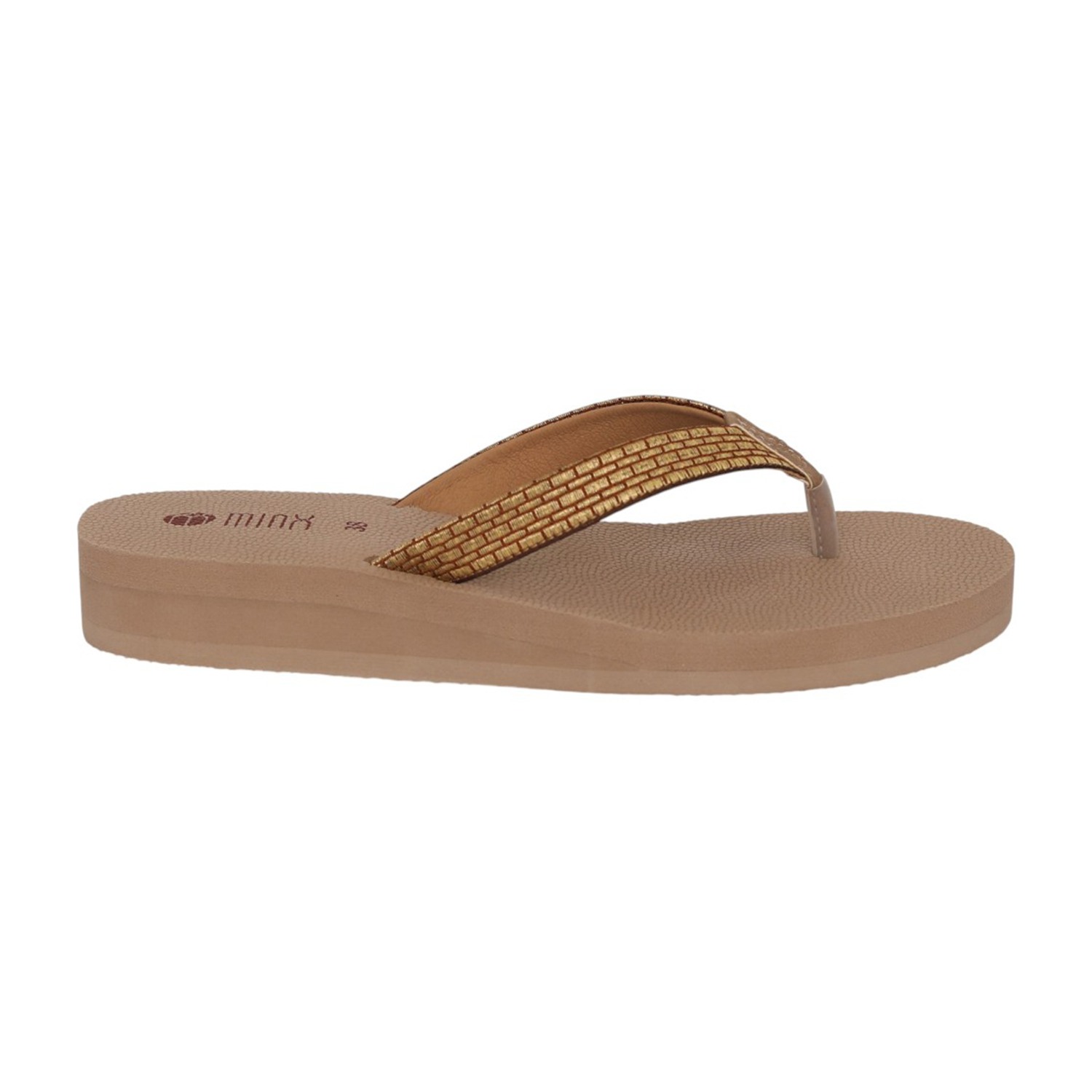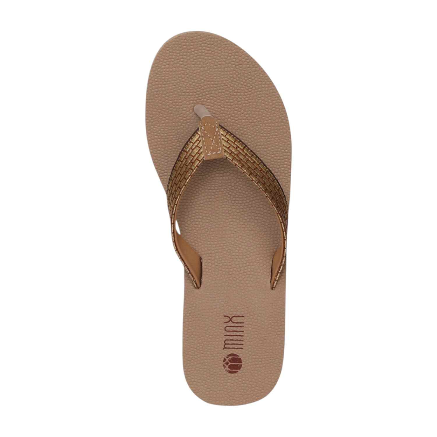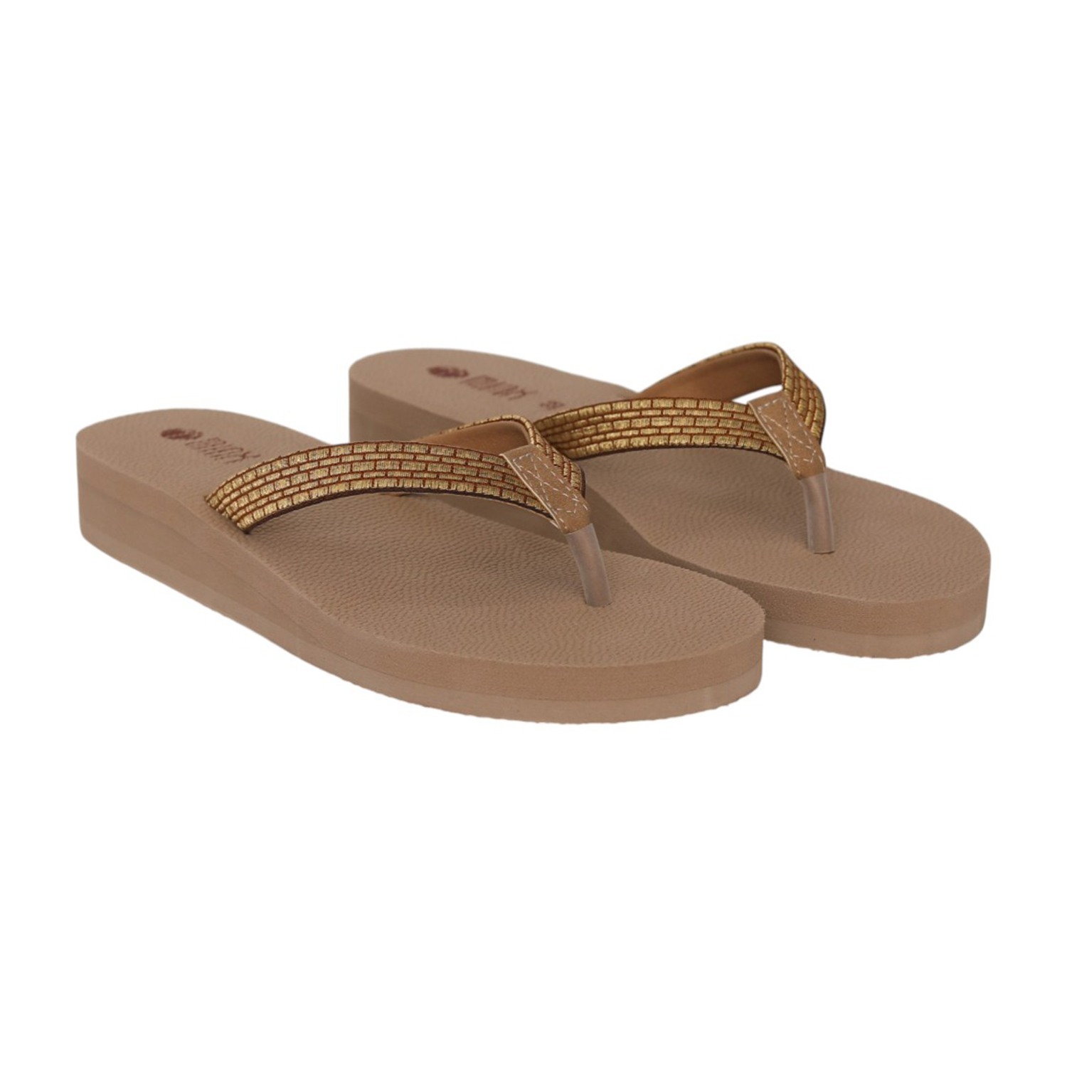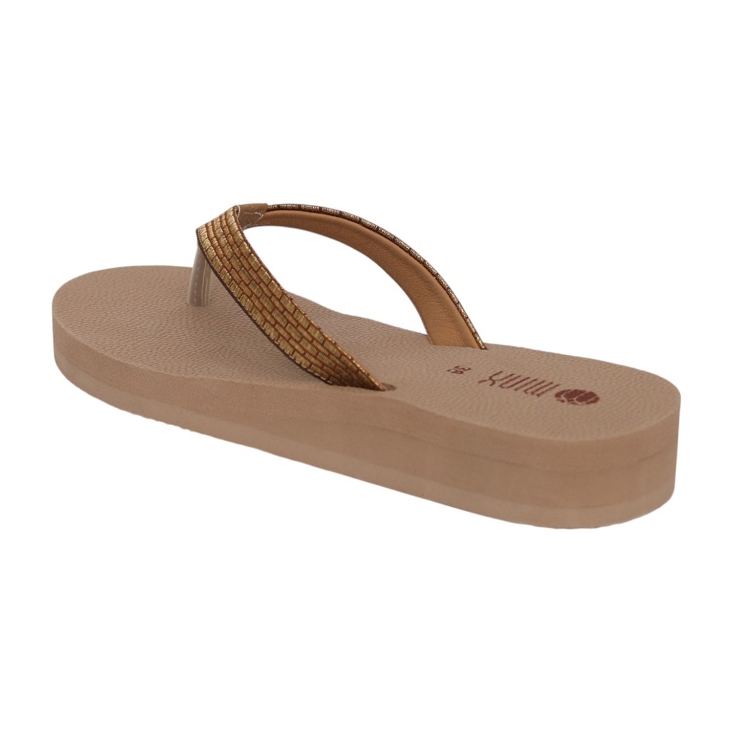 Step into everyday comfort with these stylish beige wedge flip-flops. Designed with a soft textured footbed, they provide excellent cushioning and support for prolonged wear. The sleek toe-post silhouette is complemented by a subtly shimmering metallic strap, adding a touch of elegance to a casual essential. The lightweight wedge sole offers gentle height while ensuring stability and ease of movement. Perfect for daily wear, beach outings, or relaxed weekends, these flip-flops combine comfort, durability, and understated style.