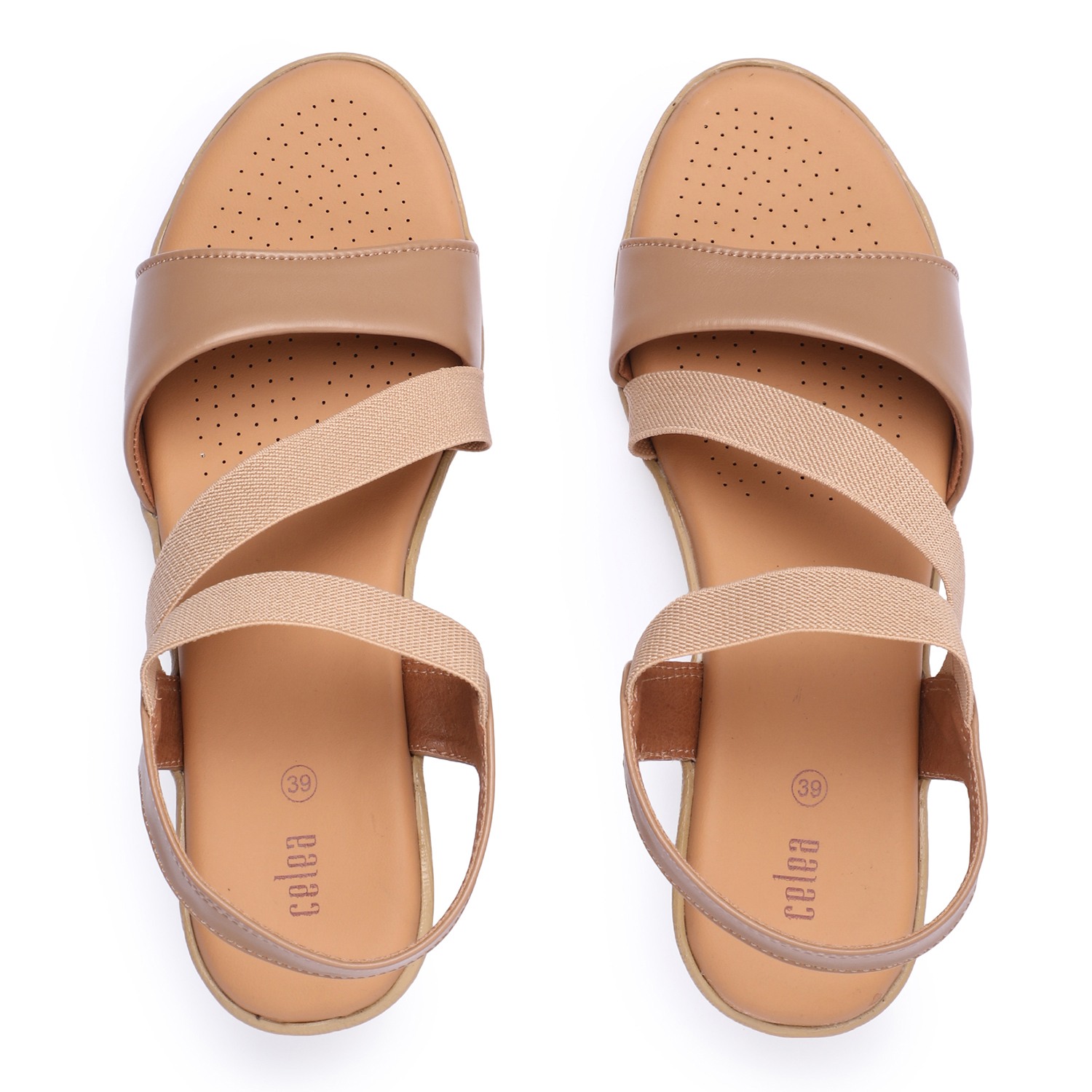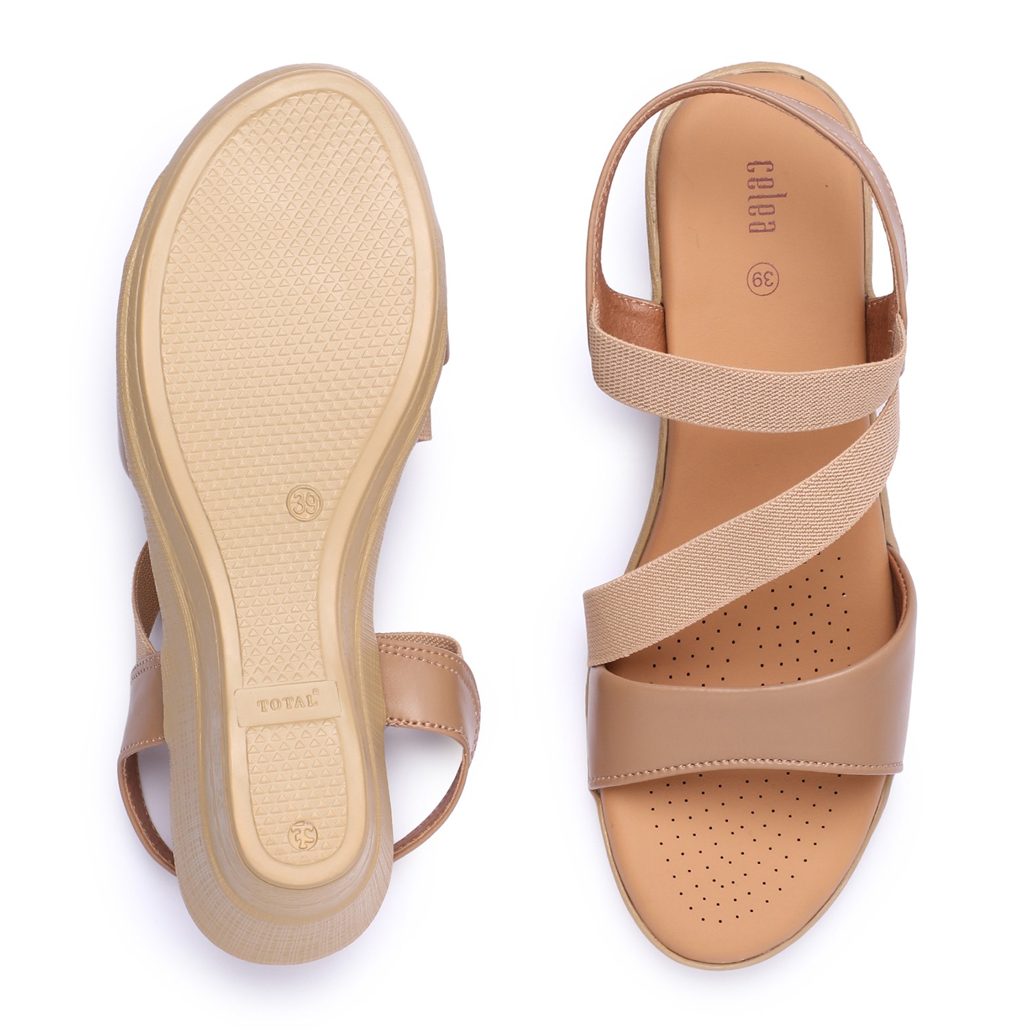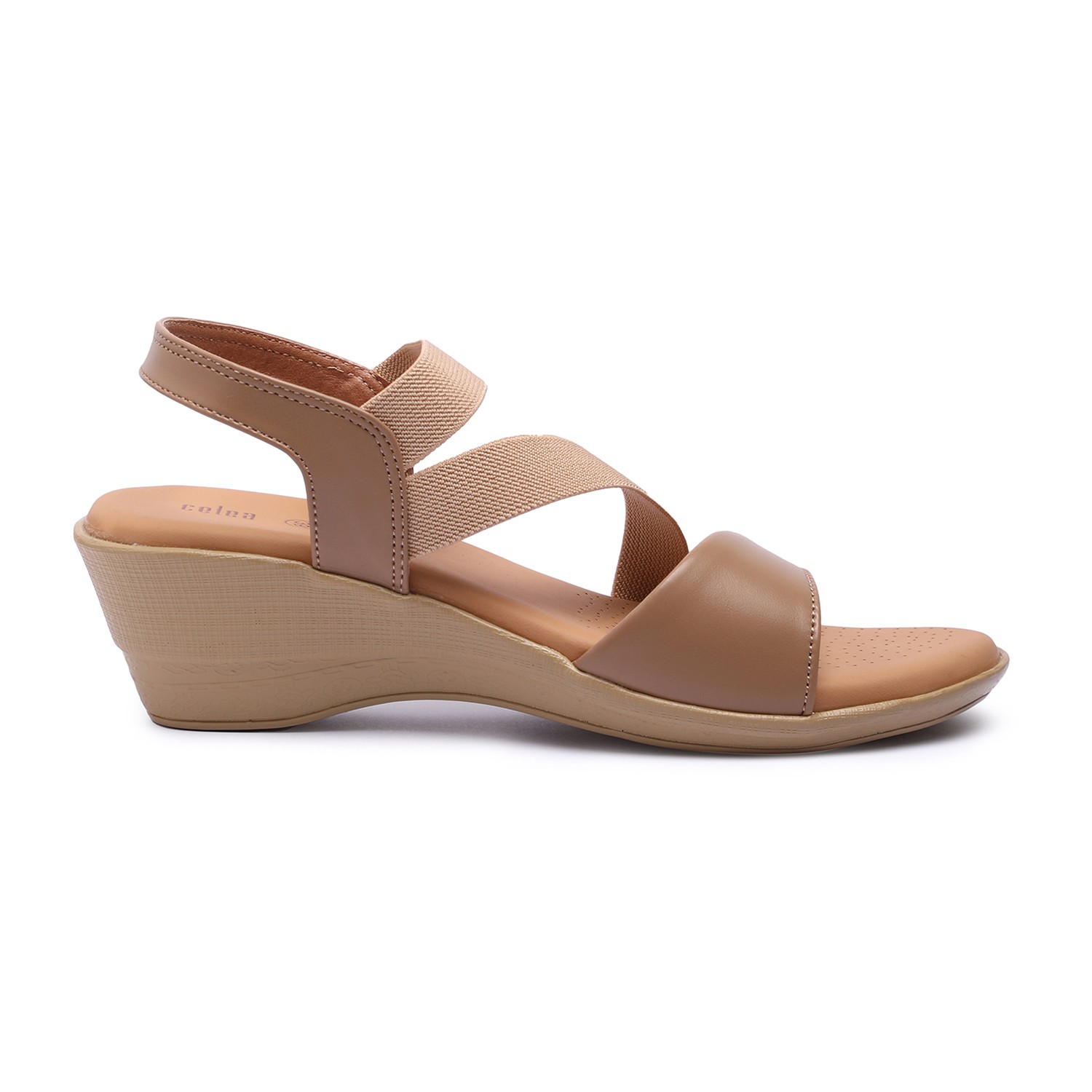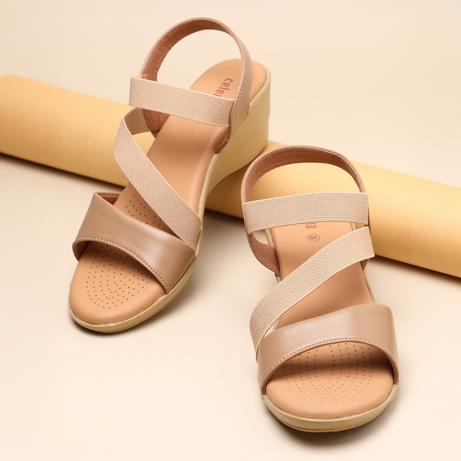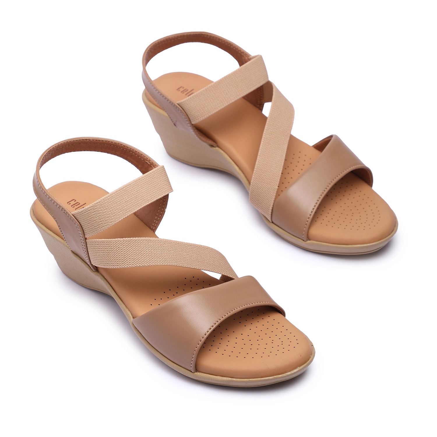 Step into effortless style and comfort with these beige wedge sandals. Featuring soft, crisscross elastic straps for a secure and flexible fit, these sandals provide all-day support. The cushioned insole ensures superior comfort, while the sturdy wedge heel offers just the right amount of lift.