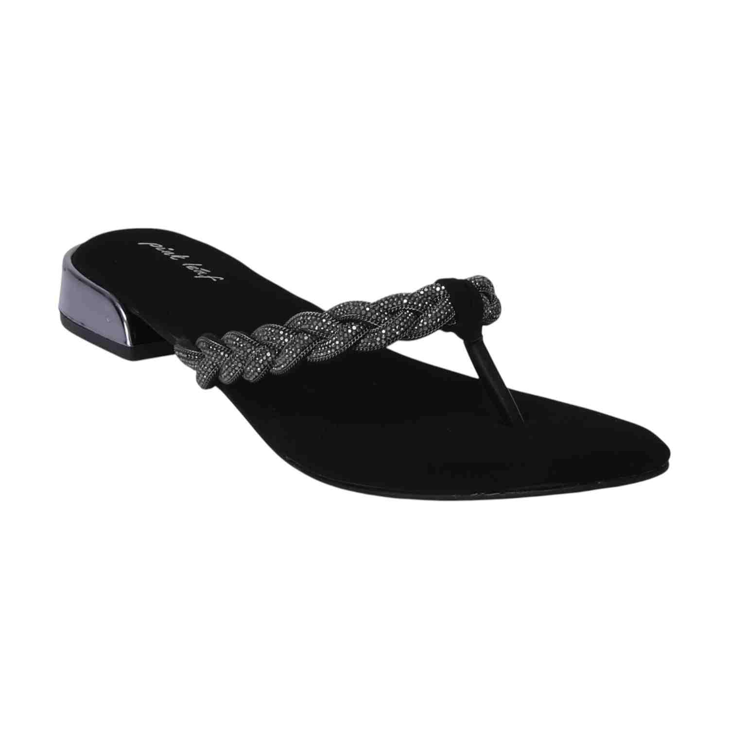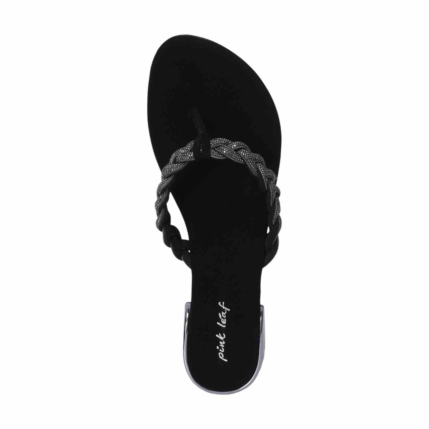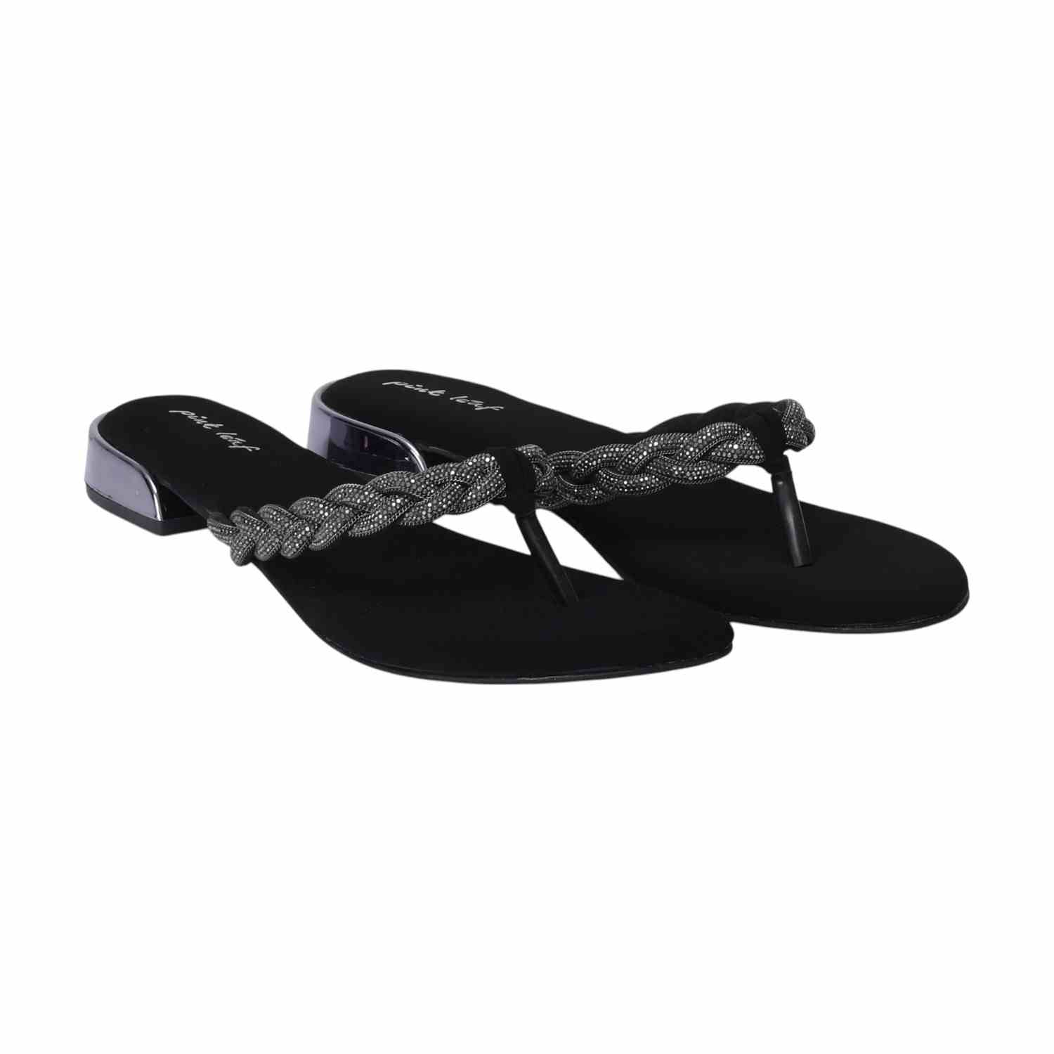 Step into understated elegance with these Black braided thong sandals. Featuring a chic embellished braided strap and a subtle silver-detailed low heel, they offer comfortable style perfect for versatile everyday wear.