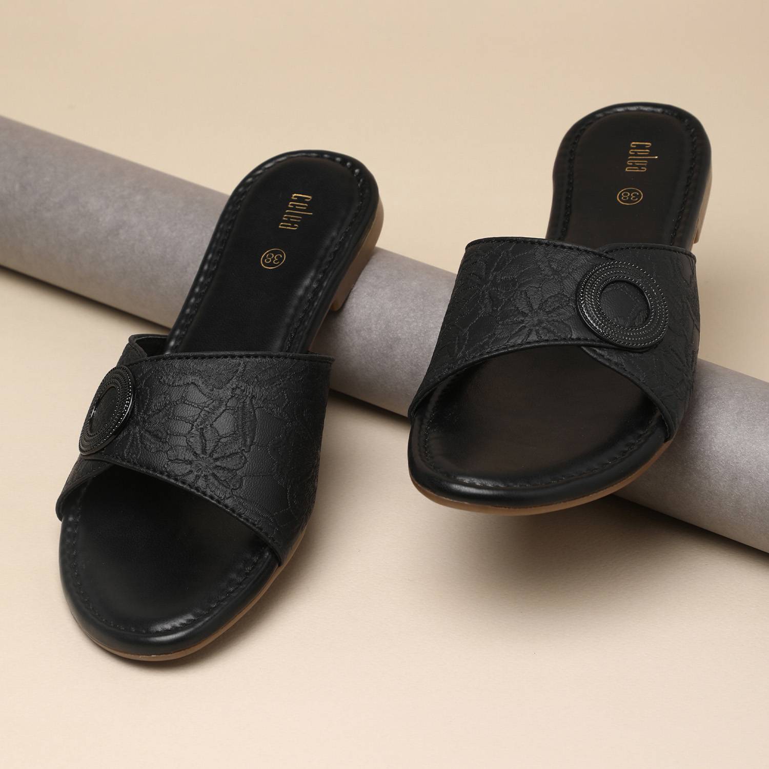 Step into effortless style with these sophisticated sandals. The comfortable slide upper along with a decorative detailing for a touch of contemporary appeal,while the cushioned footbed ensures all-day comfort.