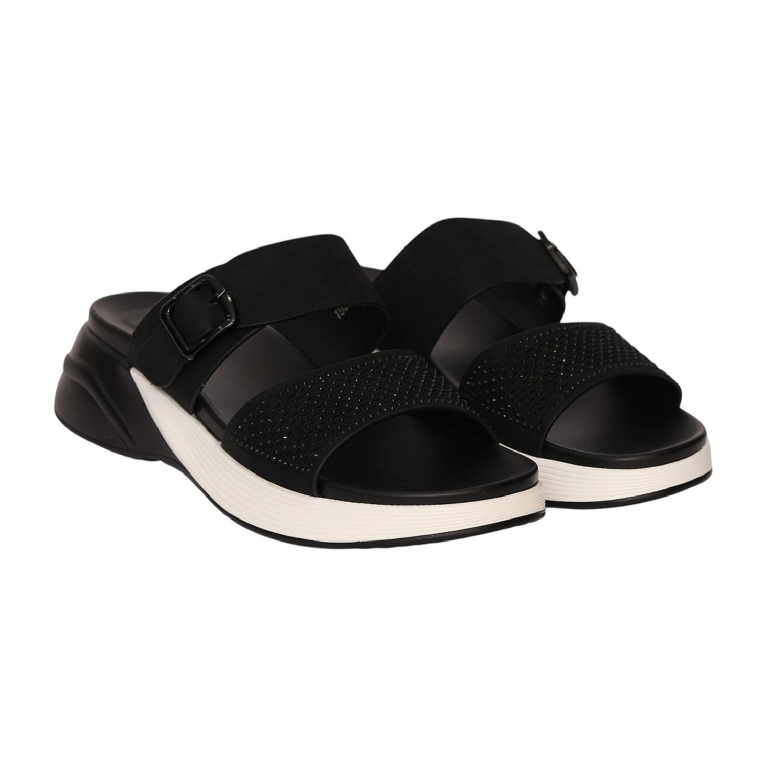 Upgrade your everyday style with these modern and comfortable women’s sandals. Designed with a sleek black finish, dual straps, and an adjustable buckle closure, these sandals provide a secure and customized fit. The cushioned footbed and lightweight platform sole offer enhanced comfort and support, making them ideal for daily wear, casual outings, or long hours on your feet. Stylish yet practical, these sandals perfectly blend fashion with comfort.