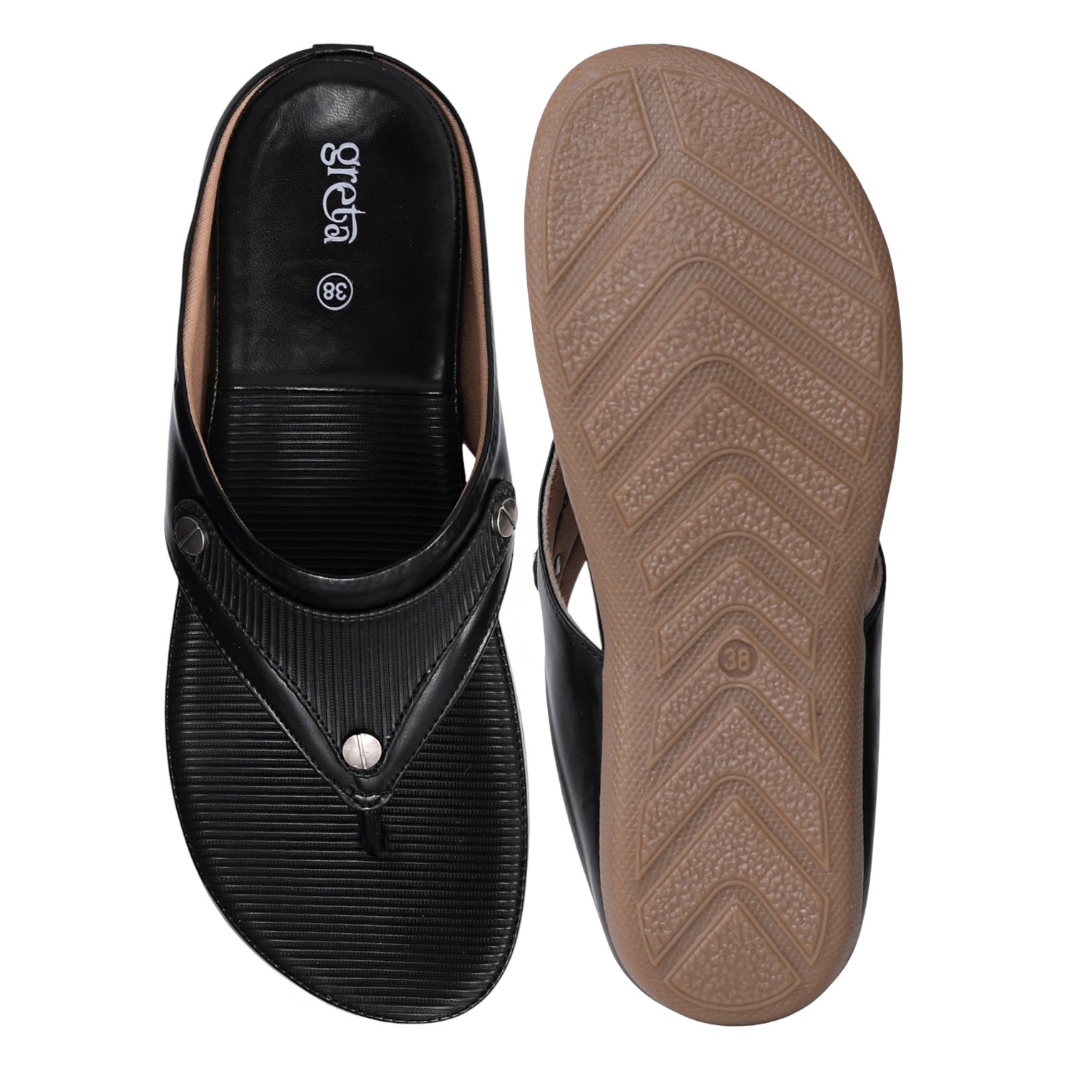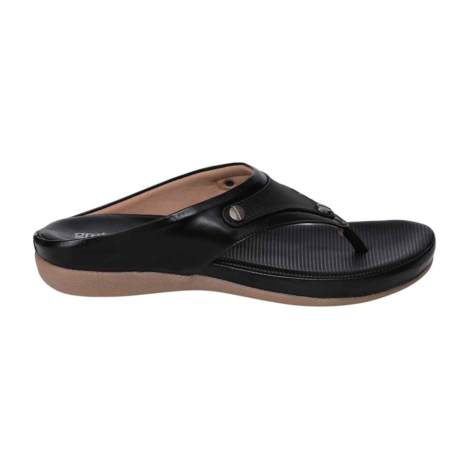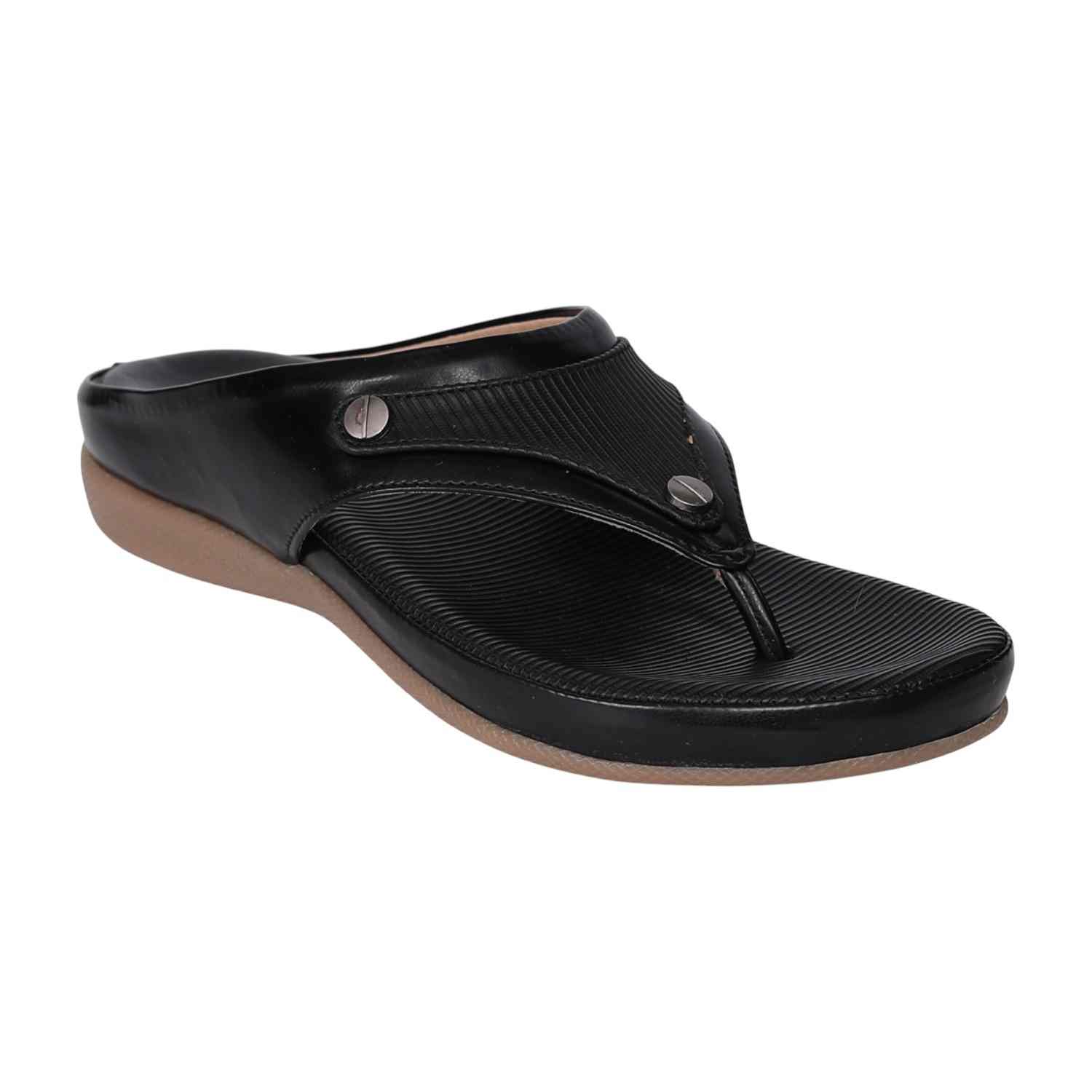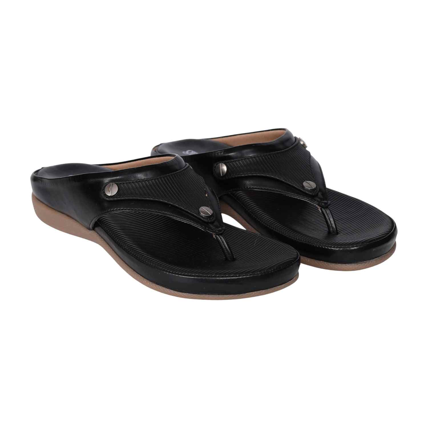 Elevate your everyday style with these black comfort sandals for women. Featuring a textured footbed and a cushioned sole, these sandals provide maximum comfort for all-day wear. The sleek black upper with metallic stud accents adds a modern touch, while the slip-on design ensures easy wearability. Ideal for casual wear