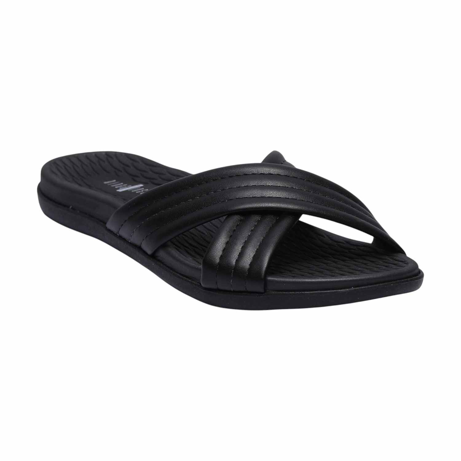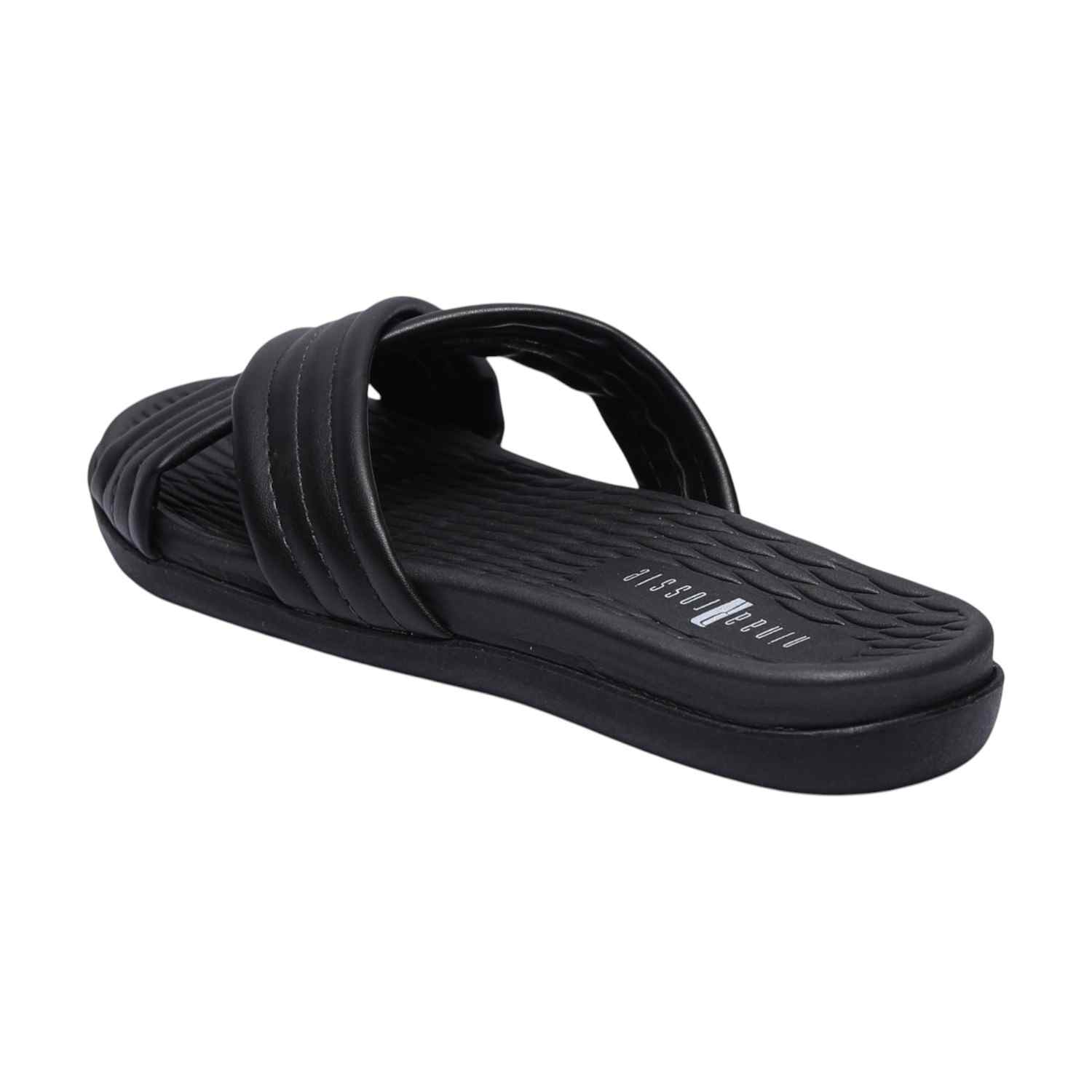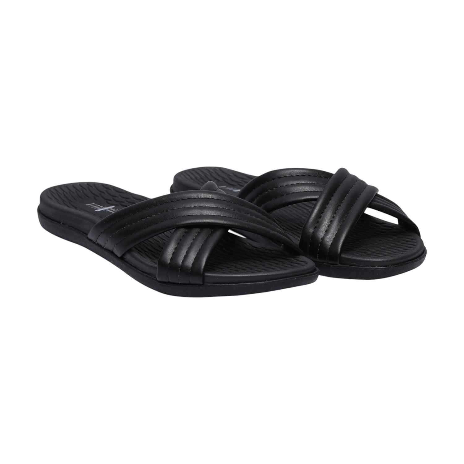 Step into ultimate comfort with our Black Criss-Cross Slides. These stylish slip-on sandals feature wide, plush criss-cross straps with a subtle ribbed texture, providing a secure yet comfortable fit. Designed with a matching black footbed that offers a textured surface for added grip and a flexible sole, these slides are perfect for relaxing at home or adding a touch of effortless style to your casual ensembles