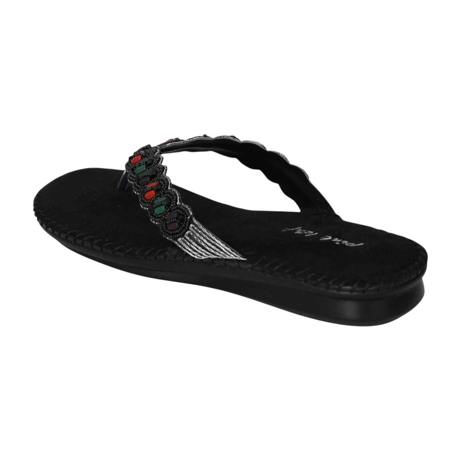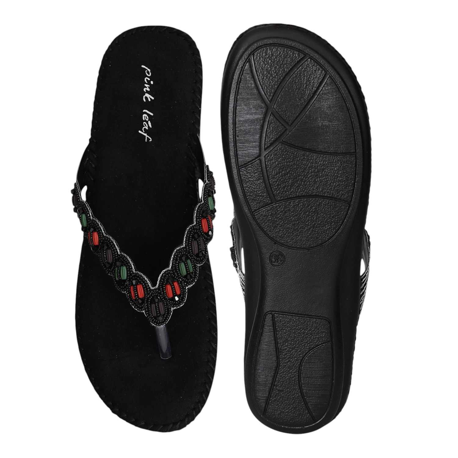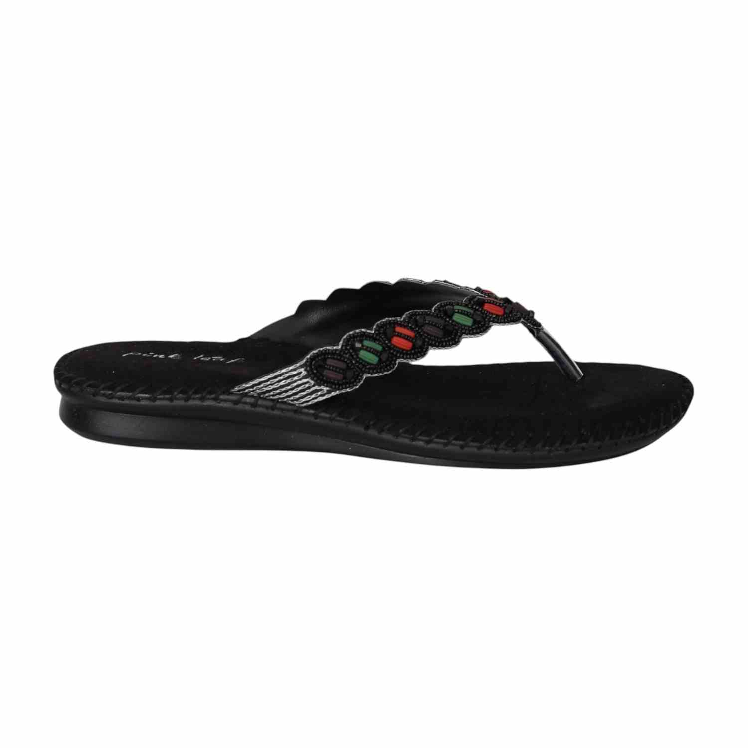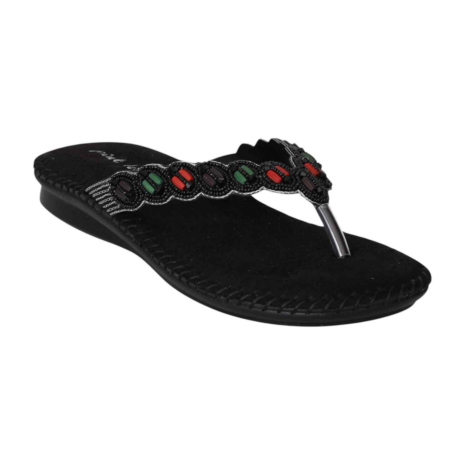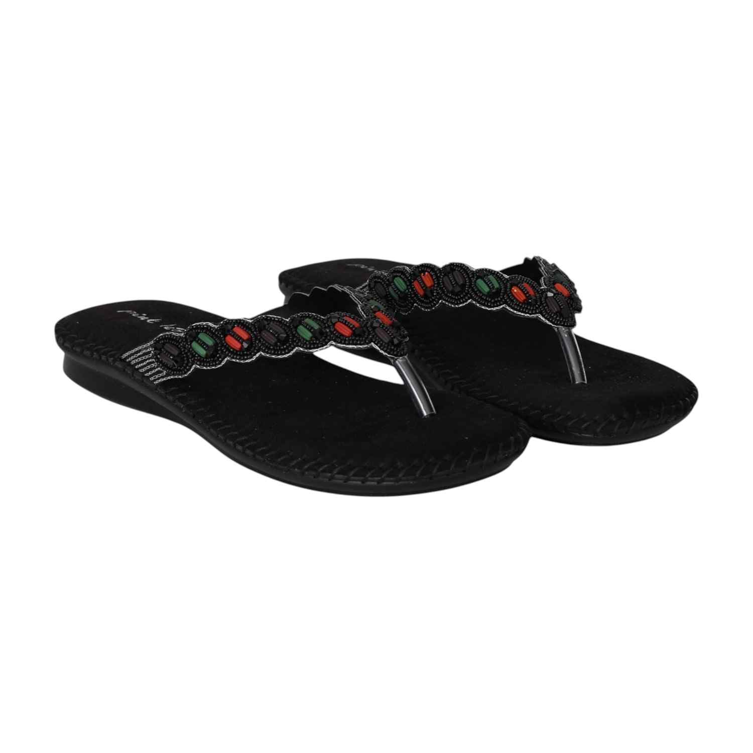 Add a touch of ethnic elegance to your wardrobe with these Black Ethnic Beaded Flats. Featuring vibrant, handcrafted beadwork on a comfortable cushioned footbed, these flats combine style and ease effortlessly. The subtle wedge heel offers a gentle lift while maintaining comfort for all-day wear. Perfect for casual outings, festive occasions, or whenever you want to make a statement with your footwear.