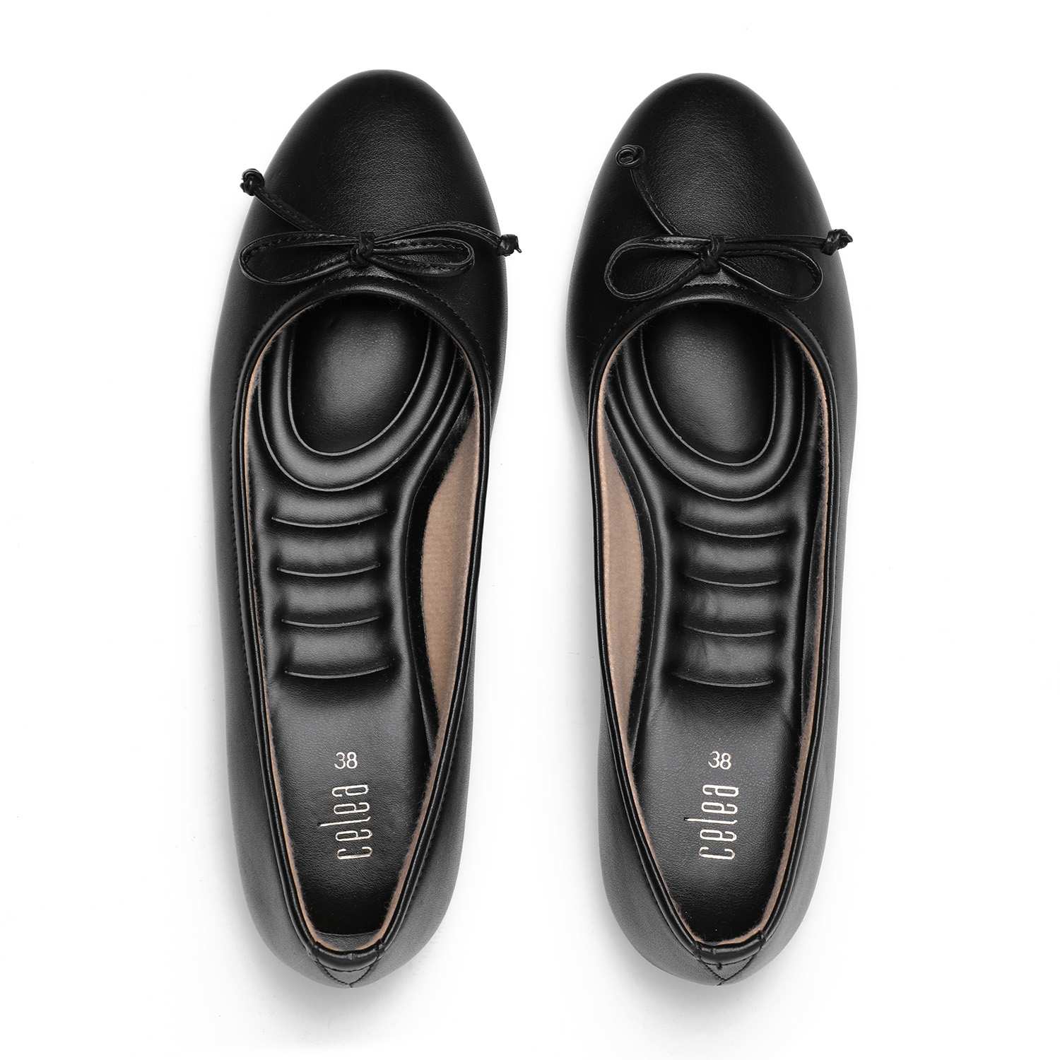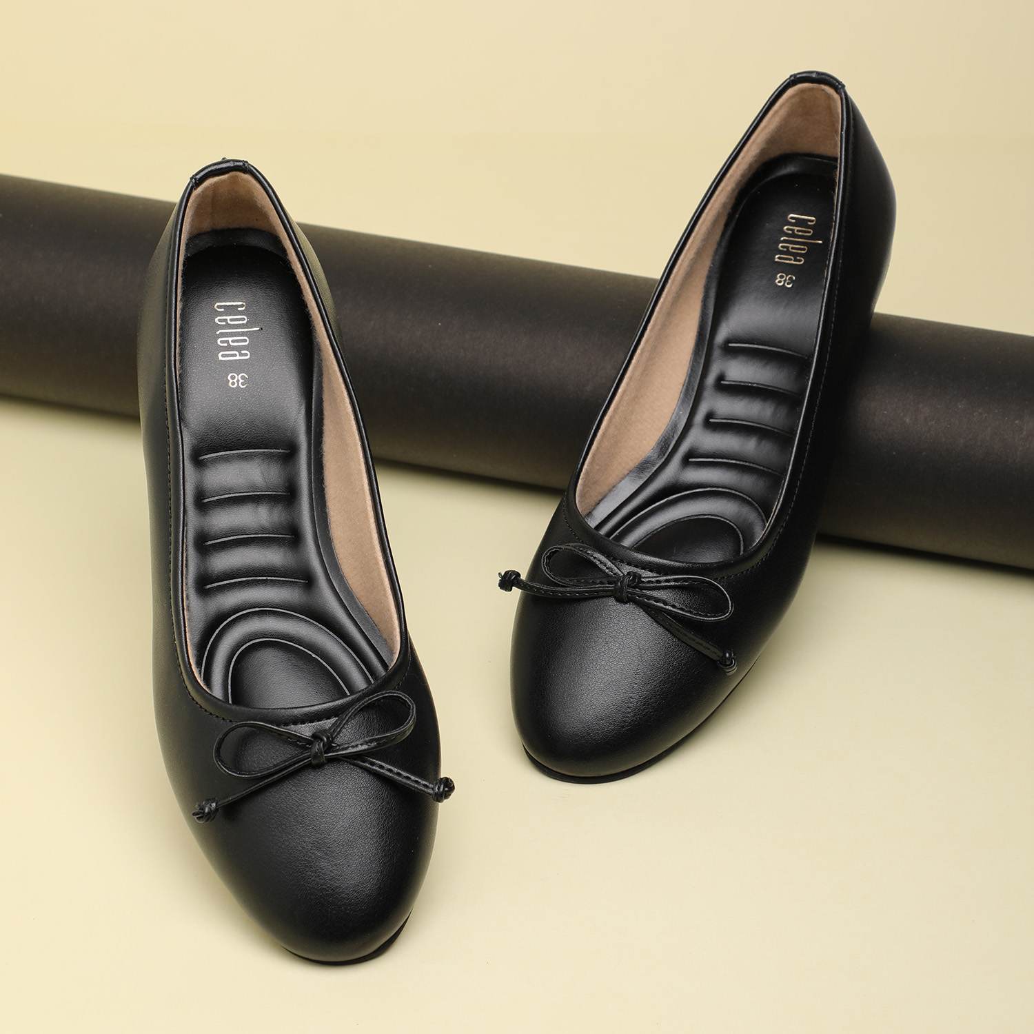 Channel your inner romantic with the NoirBelle Ballerinas. These Black flats, adorned with a dainty bow, add a subtle charm to any outfit. Designed with comfort in mind, they promise all-day ease with a hint of whimsy.