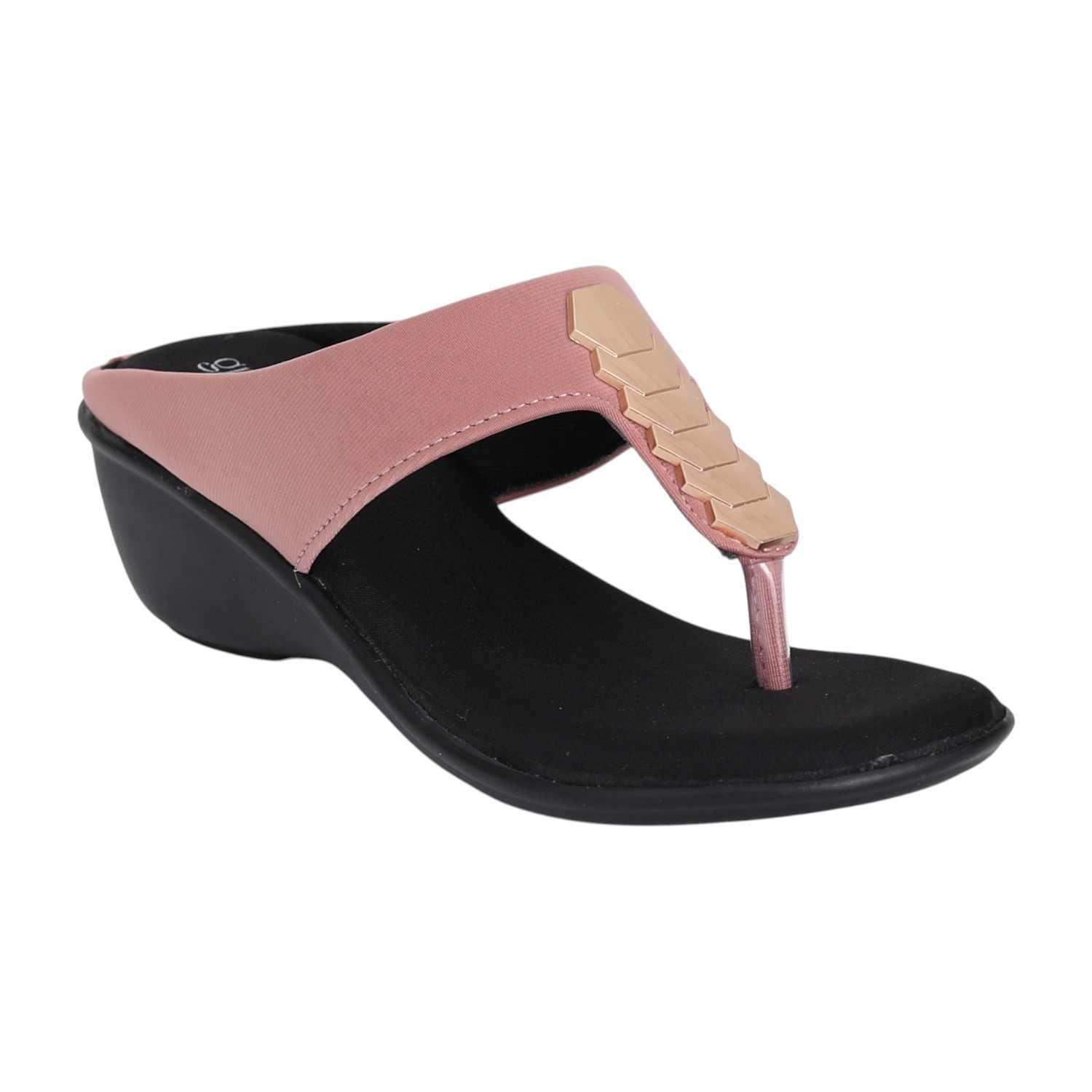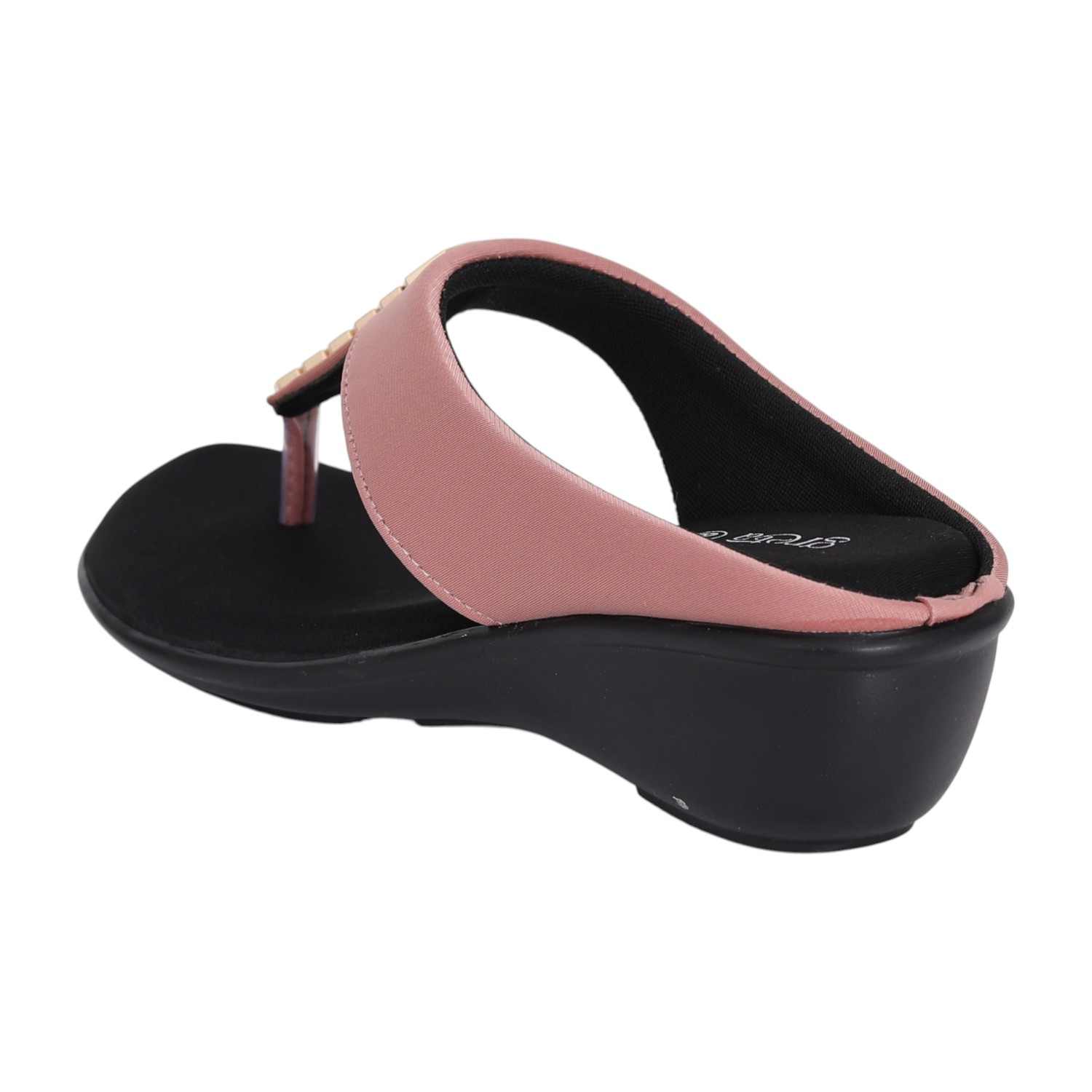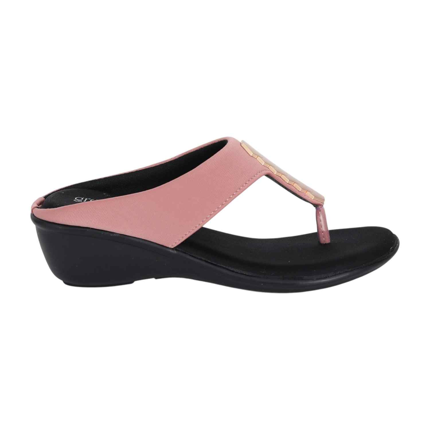 Step out in style with these elegant wedge sandals. Designed with a soft blush pink strap and a gold accent detail, they bring a perfect balance of sophistication and comfort. The cushioned footbed and supportive wedge heel make them ideal for day-to-night wear, whether casual or dressy.