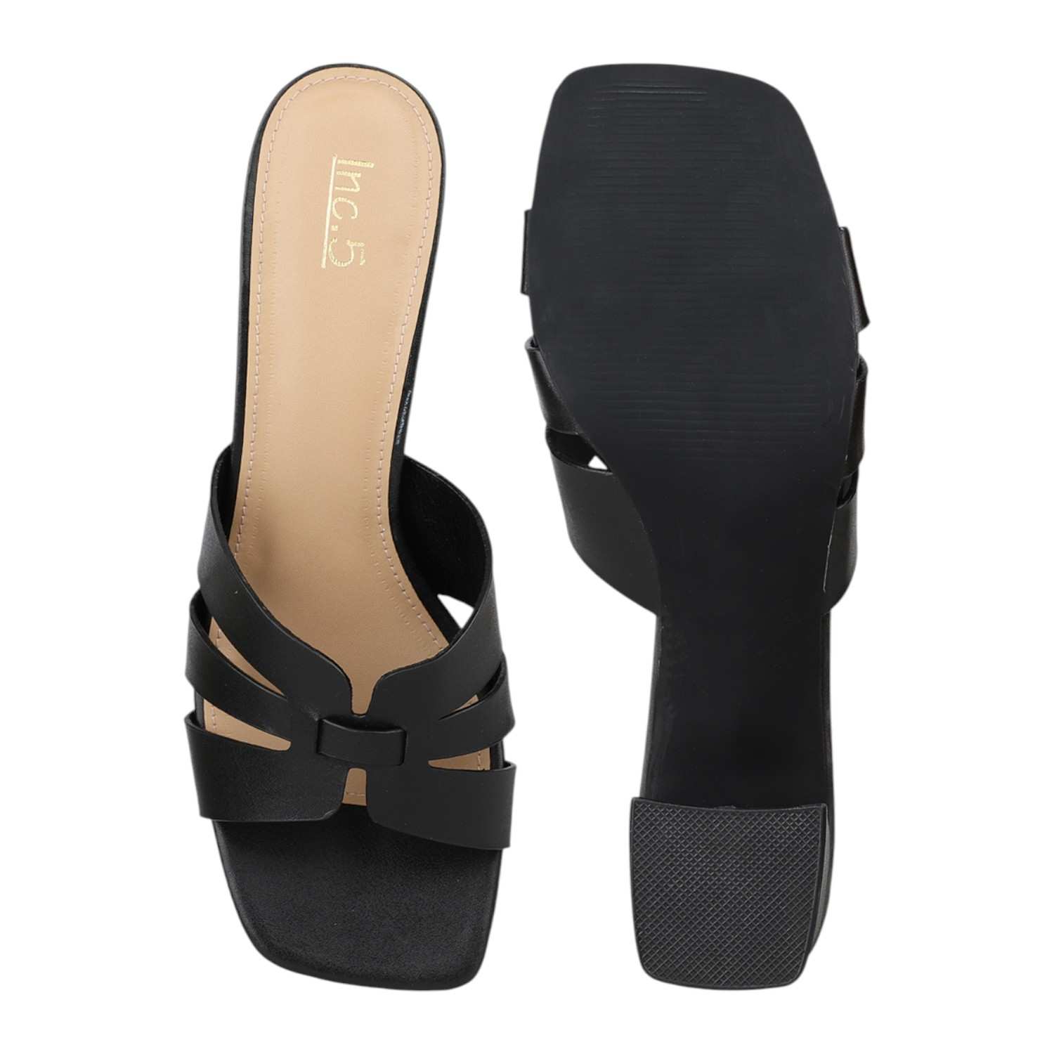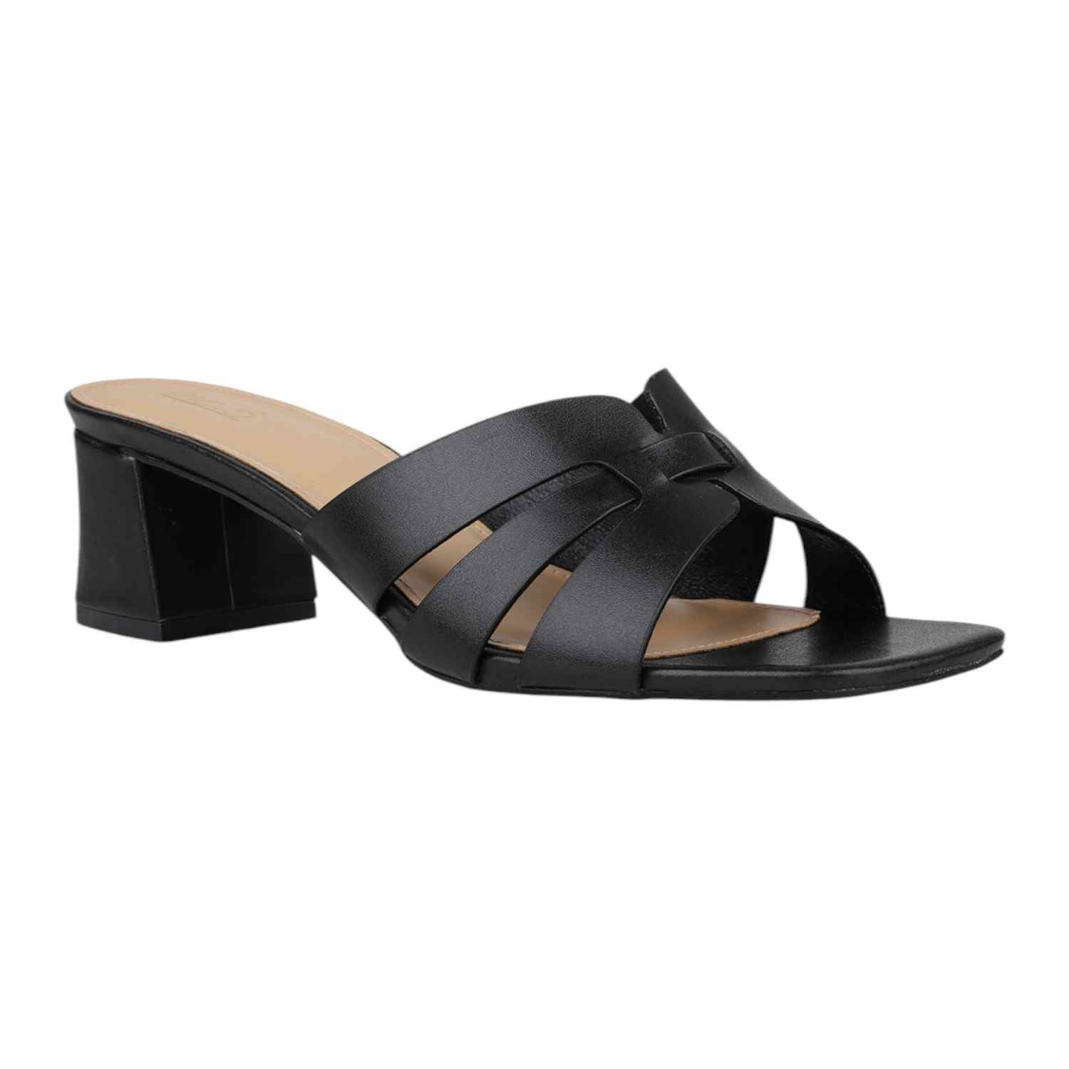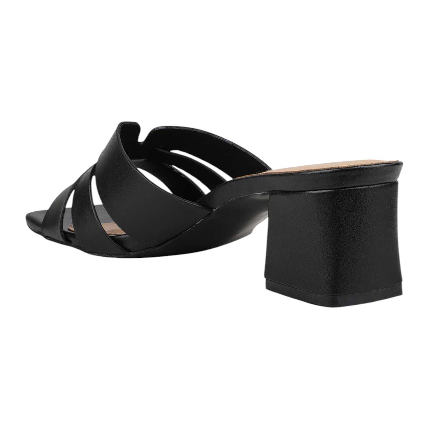 Step out in sophisticated style with these black block heel slides. Featuring a chic interwoven strap design across the vamp, they offer a modern and elegant look. The comfortable block heel provides a stable lift, making these slip-on sandals a versatile choice for both casual and dressier occasions.