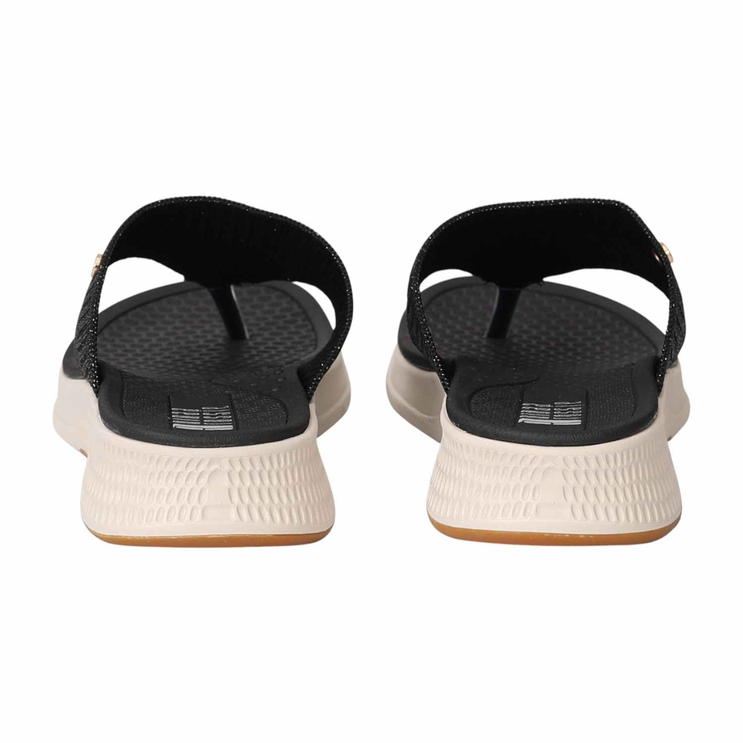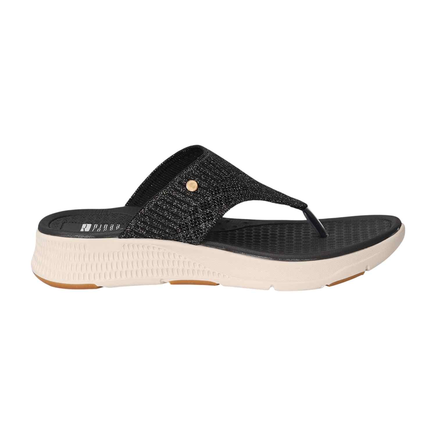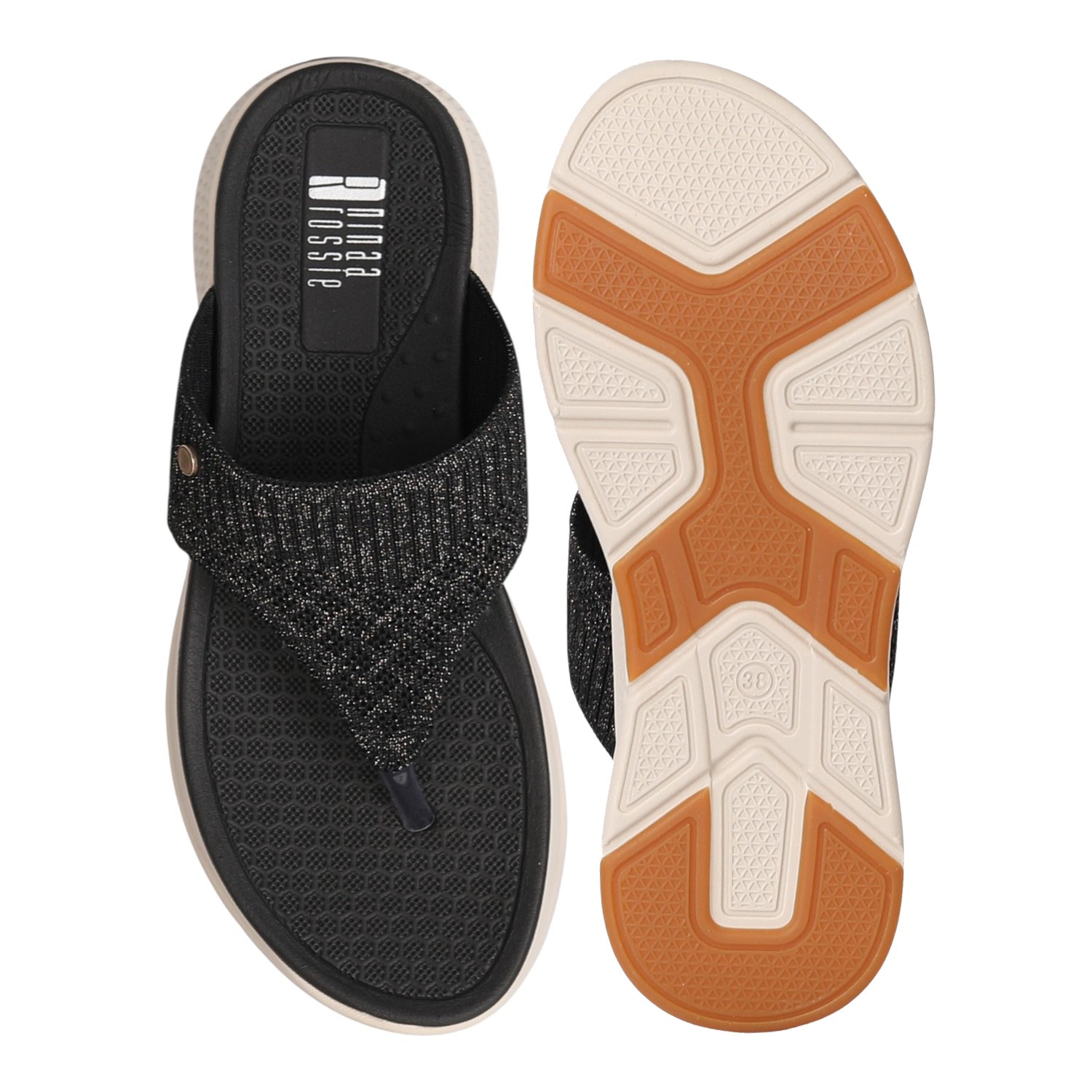 A modern take on a classic. These sandals feature a textured black knit thong strap that adds a touch of urban style. The lightweight wedge and cushioned footbed provide comfortable support, making them a chic choice for any casual occasion.