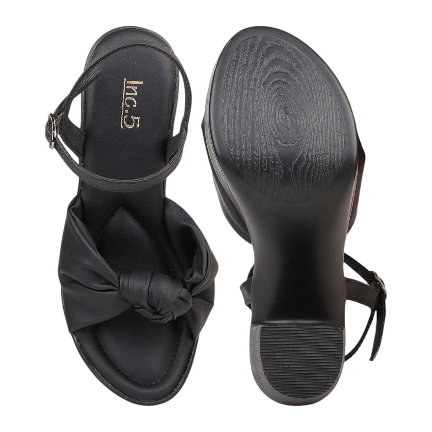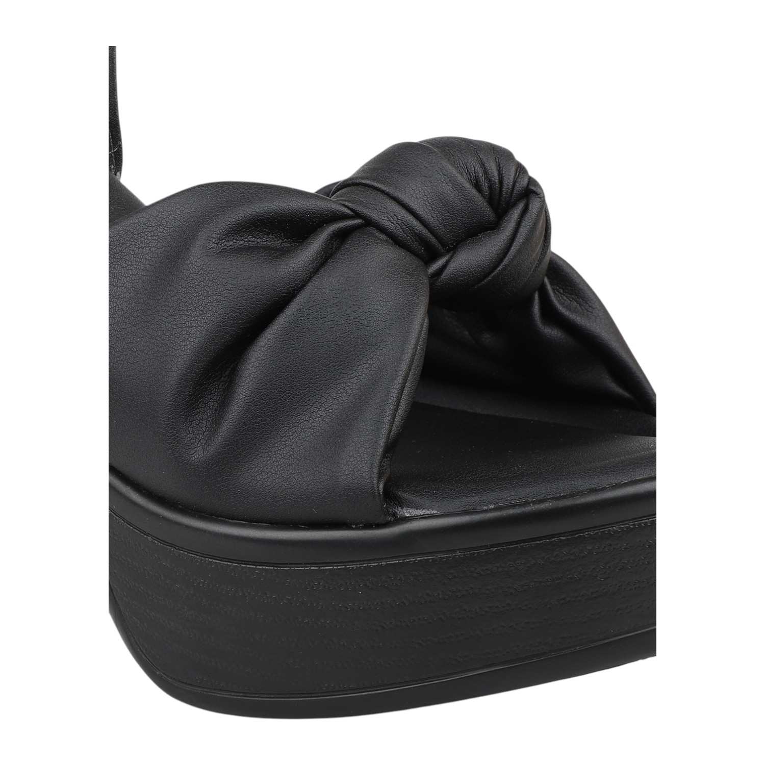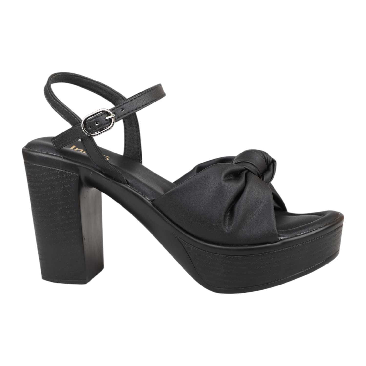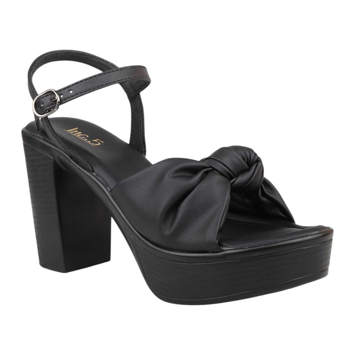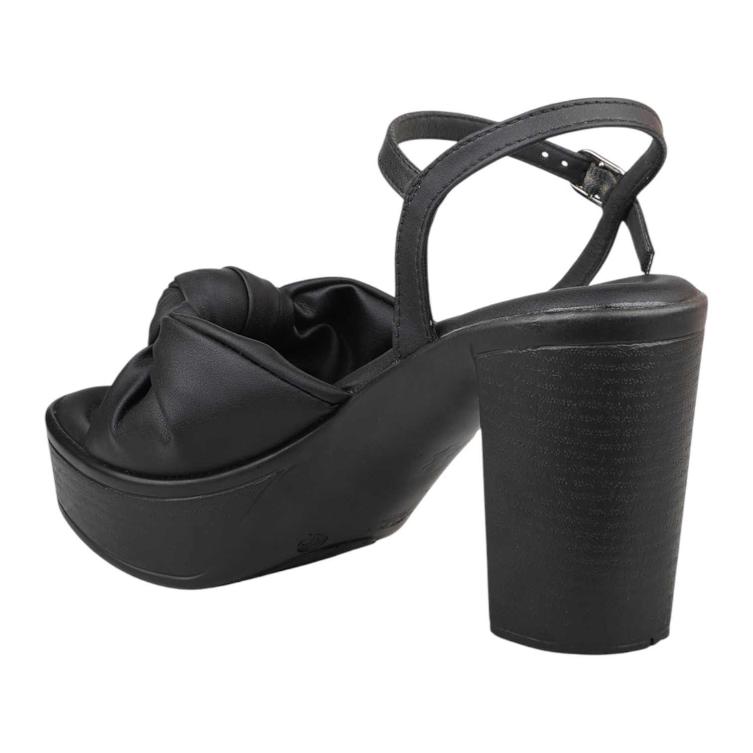 Step out in chic style with these black platform block heel sandals, perfect for any occasion. They feature a comfortable wide strap with a stylish knotted detail, adding a touch of modern elegance. The secure ankle strap with a gold-tone buckle ensures a perfect fit, while the substantial block heel and platform provide impressive height and stable support.