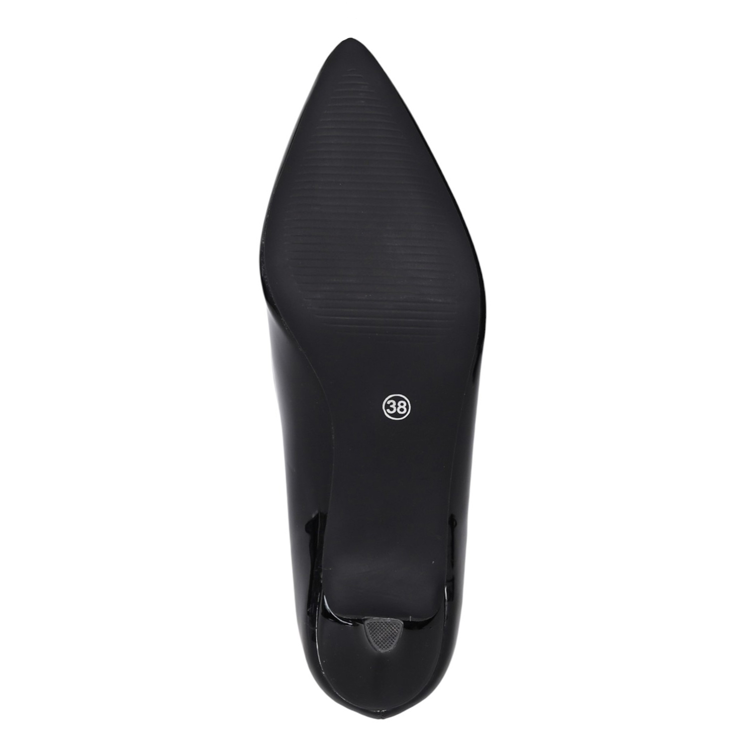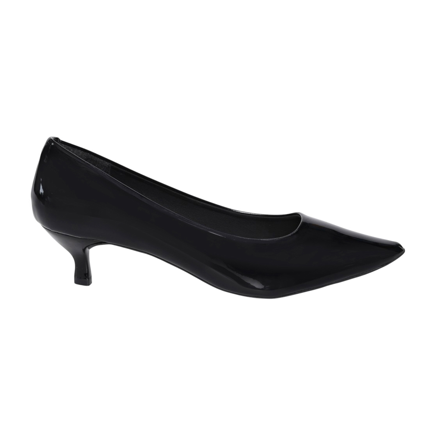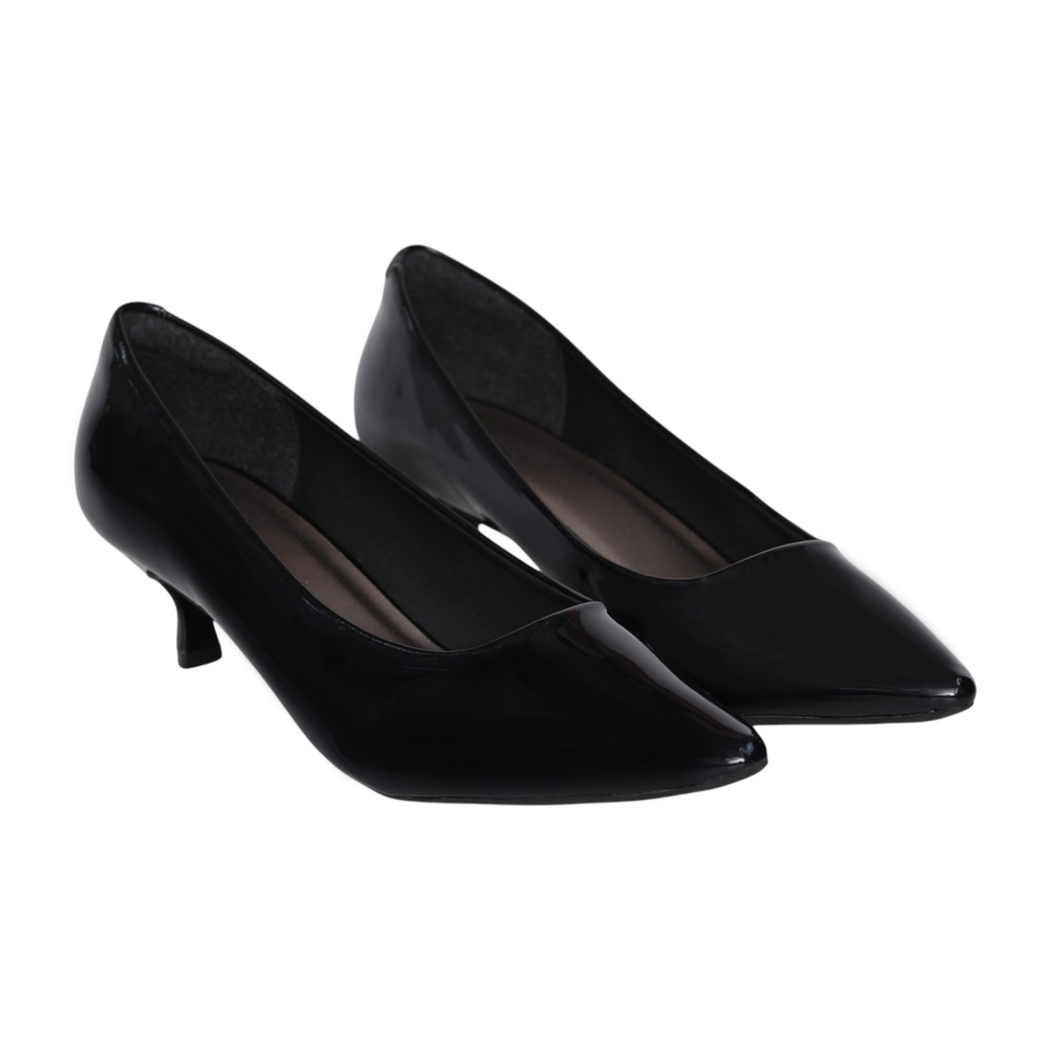 your everyday style with these sleek black pointed-toe pumps, designed for a perfect blend of elegance and comfort. Crafted with a glossy finish, these heels feature a refined silhouette that adds a sophisticated touch to both formal and semi-casual outfits. The low kitten heel provides subtle elevation while ensuring all-day comfort and stability. Ideal for office wear, evening outings, or special occasions, these versatile pumps are a timeless addition to your footwear collection.