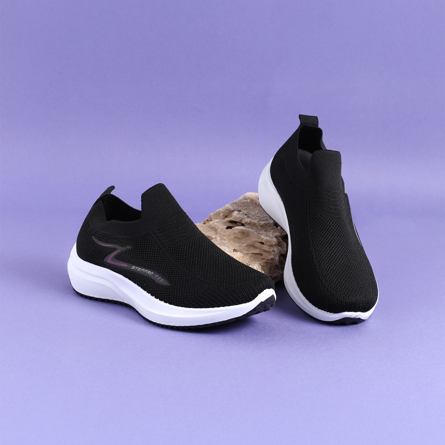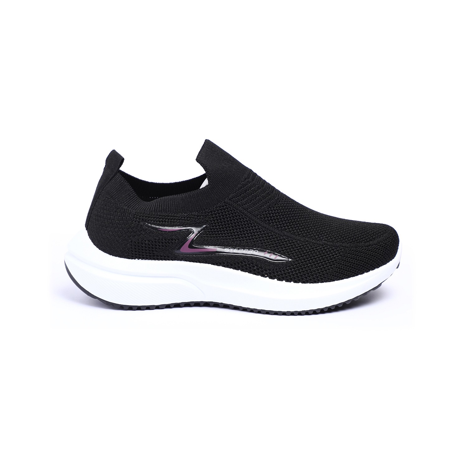 Achieve your fitness goals in style with our Black Performance Slip-Ons. These women's slip-on sneakers feature a breathable knit upper in a versatile Black, offering flexibility and comfort for active pursuits. The chunky, sculpted white sole is designed for superior performance, accented with a durable Black outsole for optimal grip.These slip-ons blend athletic functionality with a modern aesthetic, perfect for workouts, walks, or dynamic daily wear