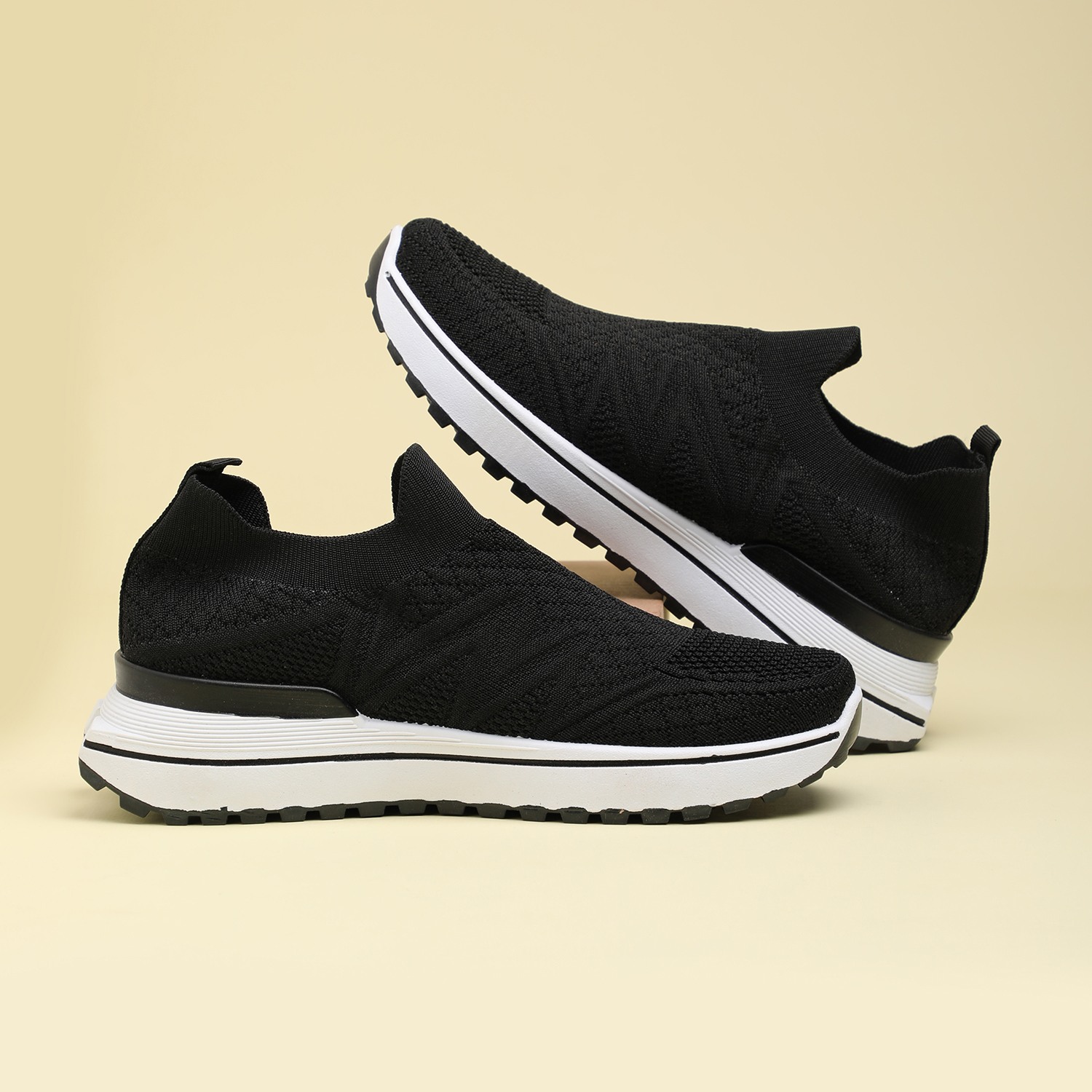 A perfect blend of contemporary aesthetics and everyday practicality, these Chic Black Walk-Ease Slip-Ons are a smart addition to your footwear collection. The easy slip-on entry and supportive sole offer lasting allure and undeniable comfort, making them perfect for extended periods on your feet.