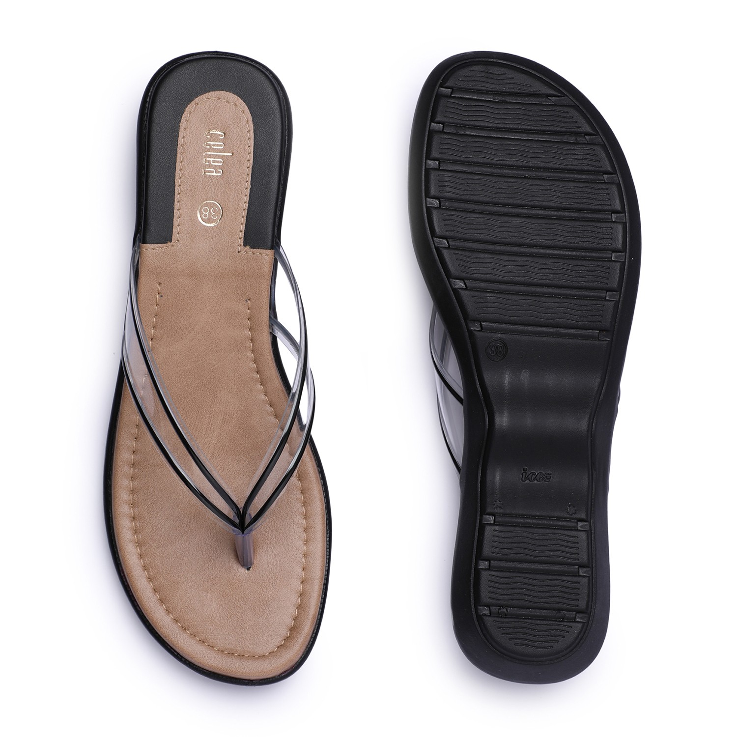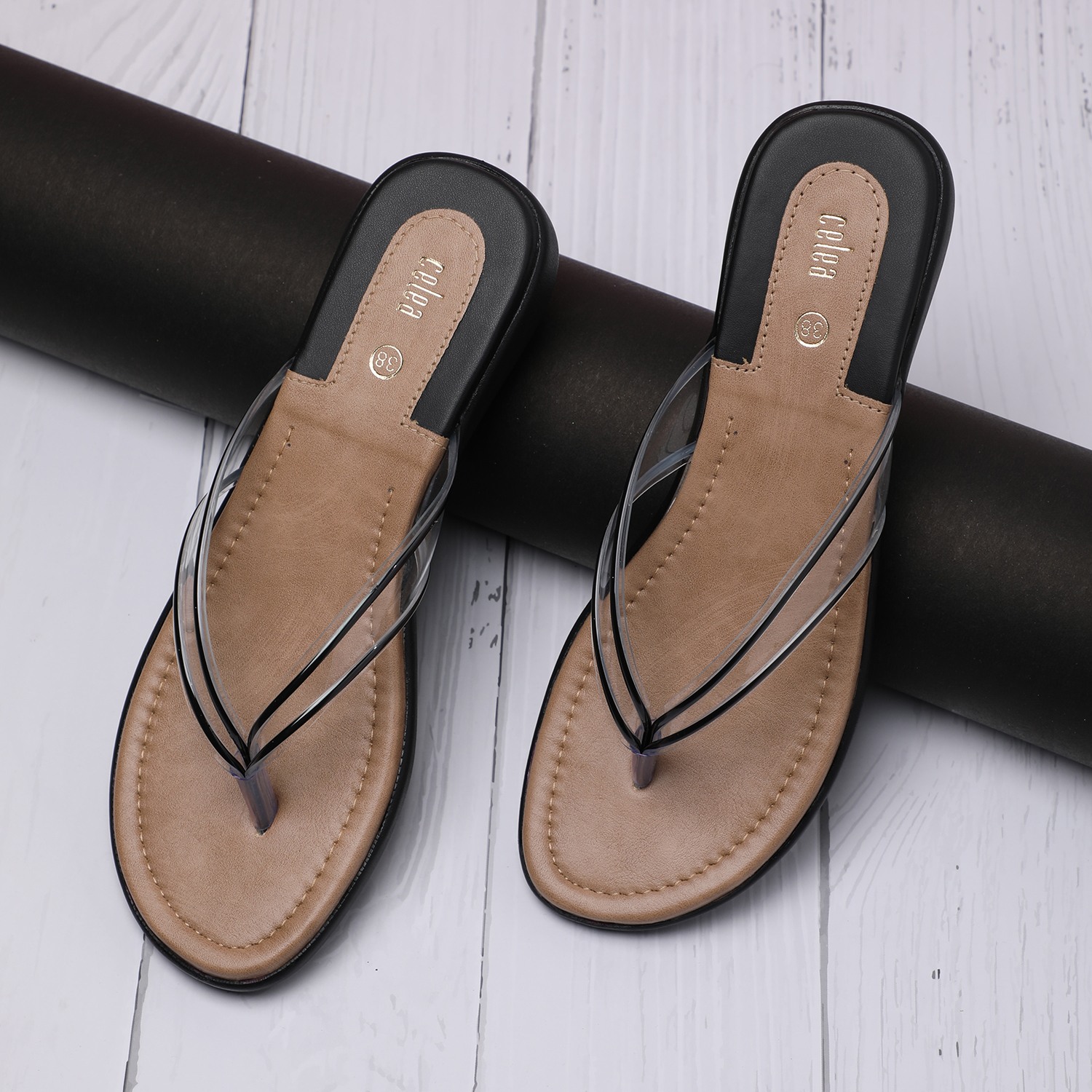 Home / Products / Celea / Women Black Transparent-Strap Thong Sandals