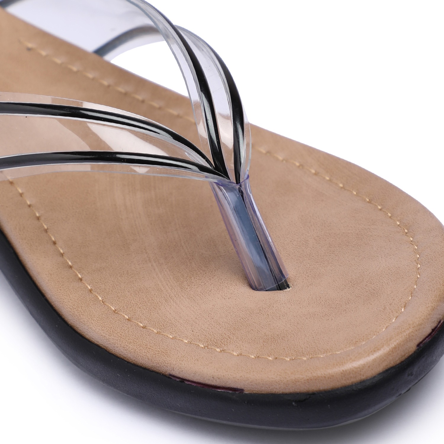 Women Black Transparent-Strap Thong Sandals