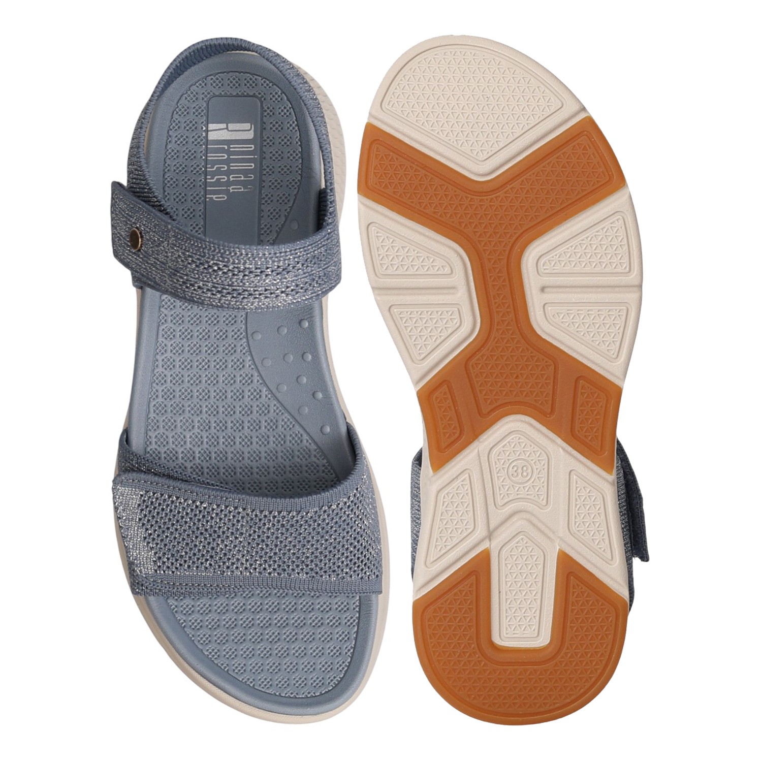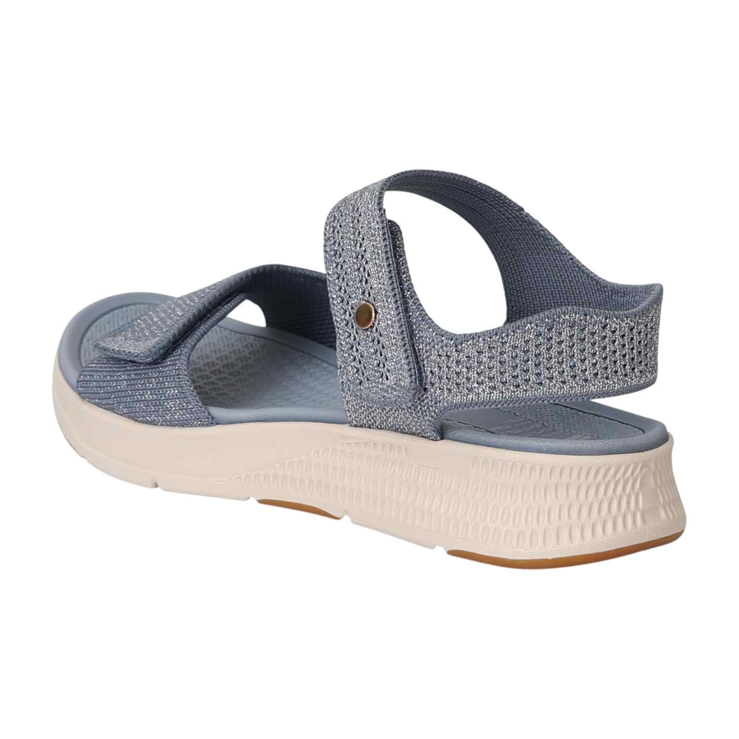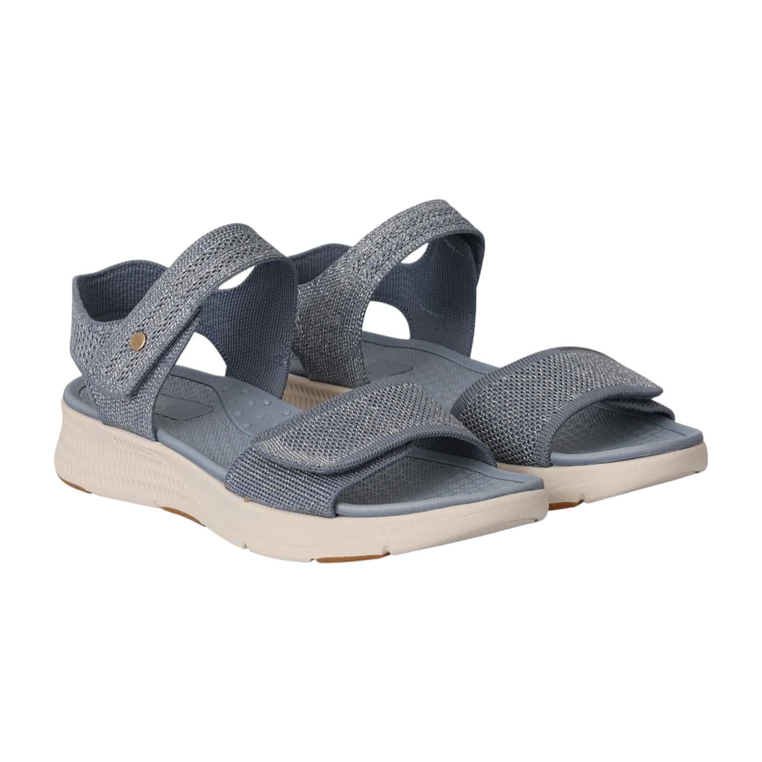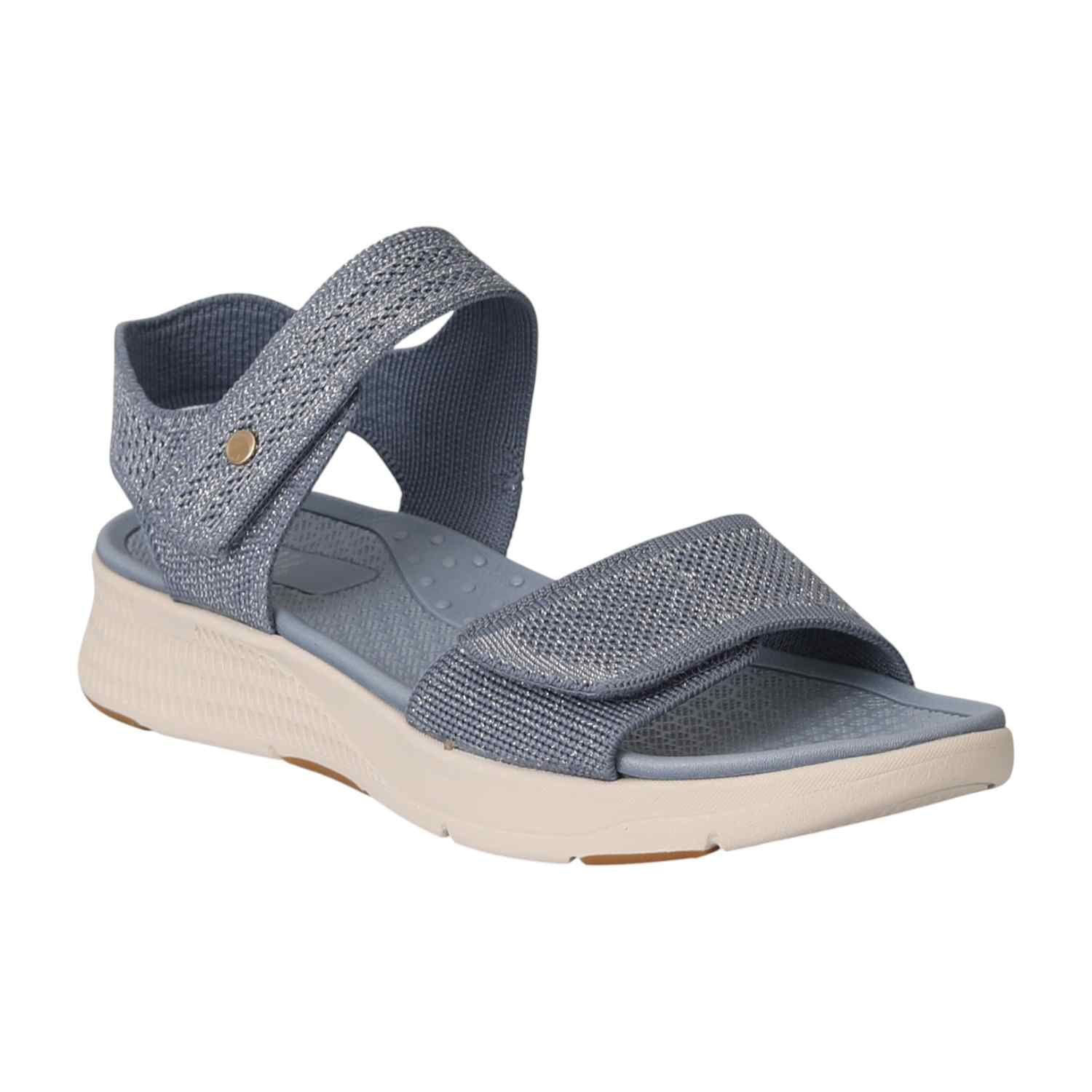 Stay stylish and comfortable on the go with these casual athleisure sandals. The soft, textured straps in a light blue hue offer a refreshing, sporty look, while the cushioned footbed and wedge heel provide all-day support.