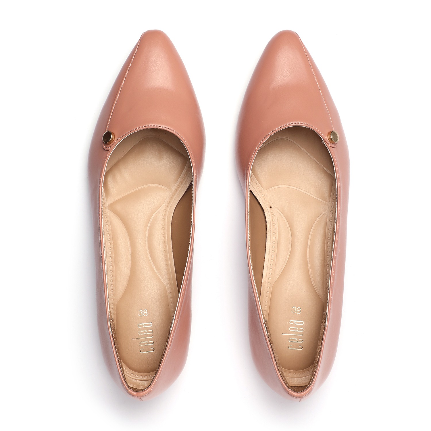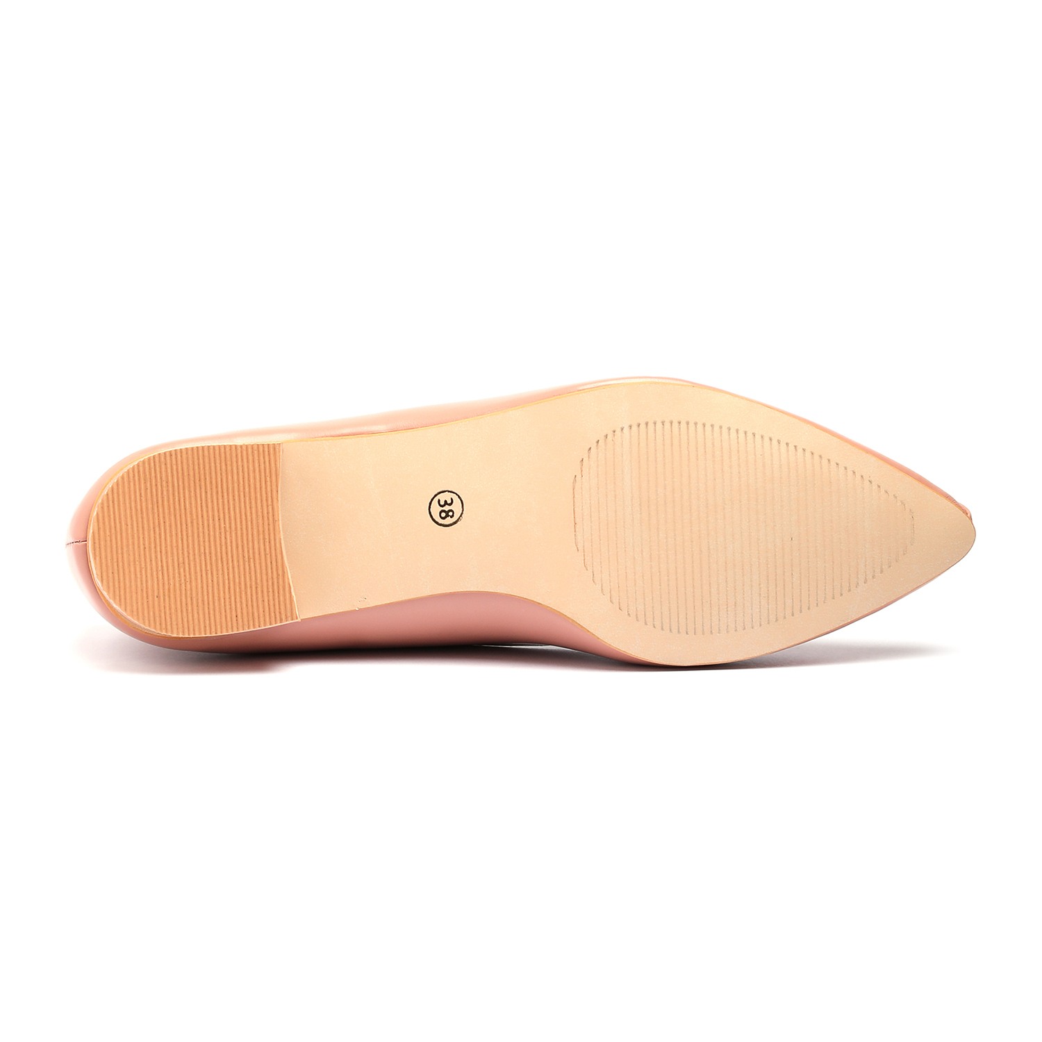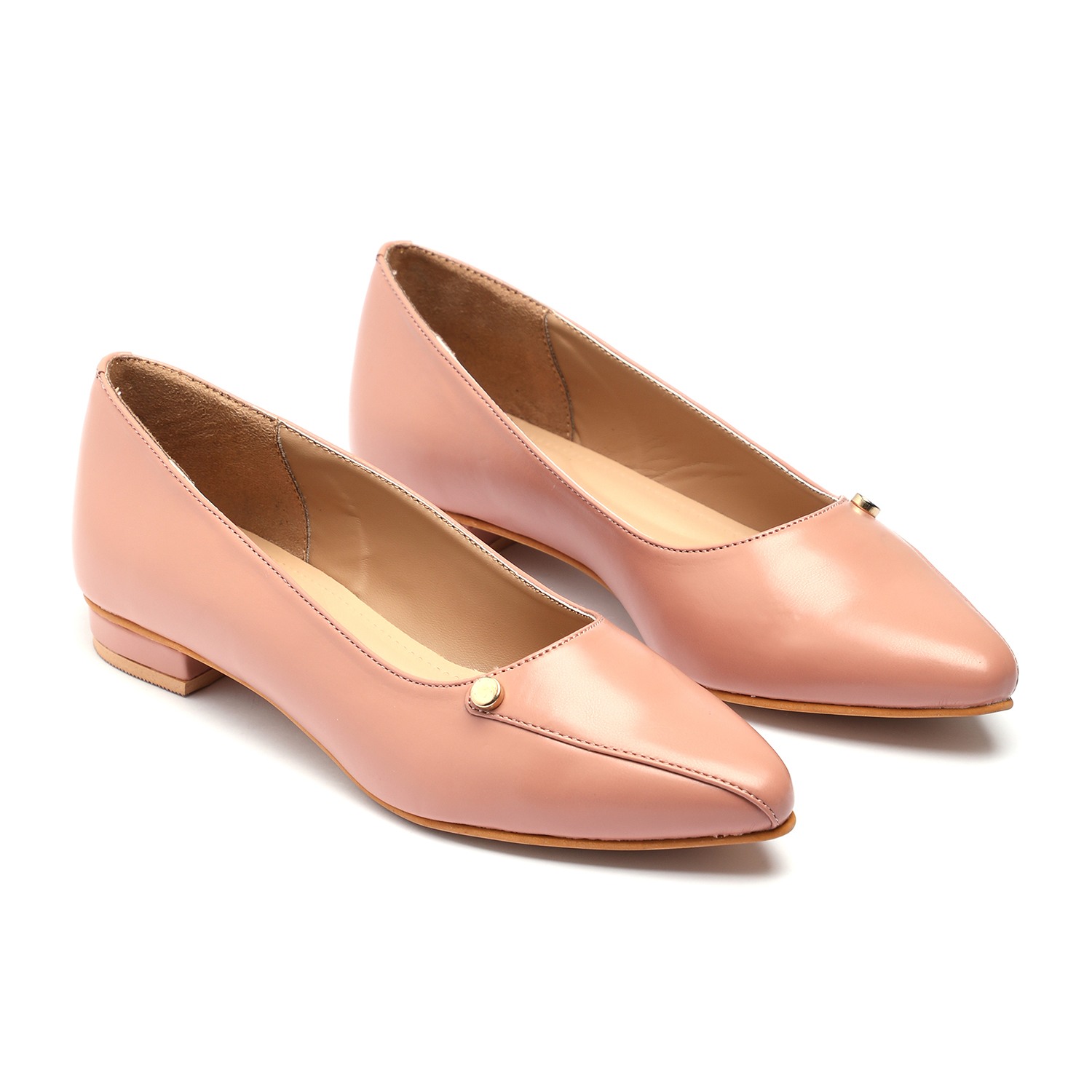 A quintessential addition to any wardrobe, these wood rose ballerina shoes combine graceful design with practical comfort. Featuring a sleek pointed toe and a stable low heel, they're perfect for adding a touch of feminine sophistication to any look.