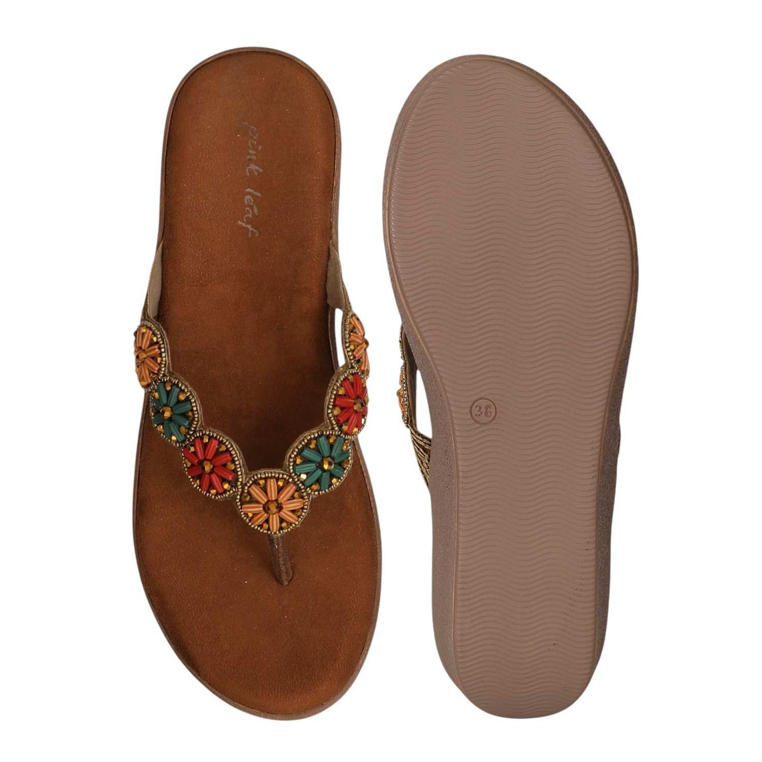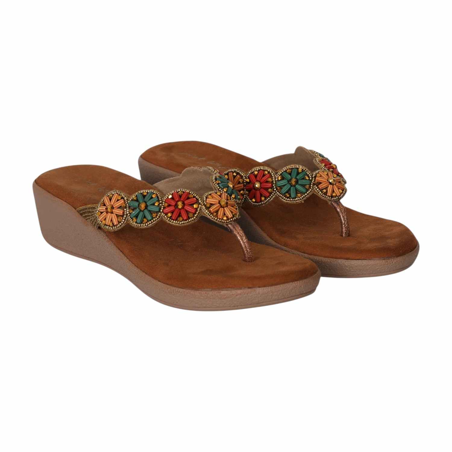 Add a touch of boho charm to your everyday look with these Brown Floral Beaded Wedges. Designed with a soft, cushioned footbed and a comfortable mid-height wedge heel, these sandals combine comfort with eye-catching style. The standout feature is the beautifully handcrafted floral beadwork in earthy tones of red, green, and orange — perfect for adding a playful, ethnic touch to any casual outfit. Whether you're heading out for brunch, a vacation, or a summer stroll, these wedges will keep you stylish and supported all day long.