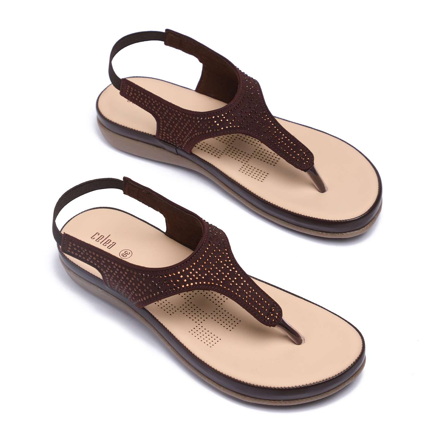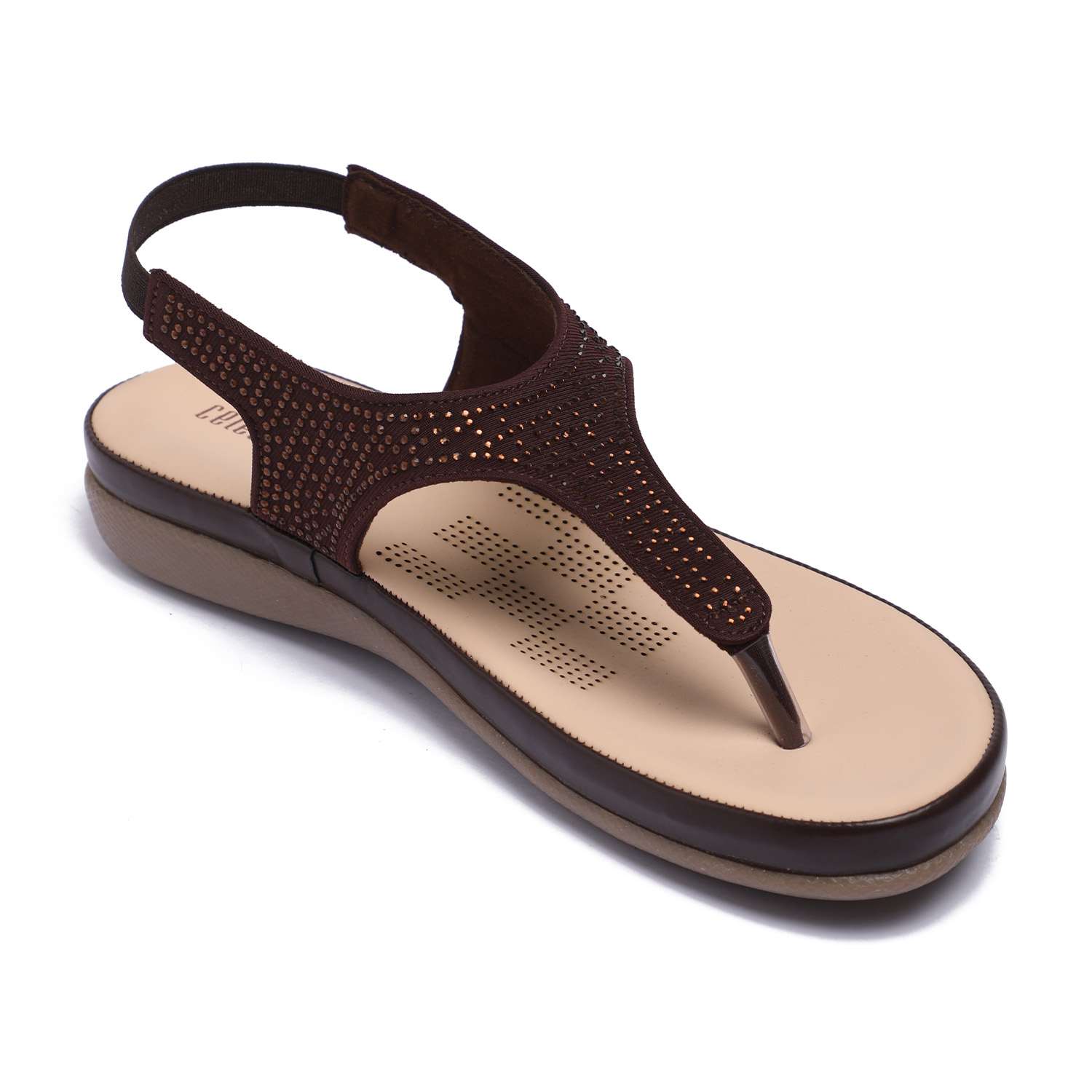 A versatile and practical addition to your footwear collection, these brown perforated T-strap sandals blend laid-back style with lasting comfort. The subtle detailing on the strap and footbed adds unique interest, making them perfect for both casual strolls and more active summer days.