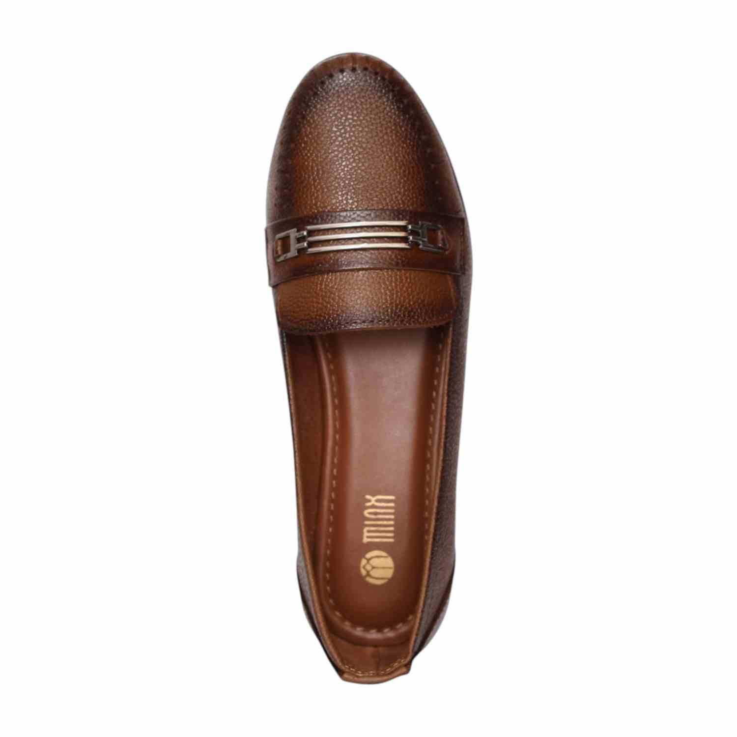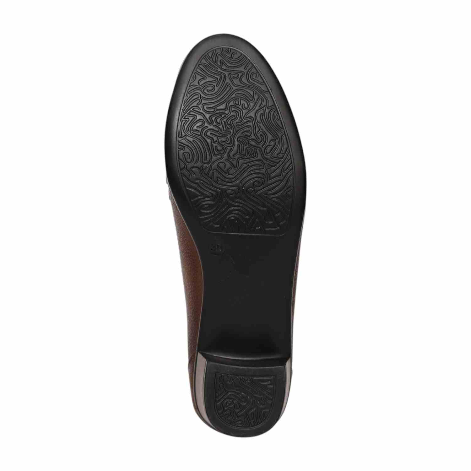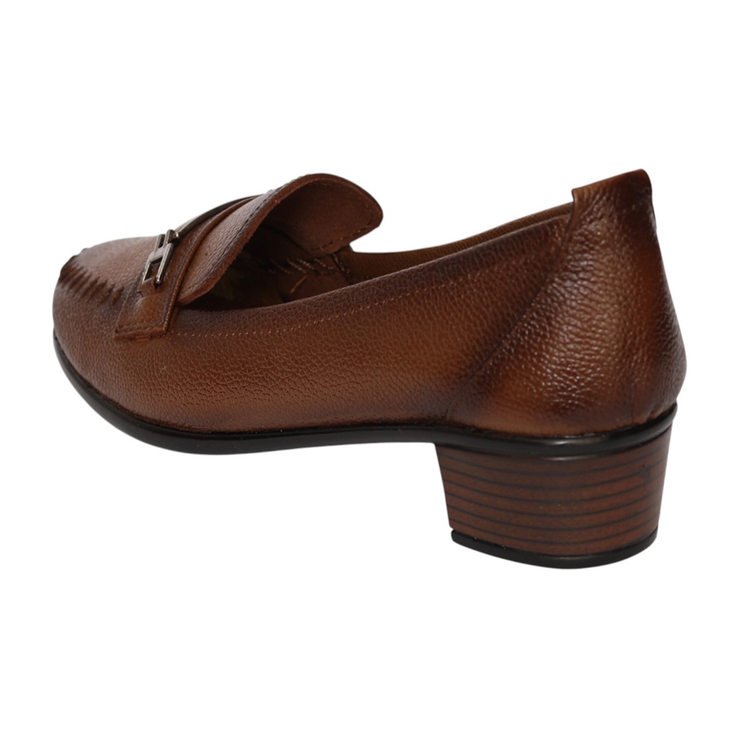 Step into effortless sophistication with these Brown loafer heels, designed to offer a perfect blend of style and comfort. Crafted with a textured finish, these loafers feature a classic slip-on design enhanced with a sleek metallic accent on the upper for a polished look. The round toe silhouette and detailed stitching add a touch of refinement, while the sturdy block heel provides comfortable elevation and stability. Ideal for workwear, formal occasions, or smart casual styling, these versatile loafers are a must-have addition to your wardrobe.