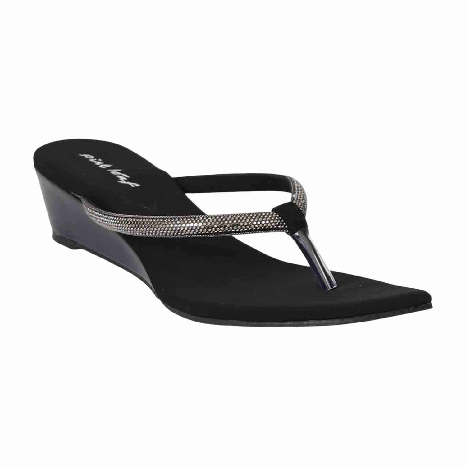 A modern take on a classic, these sandals are both chic and comfortable. The sleek black design and shimmering strap add a touch of sophistication, while the platform wedge provides a stylish lift for all-day wear.