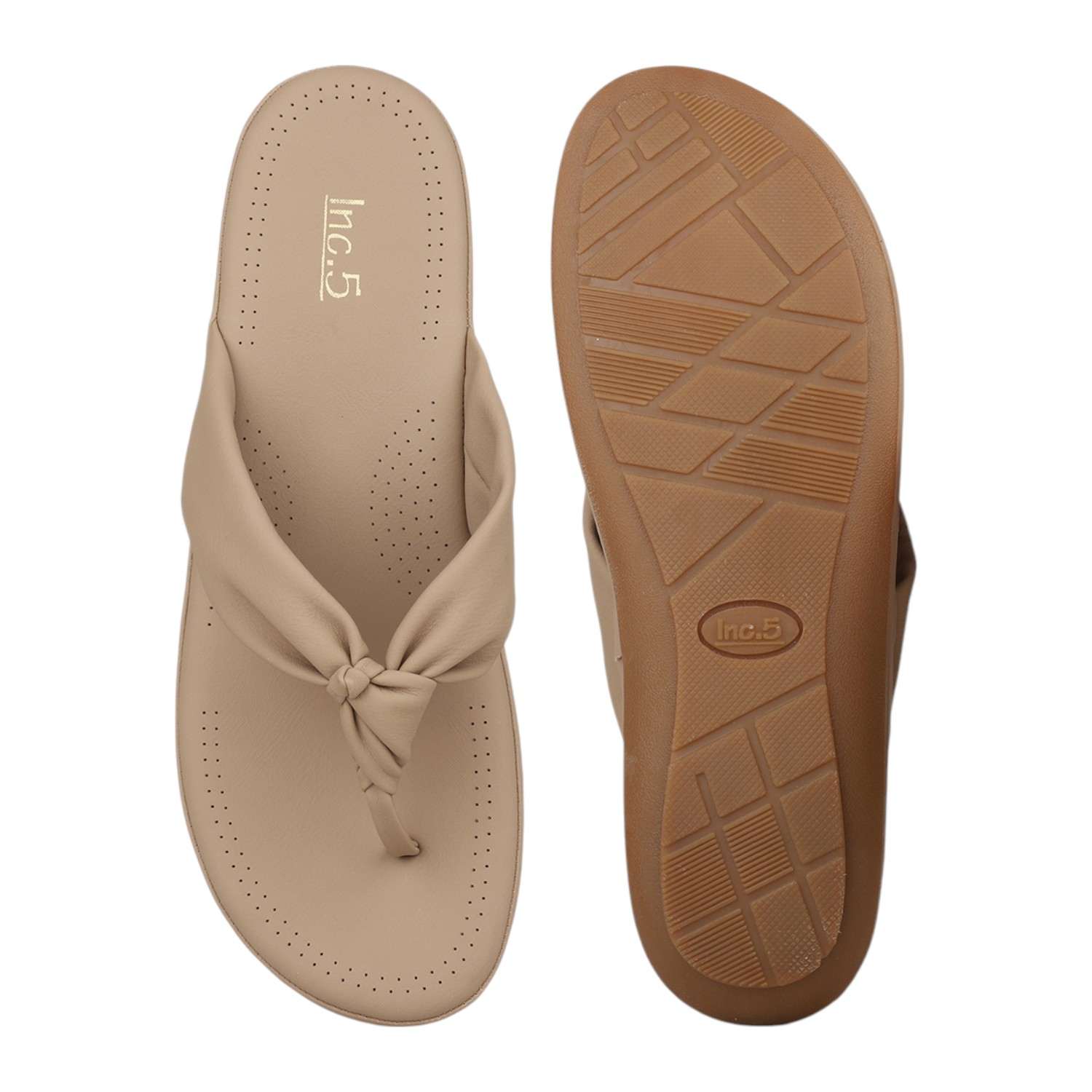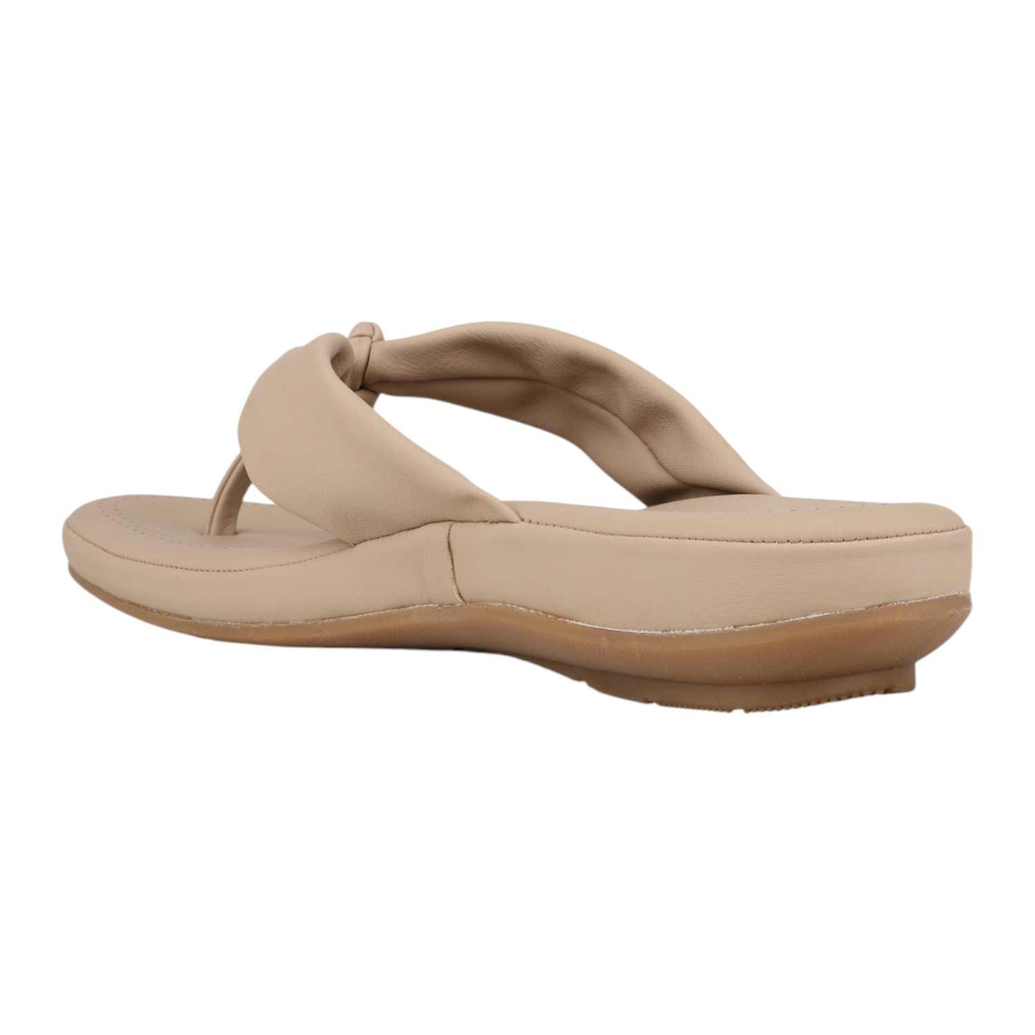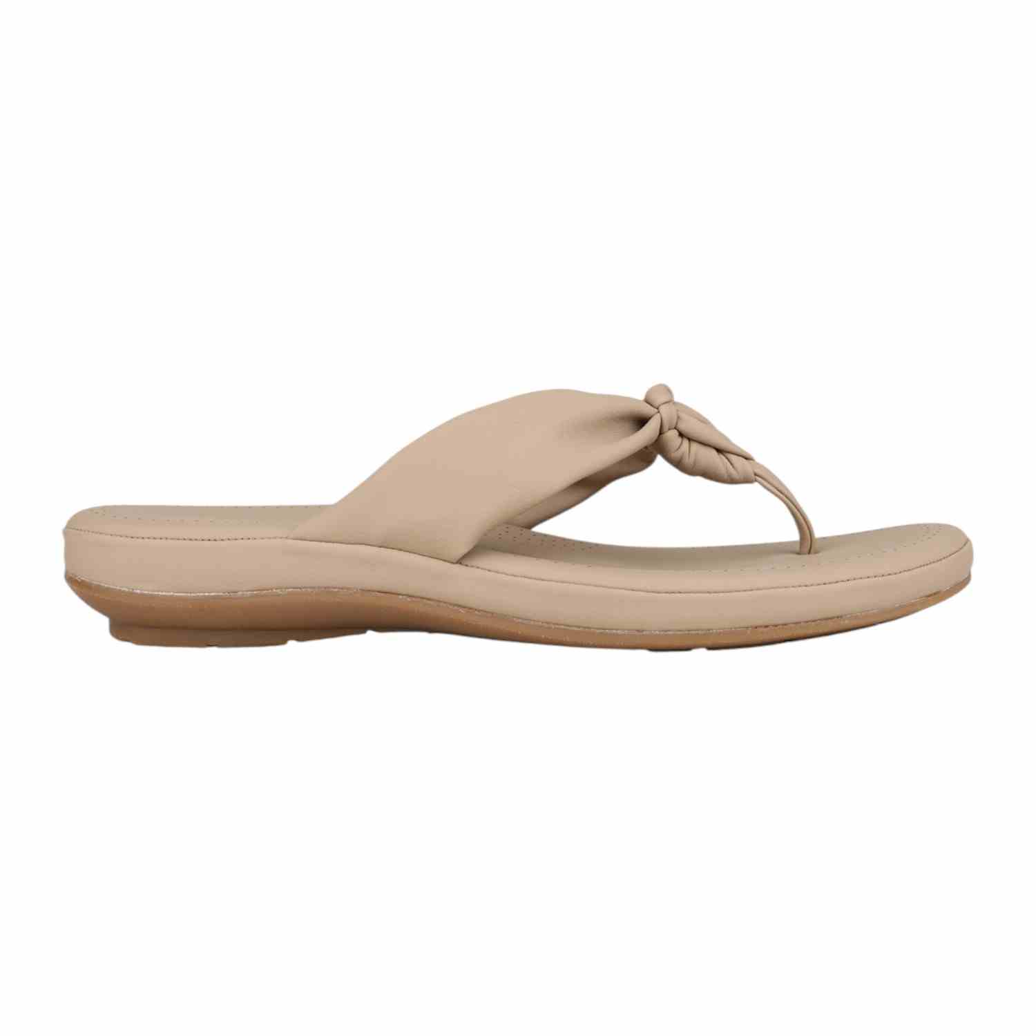 Step into effortless comfort with these chikoo beige wedge thong sandals, perfect for casual everyday wear. They feature a wide, soft strap with a stylish knotted detail at the toe post, and a subtle wedge heel for a gentle lift and comfortable support.