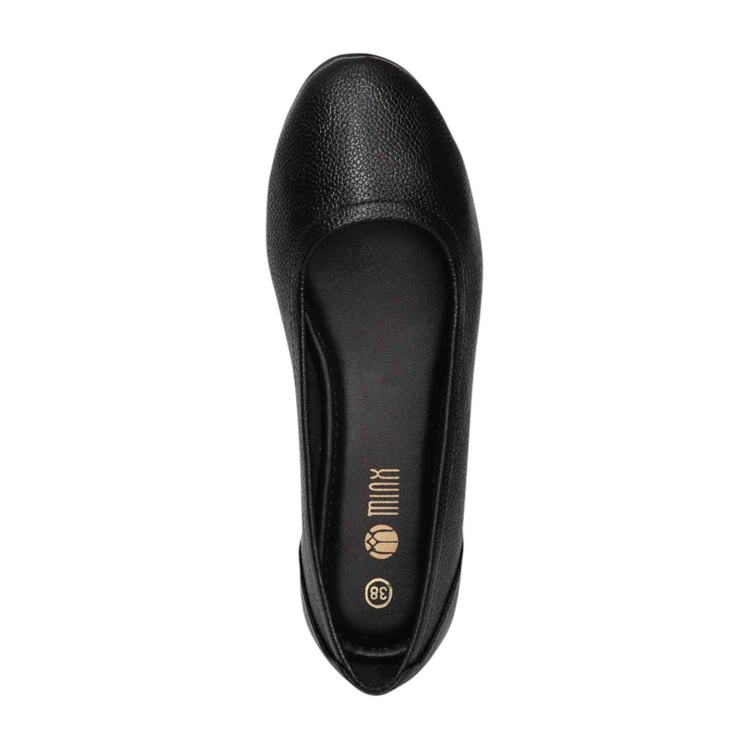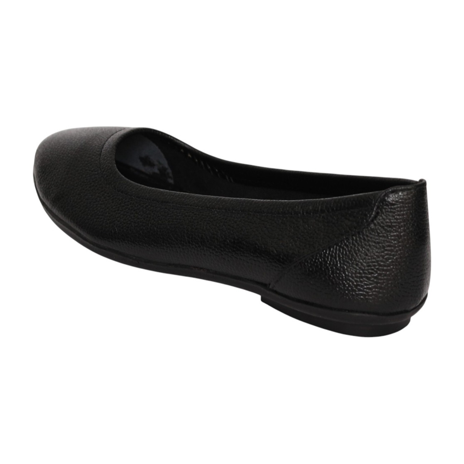Elevate your everyday style with this elegant black ballet flat. Crafted with a soft, textured finish, it features a clean, minimalist design and a gently rounded toe for a timeless look. The flat sole ensures lightweight comfort and ease of movement, making it perfect for all-day wear. Easy to slip on and versatile enough to pair with both casual and semi-formal outfits, this shoe is an ideal choice for work, errands, or relaxed outings.