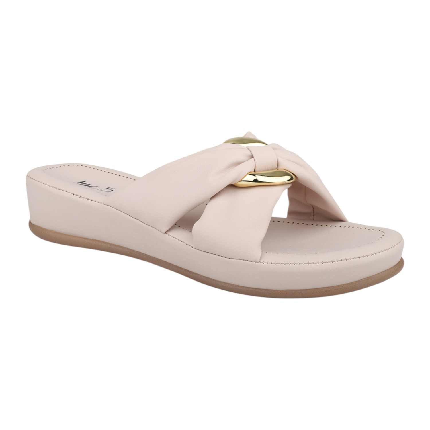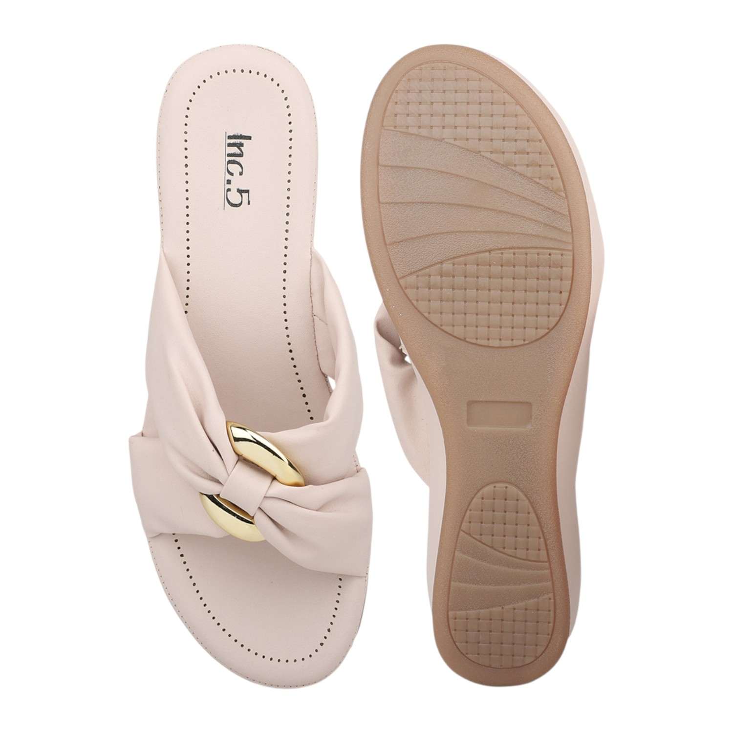 Home / Products / Inc.5 / Women Cream Knotted Strap Wedge Slides with Gold Accent