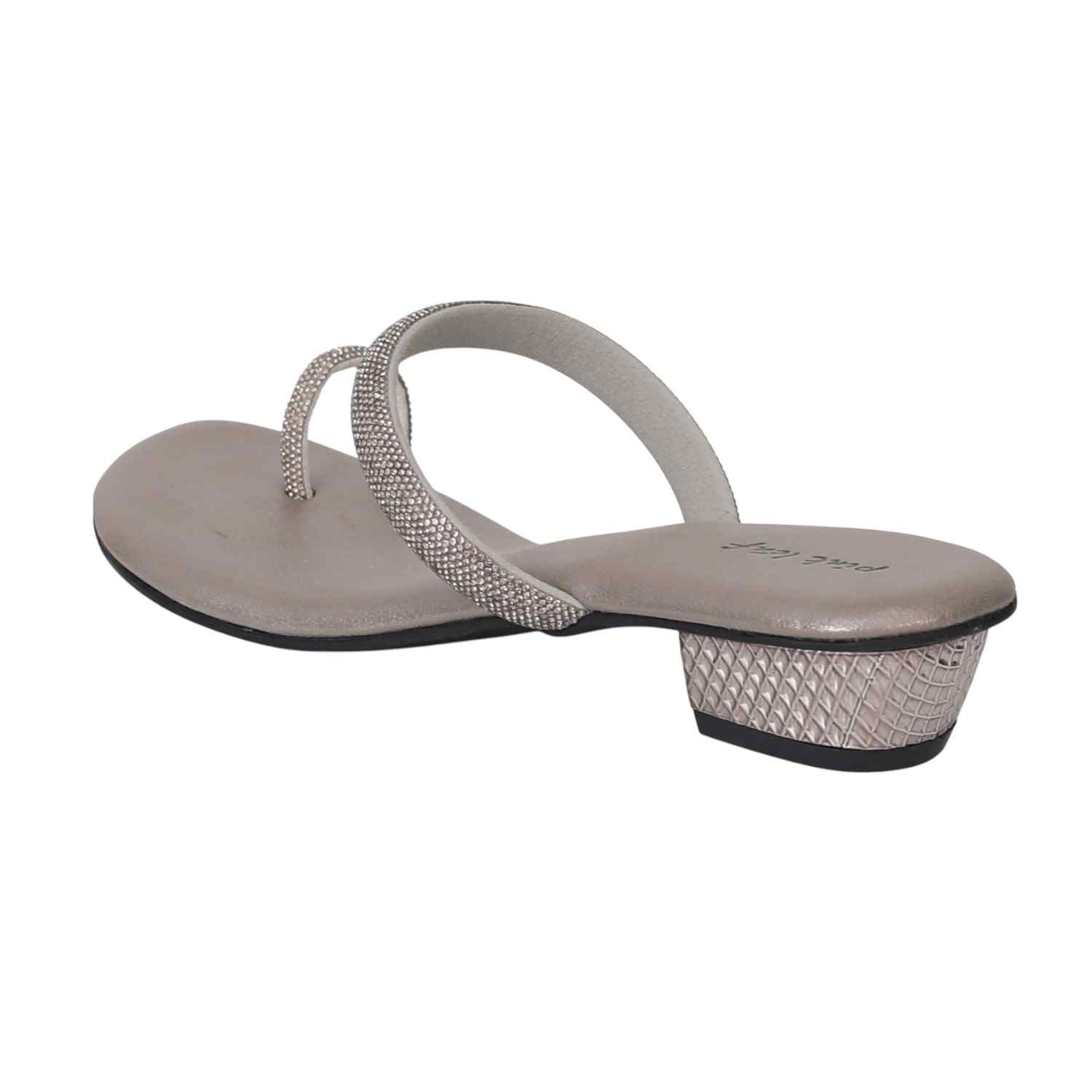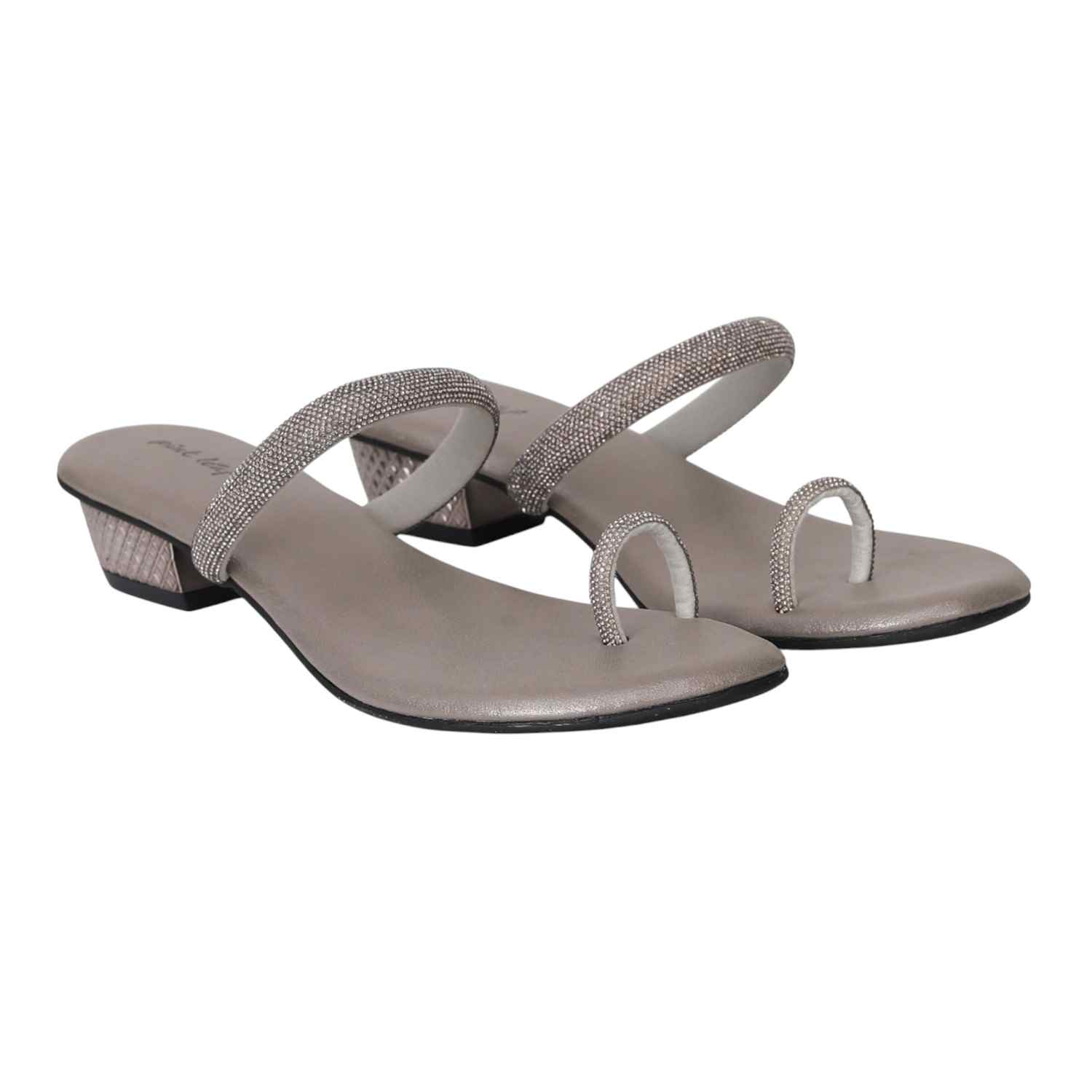 These elegant block heel sandals feature a sleek design with two straps adorned with sparkling silver embellishments. The sophisticated toe-ring and low, textured block heel offer a perfect blend of style and stability, making them suitable for any evening event or special occasion. With a comfortable footbed and a non-slip sole, these sandals are as practical as they are glamorous.