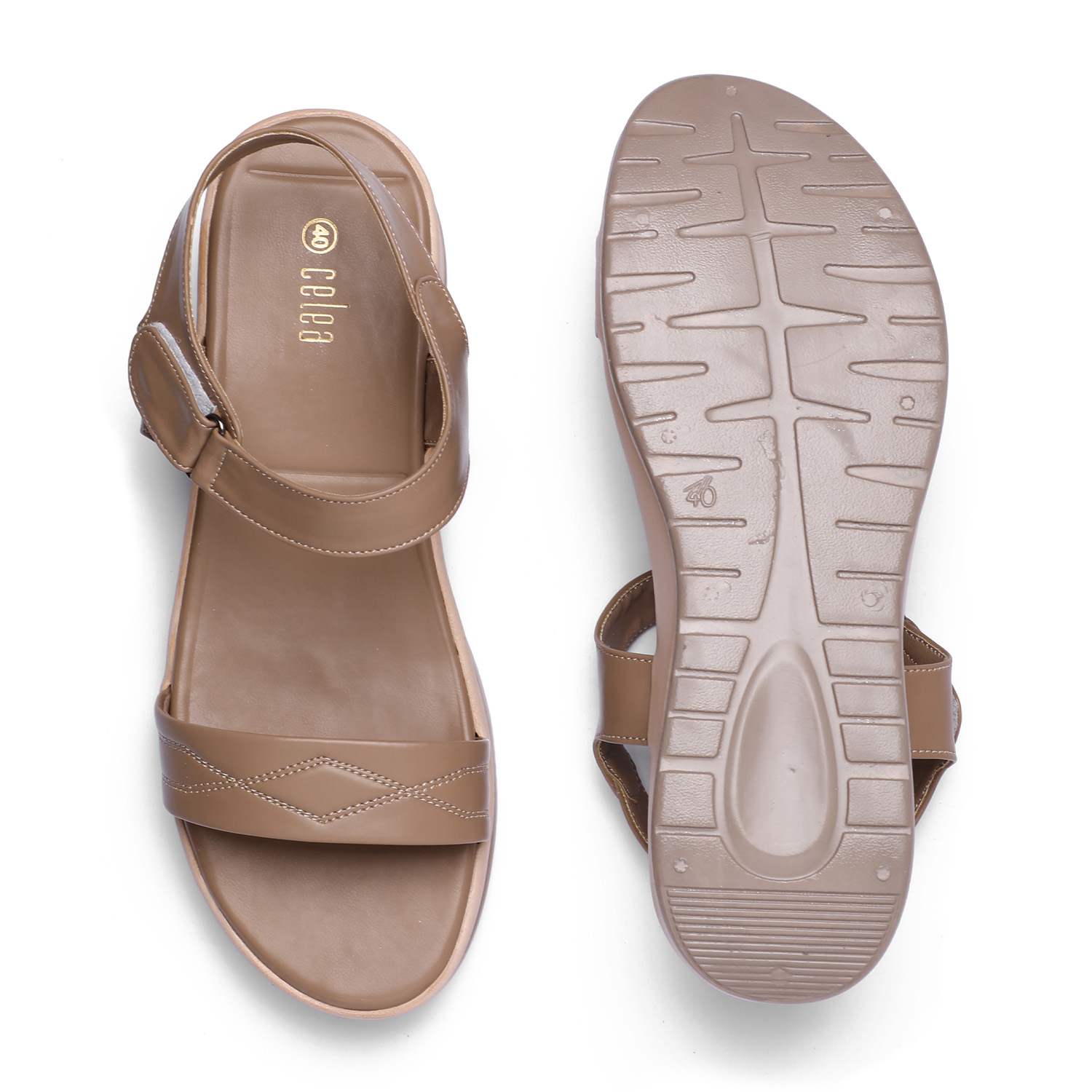 Step into effortless style and comfort with these chic ankle-strap wedge sandals in a classy chikoo brown shade. Designed for all-day wear, the cushioned insole and sturdy wedge heel provide both support and elegance. The sleek straps with fine stitching details add a touch of glamour.
