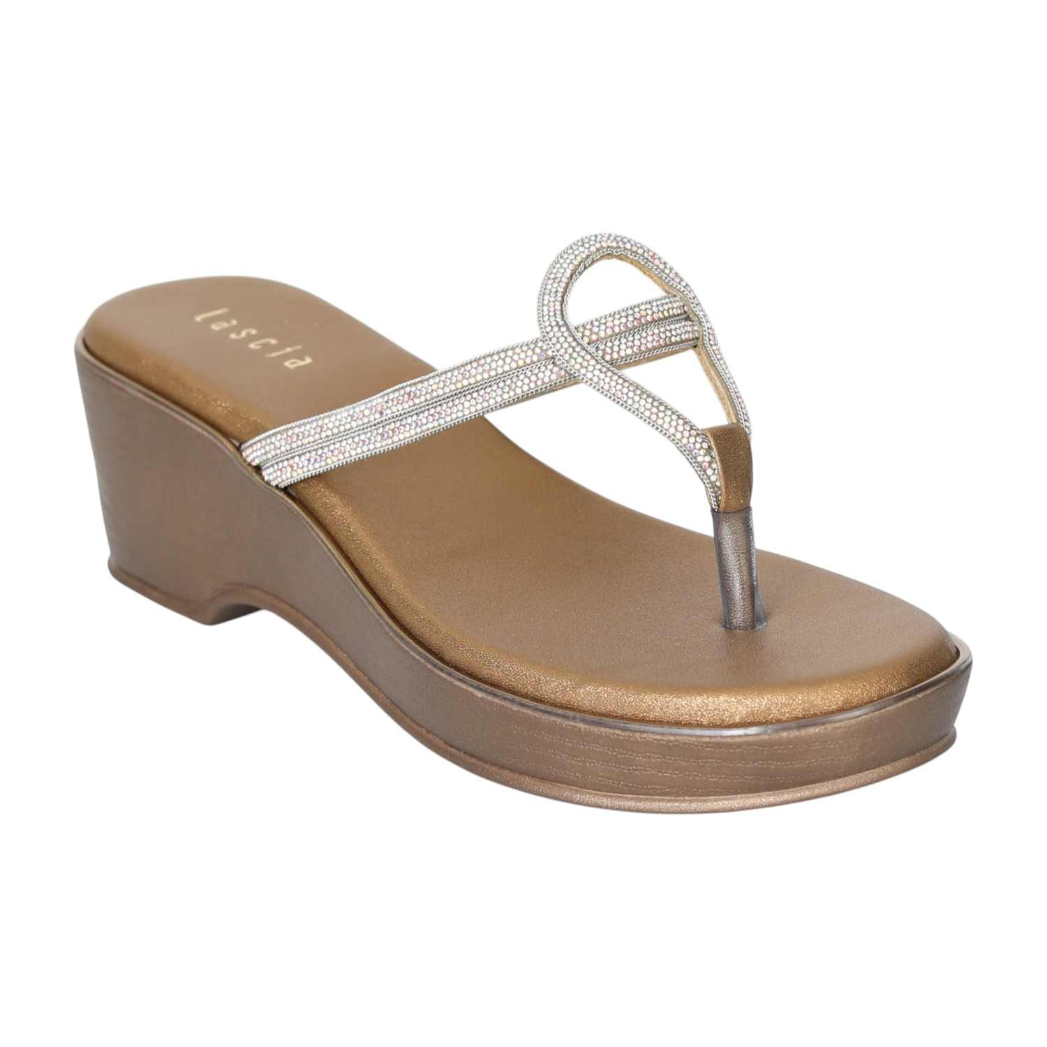 Gracefully designed with a shimmering twist strap and a soft antique gold base, the Elegant Curve Antique Sandals blend sophistication with comfort. These elevated wedge sandals are perfect for special occasions, evening wear, or when you simply want to add a touch of glam to your day. Featuring a gentle curve for foot support and a cushioned insole, they’re as comfortable as they are stylish.