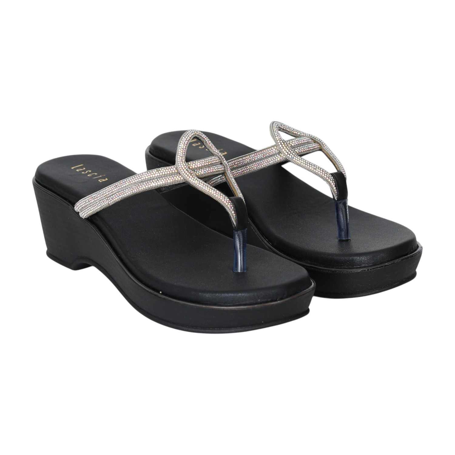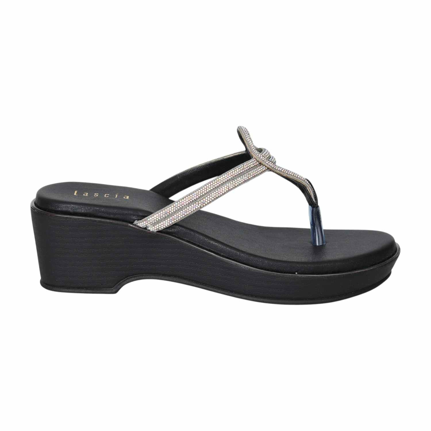 Gracefully designed with a shimmering twist strap and a soft gold base, the Elegant Curve Black Sandals blend sophistication with comfort. These elevated wedge sandals are perfect for special occasions, evening wear, or when you simply want to add a touch of glam to your day. Featuring a gentle curve for foot support and a cushioned insole, they’re as comfortable as they are stylish.