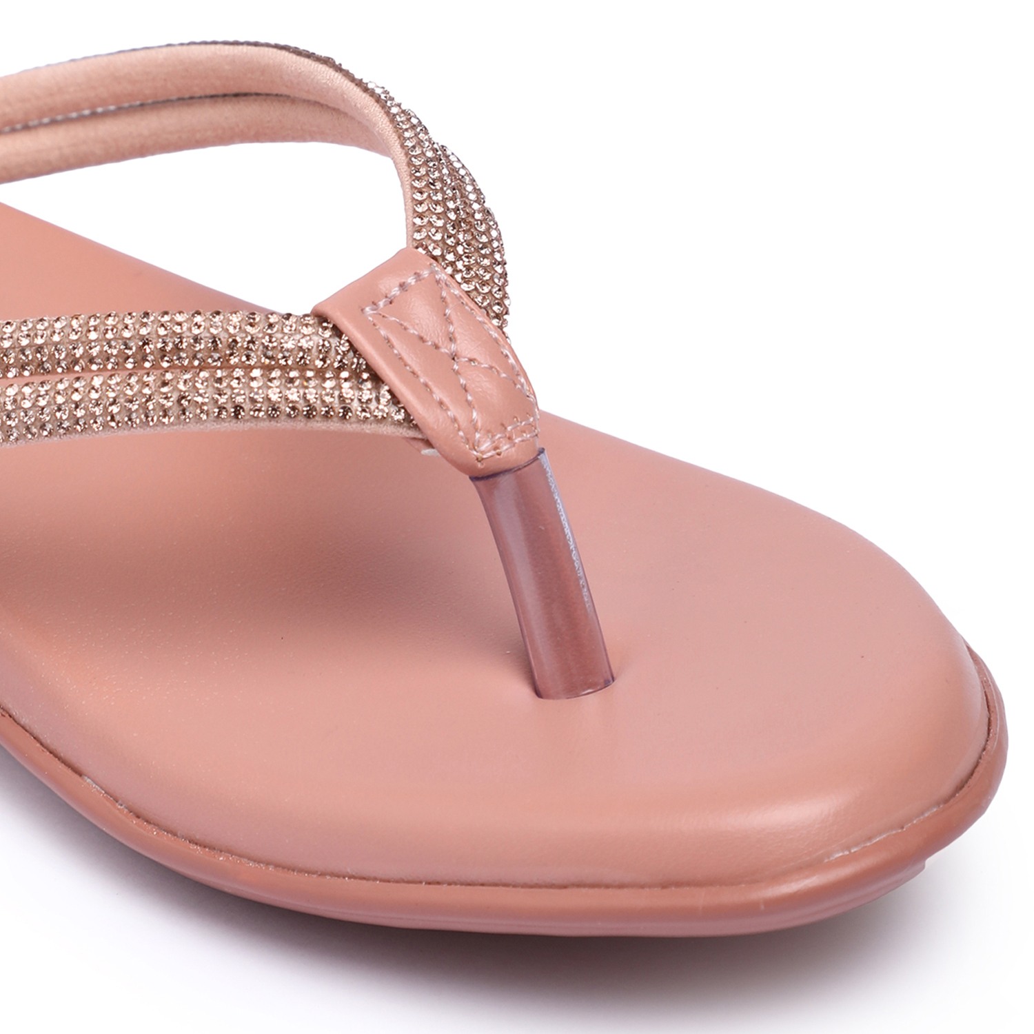 Women Elegant Metallic RoseGold Flip-Flops with Embellished Straps