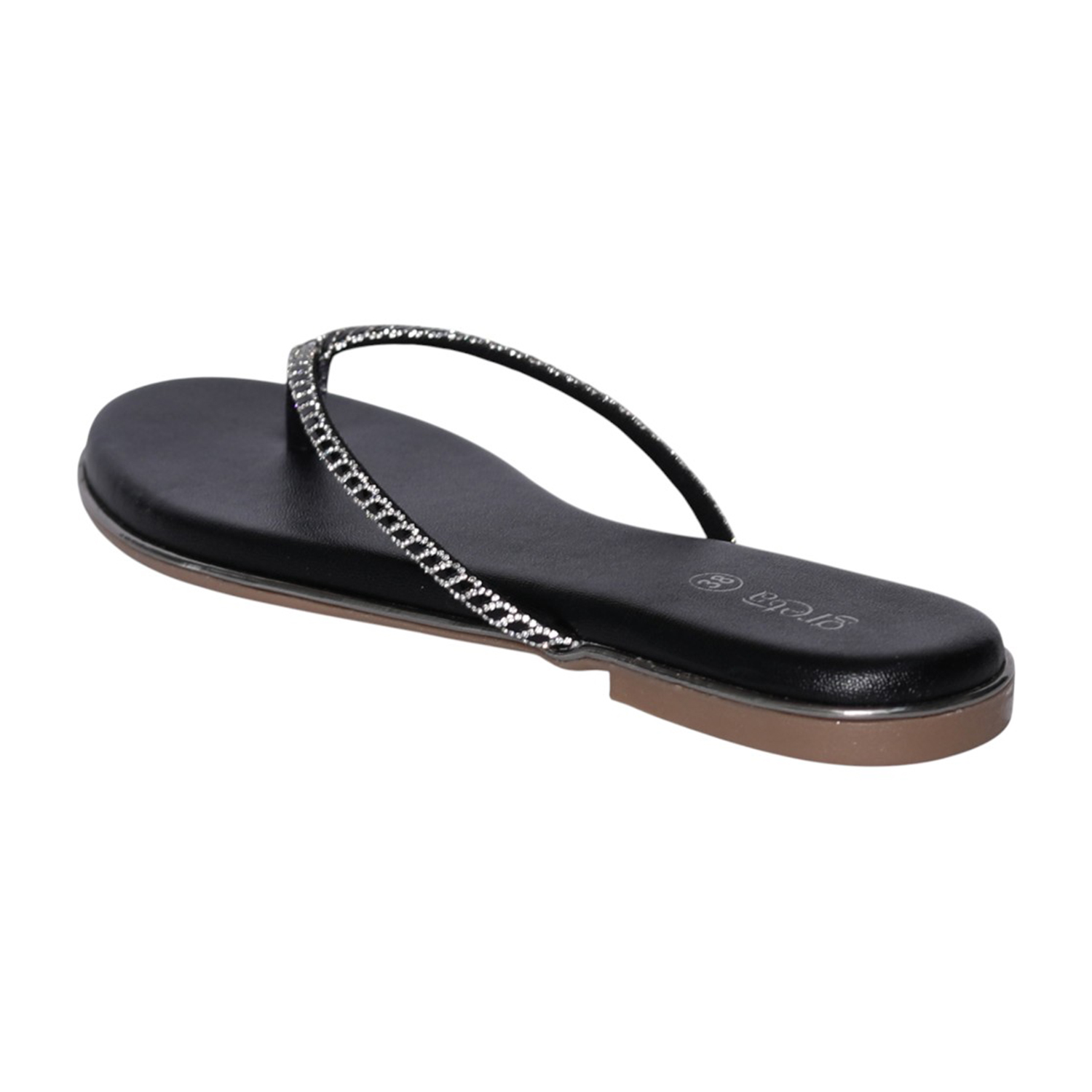 Add a touch of sparkle to your everyday style with these women’s embellished flip-flop sandals. Designed with a sleek flat sole and shimmering strap details, they offer both comfort and elegance. Perfect for casual outings, vacations, or summer wear, these sandals blend simplicity with a chic finish.